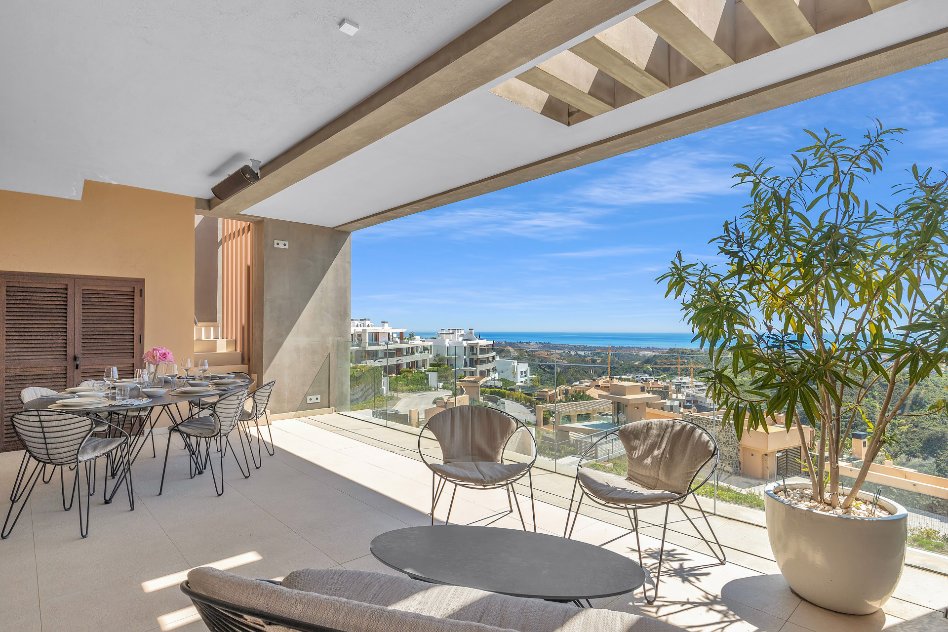 A luxurious, modern penthouse apartment in an exclusive new-build development in the La Quinta area above Marbella. With quick routes to the coasts bustling hot-spots, this high-end apartment provides an exceptional space for relaxation and comfort away from the crowds.