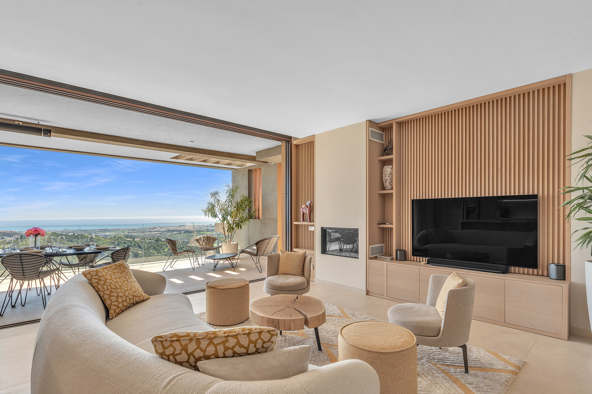 With an open layout that maximises the stunning views and natural light, this property has been decorated with natural yet high-end furnishings.