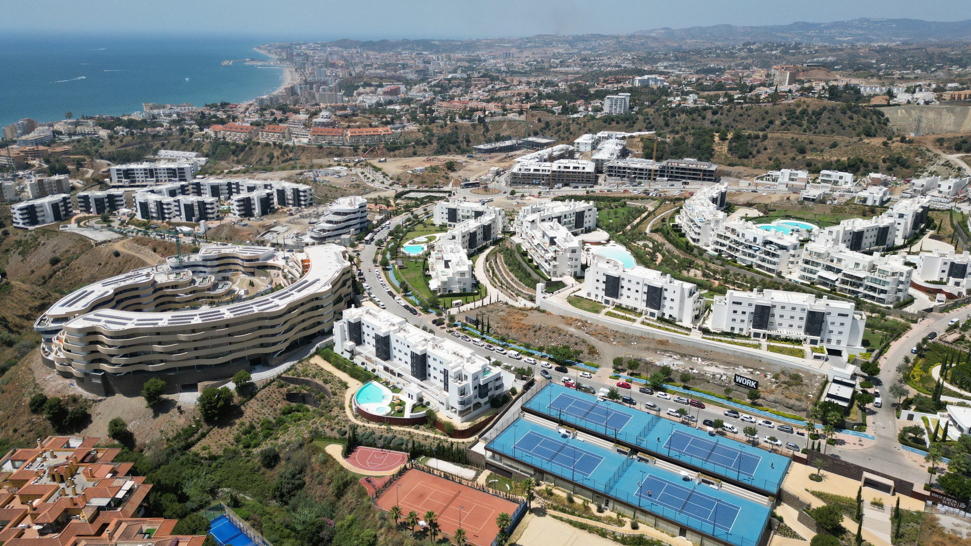 Experience upscale coastal living with this fully furnished, key-ready two bedroom, two bathroom apartment in the exclusive Higuerón West – Phase II. Uniquely positioned on the middle floor with two expansive terraces—exclusive to this block—it offers breathtaking panoramic views of the sea and mountains, capturing both sunrise and sunset. This rare residence features the largest living room and kitchen layout in the development, complete with premium appliances and underfloor heating in the en suite bathroom. Additional highlights include two underground parking spaces, an electric vehicle charger, and a spacious storage room. Perfectly located just steps from the 5-star Hilton Hotel and Higuerón Sport Club, residents enjoy access to a complimentary shuttle to Carvajal Train Station, beaches, dining, shops, and Benalmádena Pueblo, plus onsite Michelin-star dining, a full wellness spa, smart gym, pools, and a wide range of sports facilities. All just minutes from Málaga Airport, city center, and Marbella.