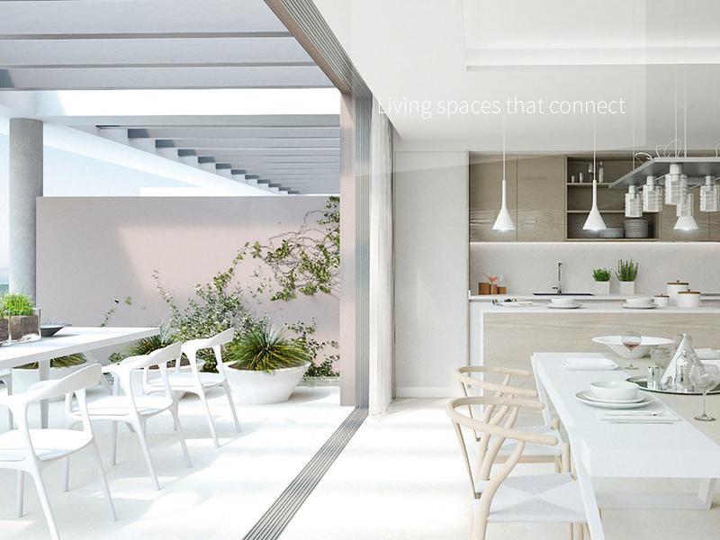The kitchen, dining room and lounge blend into a spacious open-plan area that is very much the heart of the home, but slide the doors to the terrace away and you create a whole new dimension in which the apartment’s living spaces are amplified both in size and scope. Now you can choose to breakfast outdoors and dine inside with the doors wide open, watch a movie on a cosy winter’s day or merge both lounge areas for some lively entertaining.