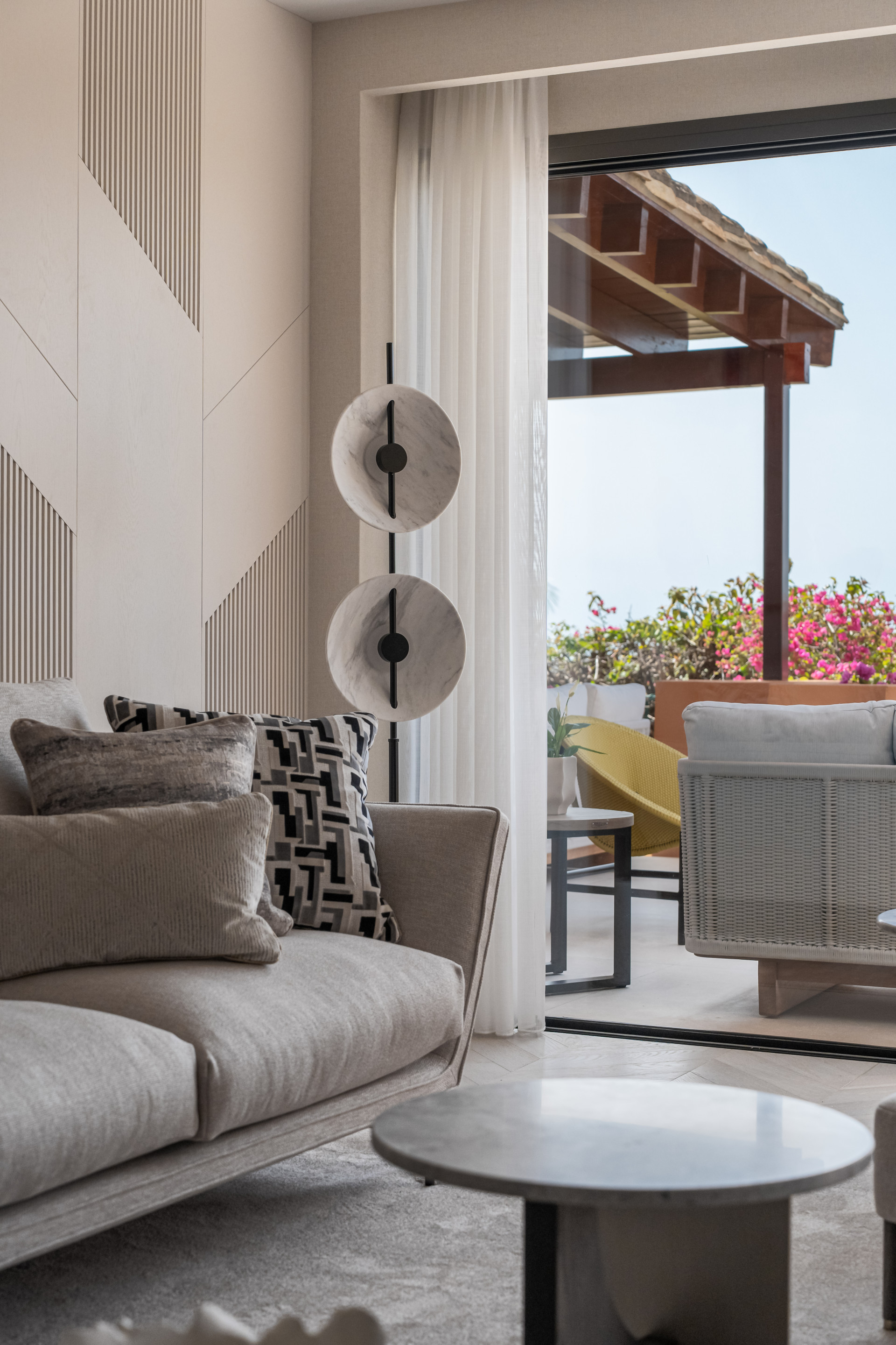 Located in the prestigious gated community of Les Belvederes in La Cerquilla, Nueva Andalucía—Marbella’s exclusive Golf Valley—this beautifully renovated four bedroom, four an a half bathroom elevated ground-floor apartment combines refined elegance with modern luxury and breathtaking panoramic views of the Mediterranean. Designed on a single level, the apartment features a spacious open-plan layout with a bespoke kitchen fitted with top-of-the-line Gaggenau appliances, flowing seamlessly into the living and dining areas. Natural oak flooring, elegant Gessi fixtures, and designer furnishings from the Alexandra Collection enhance the sophisticated aesthetic throughout. Each generously sized bedroom includes its own stylish ensuite bathroom, complemented by a guest WC and a full smart home system for effortless control of lighting, climate, and security. The expansive terrace, bathed in sunlight, offers sweeping sea and mountain vistas—ideal for alfresco dining and year-round entertaining. The Les Belvederes community offers an elevated lifestyle with access to a heated swimming pool, fully equipped gym, sauna, private tennis courts, and meticulously maintained gardens, all within a secure environment featuring 24-hour surveillance. With its prime location just minutes from Marbella’s coastline and amenities, this property presents a rare opportunity to enjoy the perfect blend of luxury, privacy, and convenience.