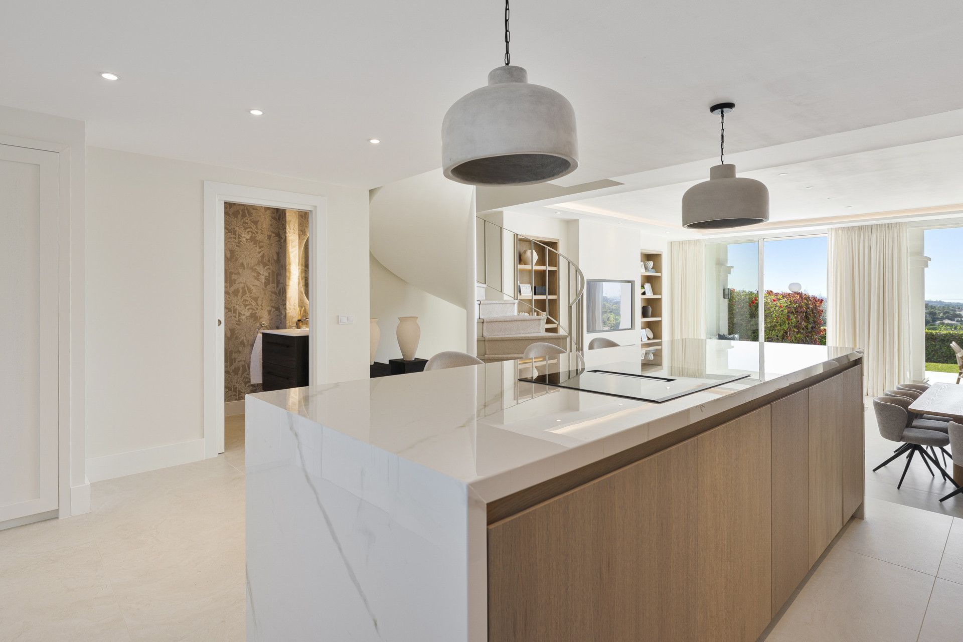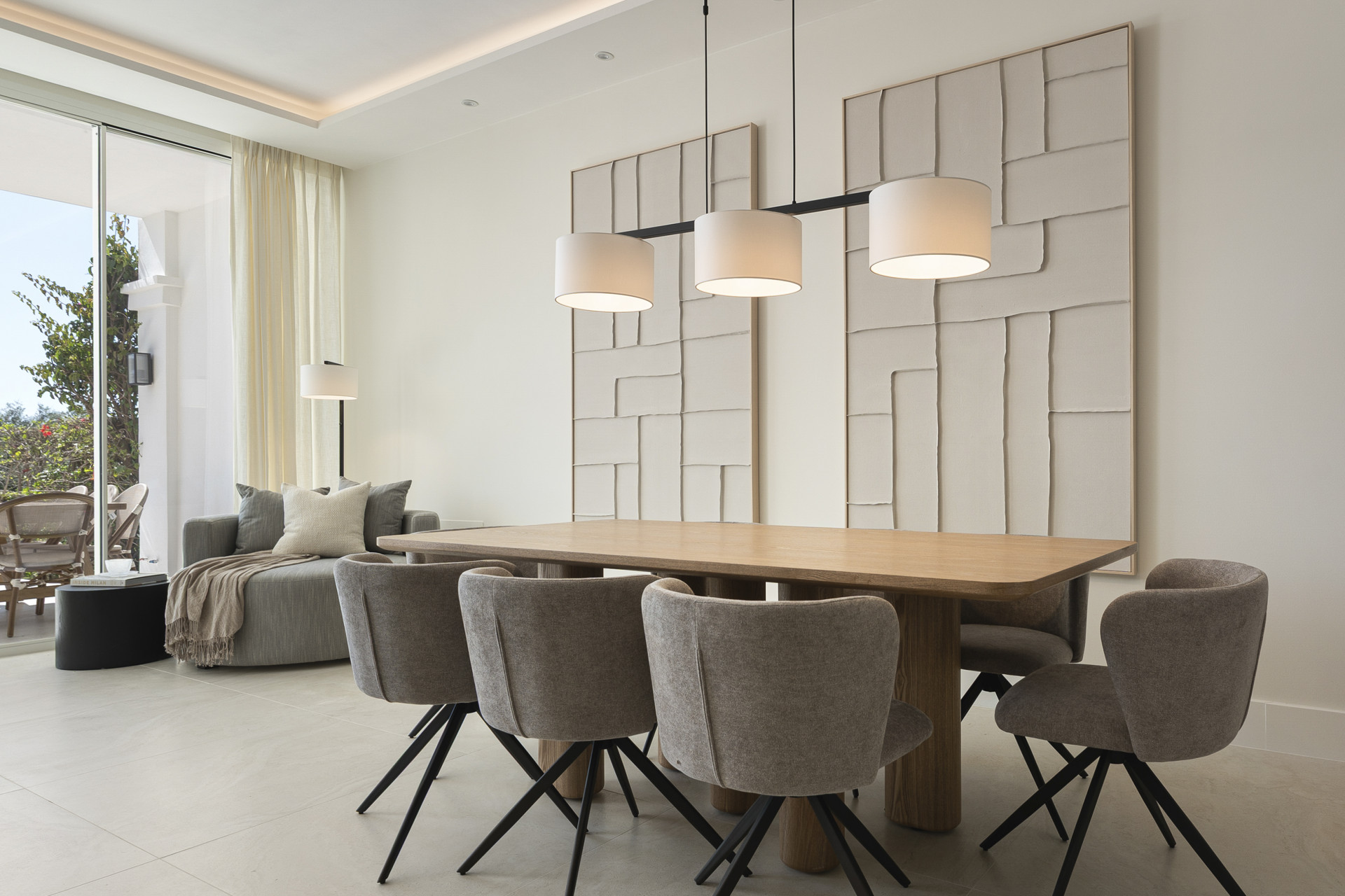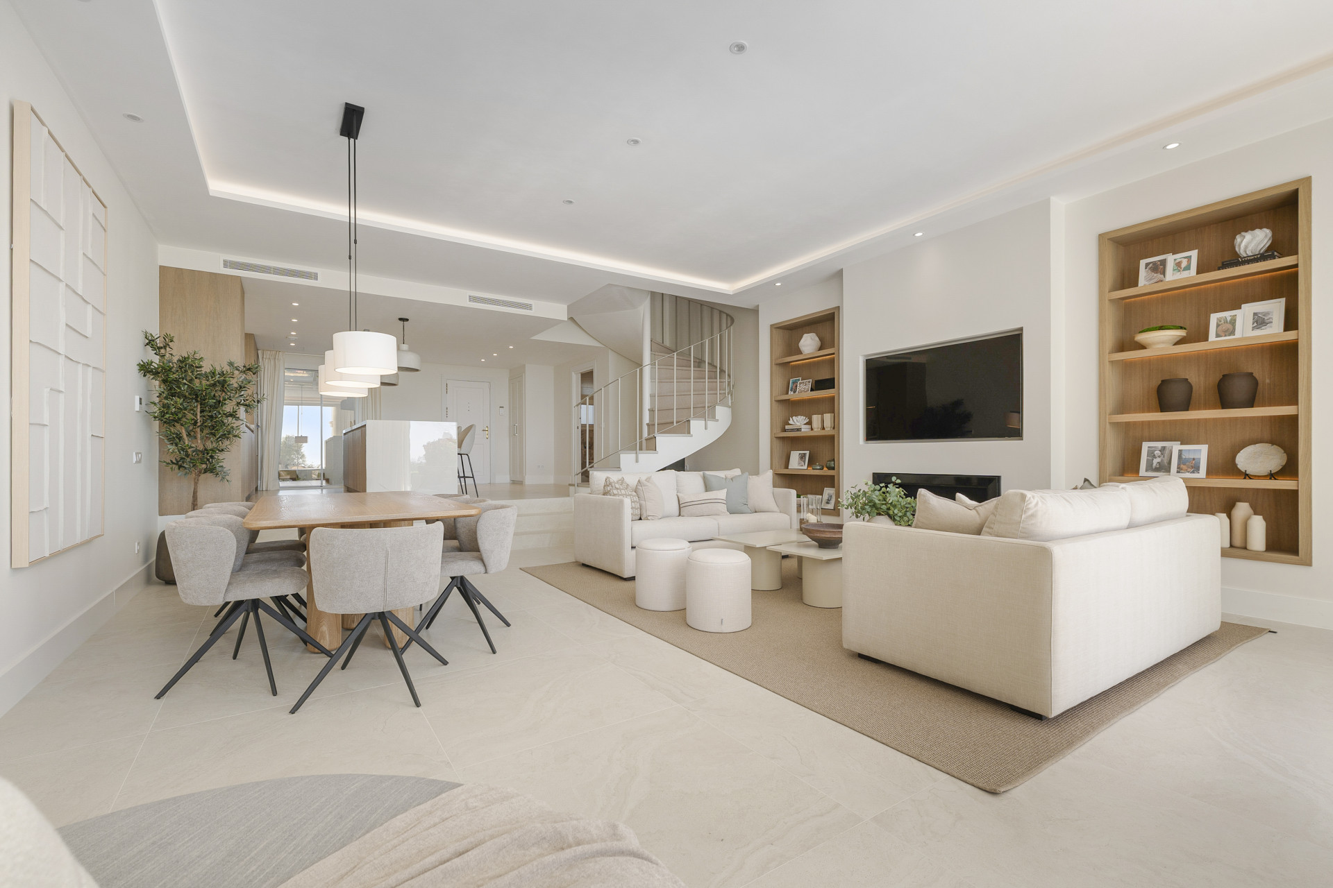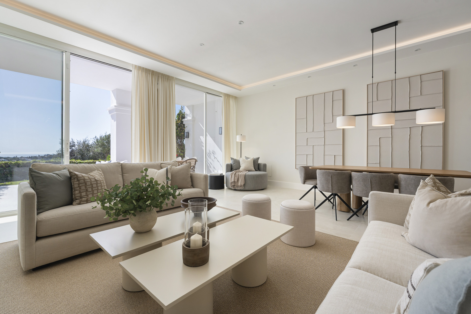 Una casa adosada exquisitamente reformada situada en la popular urbanización de El Mirador de La Quinta en Benahavís, esta impresionante propiedad ofrece una abundancia de luz natural, techos altos y hermosas vistas al mar visibles a través de puertas correderas extra-alto desde el momento en que entras. La cocina abierta a medida fluye sin problemas en una zona de estar y comedor excepcionalmente espacioso, que se abre directamente a una terraza cubierta y los jardines comunitarios, disfrutando de vistas orientadas al sureste hacia el mar y las montañas circundantes. La primera planta consta de tres dormitorios y tres baños, incluyendo una generosa suite principal con vestidor, terraza privada y un gran baño con impresionantes vistas, mientras que la planta superior cuenta con una suite de cuarto dormitorio con acceso a dos terrazas adicionales, también con vistas espectaculares. Completamente destripado y reformado a los más altos estándares, el adosado exhibe materiales de alta calidad en todas partes, con diseños interiores y colores cuidadosamente elegidos que crean un ambiente cálido y sofisticado, haciendo de este un hogar realmente magnífico en una ubicación muy buscada.