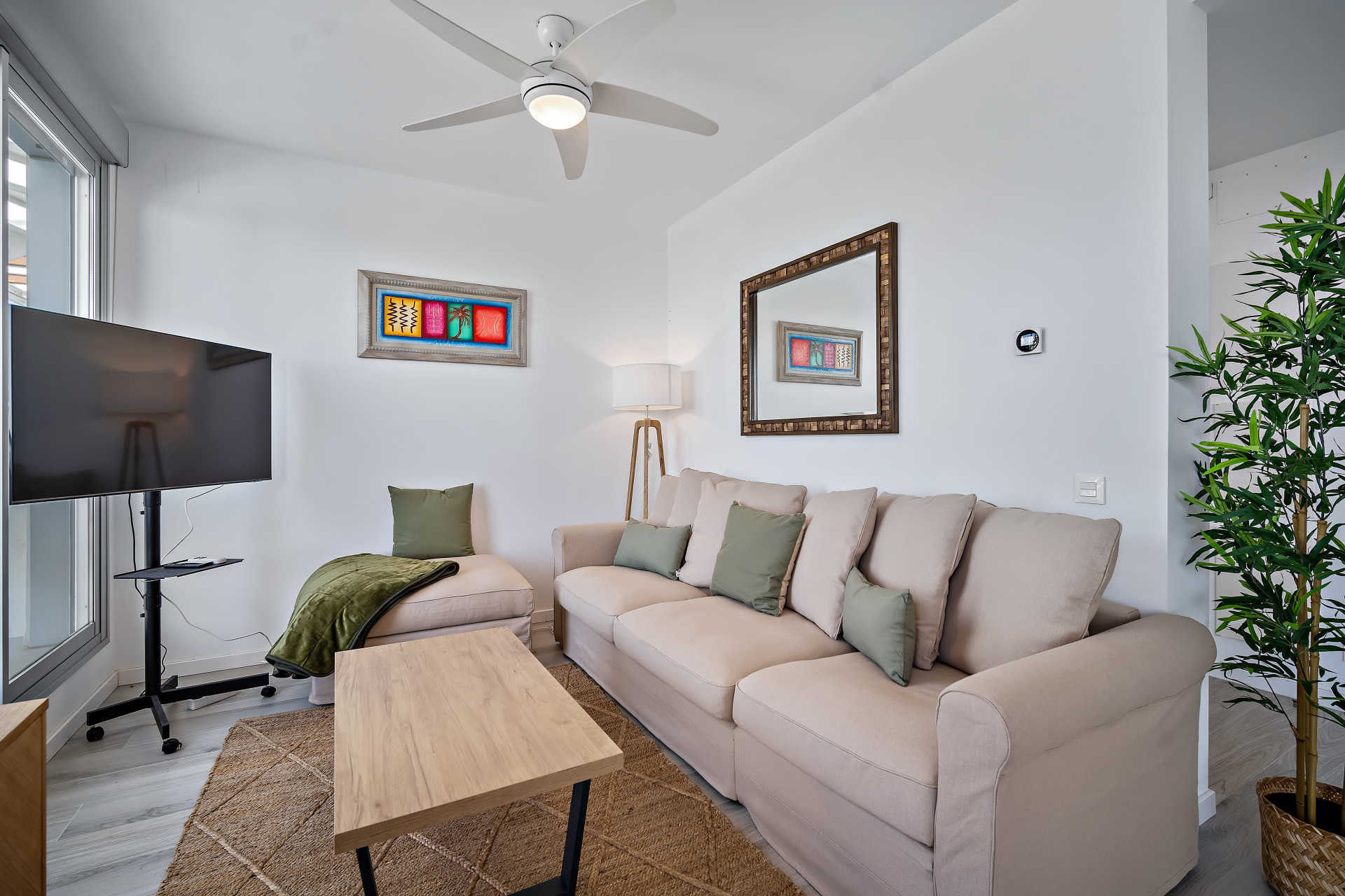 Se accede al apartamento del segundo piso mediante ascensor o escaleras, y al entrar al luminoso y abierto salón y comedor de la cocina, los huéspedes son recibidos con vistas abiertas al mar y ventanas de pared a pared que dan a una excelente terraza orientada al suroeste. Una cocina bien equipada tiene todos los electrodomésticos que puedas necesitar, ¡hasta una cafetera Nespresso!