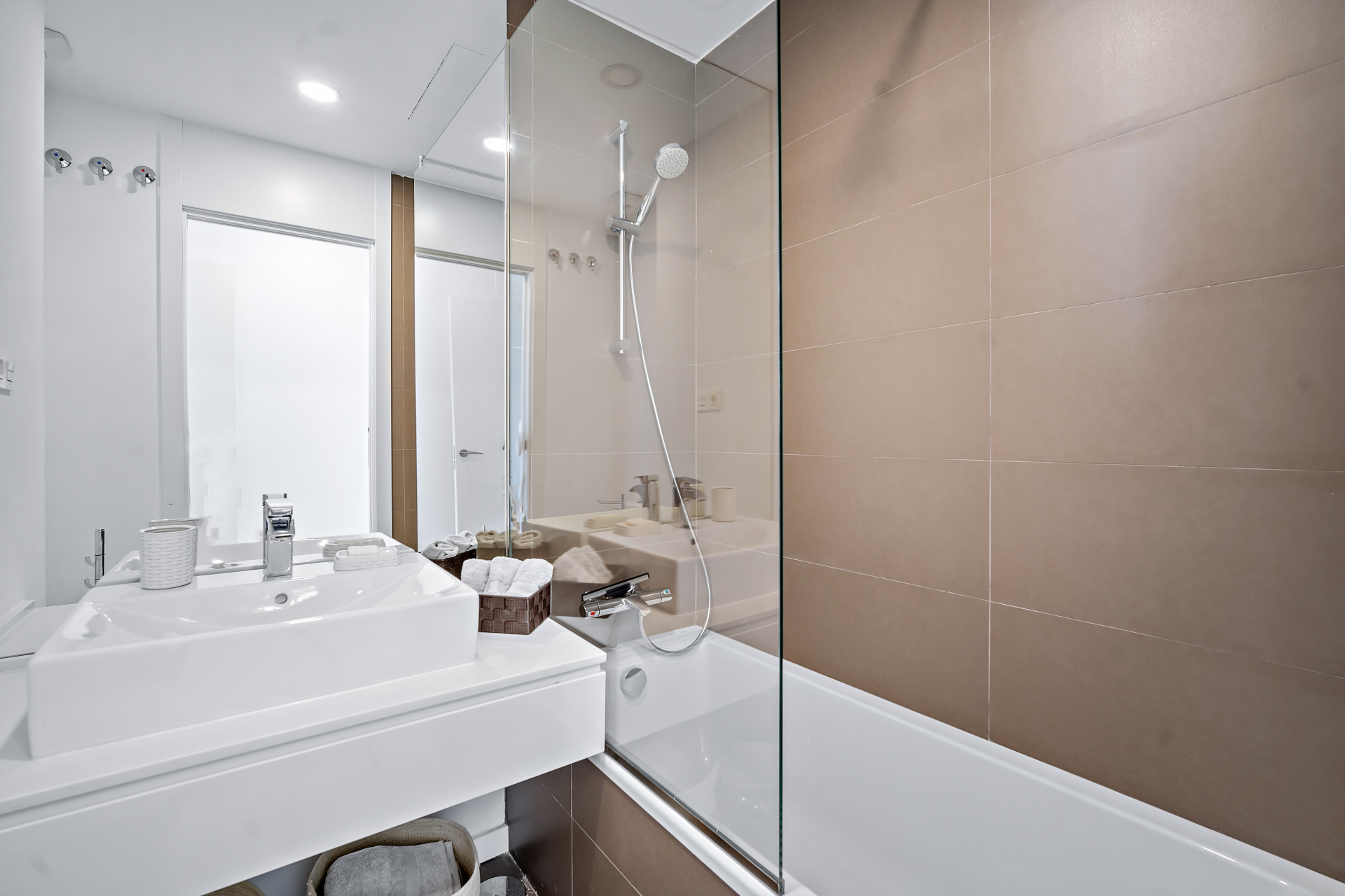 Los huéspedes tienen acceso a la piscina comunitaria y a las zonas para tomar el sol atendidas por un socorrista durante el horario de apertura, así como a una plaza de aparcamiento subterráneo privado, dos terrazas privadas con barbacoa, zona de comedor y sofás al aire libre.