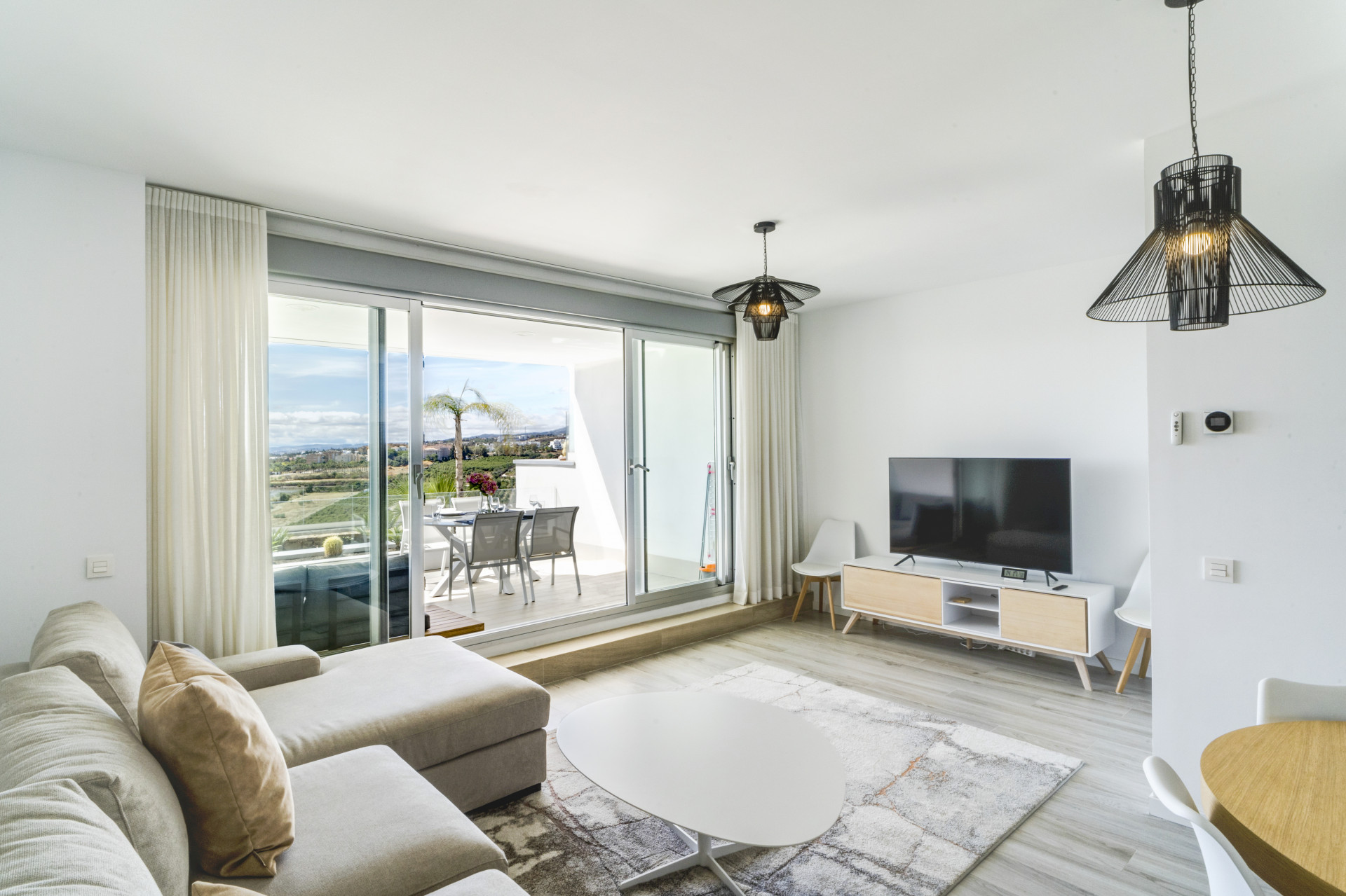 A bright and contemporary apartment offering stunning views of both the countryside and the coast