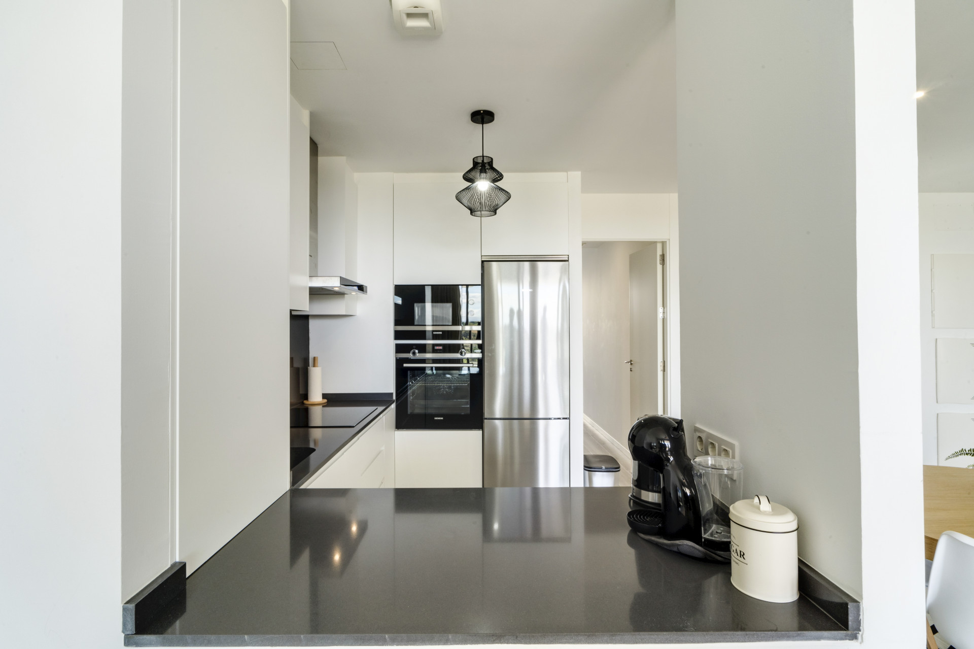 Este apartamento en planta baja cuenta con una amplia cocina abierta, salón y comedor, donde los grandes ventanales enmarcan las impresionantes vistas al mar y conducen a una terraza orientada al suroeste bien ubicada. La cocina está completamente equipada con electrodomésticos modernos, incluida una máquina Nespresso, lo que garantiza que tenga todo lo que necesita para su estadía.