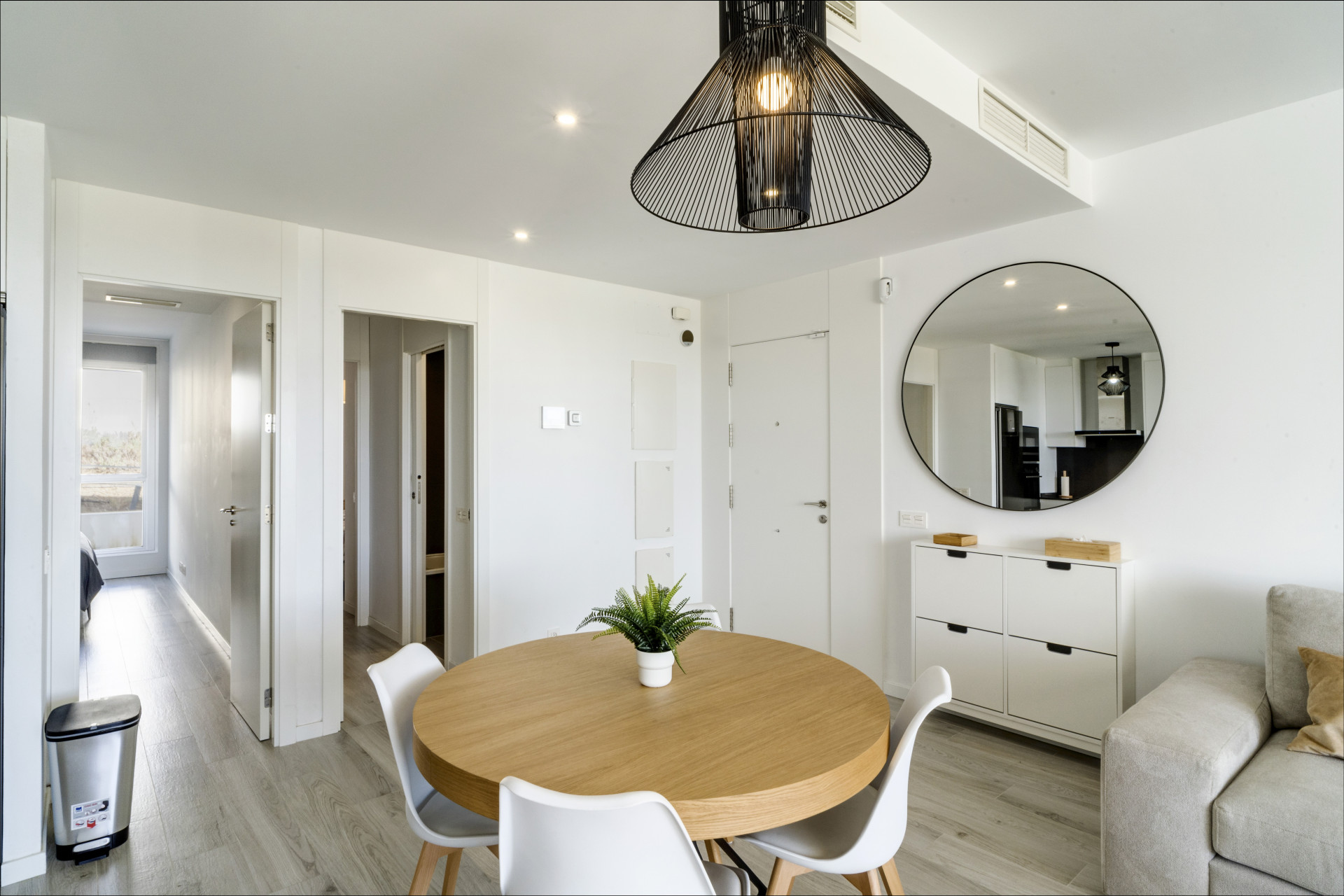 Un apartamento luminoso y contemporáneo que ofrece impresionantes vistas tanto del campo como de la costa. Este excepcional refugio vacacional cuenta con una sala de estar abierta bellamente amueblada y una amplia terraza ideal para tomar el sol de la tarde.