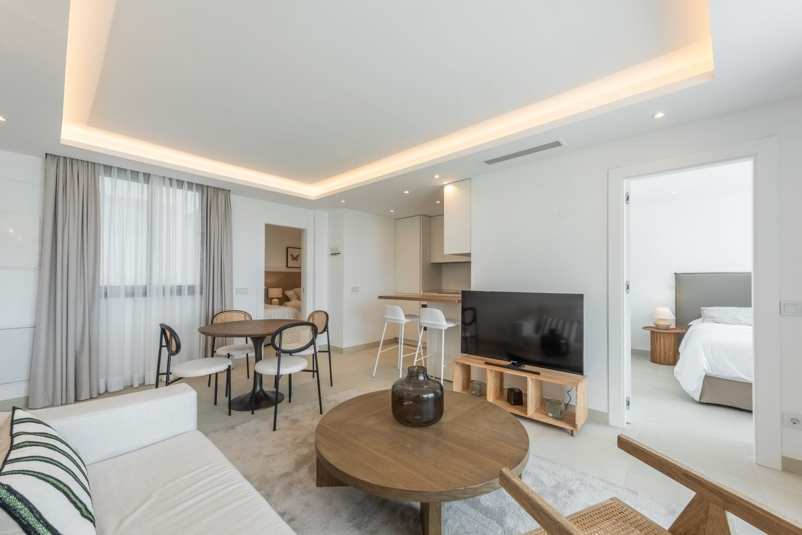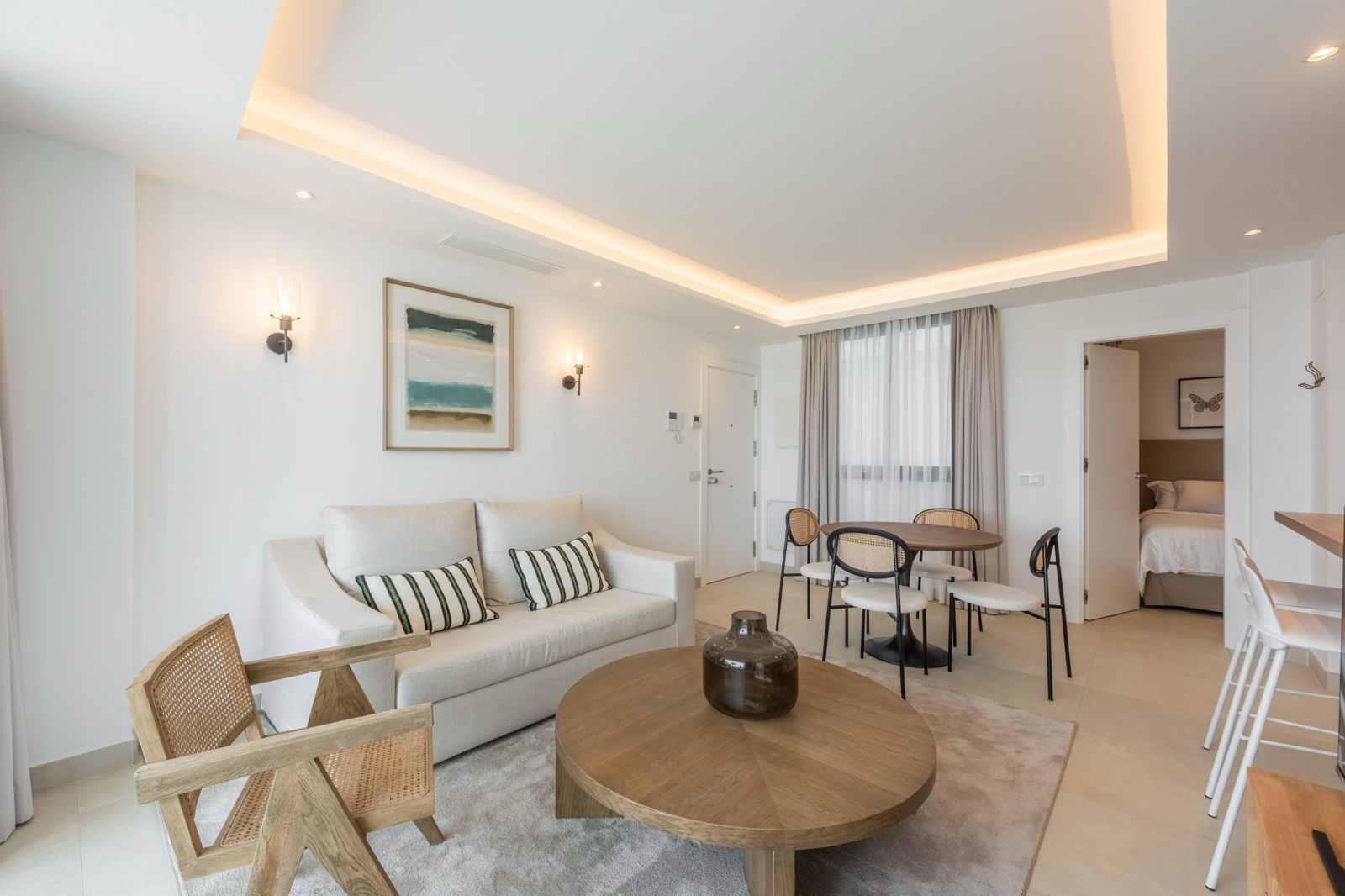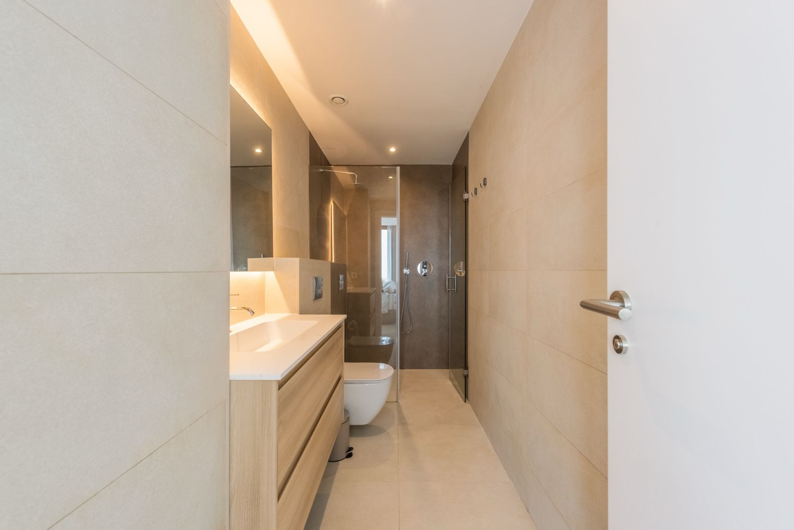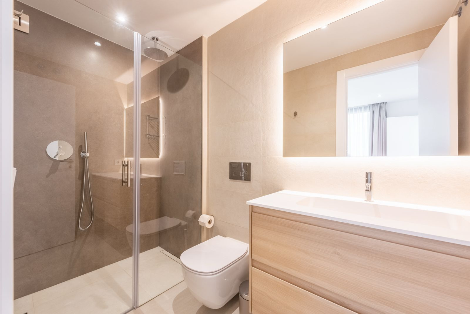 Los acabados de alta calidad y las comodidades modernas son evidentes en toda la vivienda, desde el aire acondicionado frío/calor con sistema de aerotermia de bajo consumo hasta los elegantes suelos de gres porcelánico y la iluminación LED. Las ventanas de suelo a techo con marcos de aluminio y doble acristalamiento de perfil estrecho maximizan la luz natural a la vez que mantienen el aislamiento. La cocina está totalmente equipada con electrodomésticos de bajo consumo, y el apartamento se ofrece completamente amueblado y listo para entrar a vivir.
