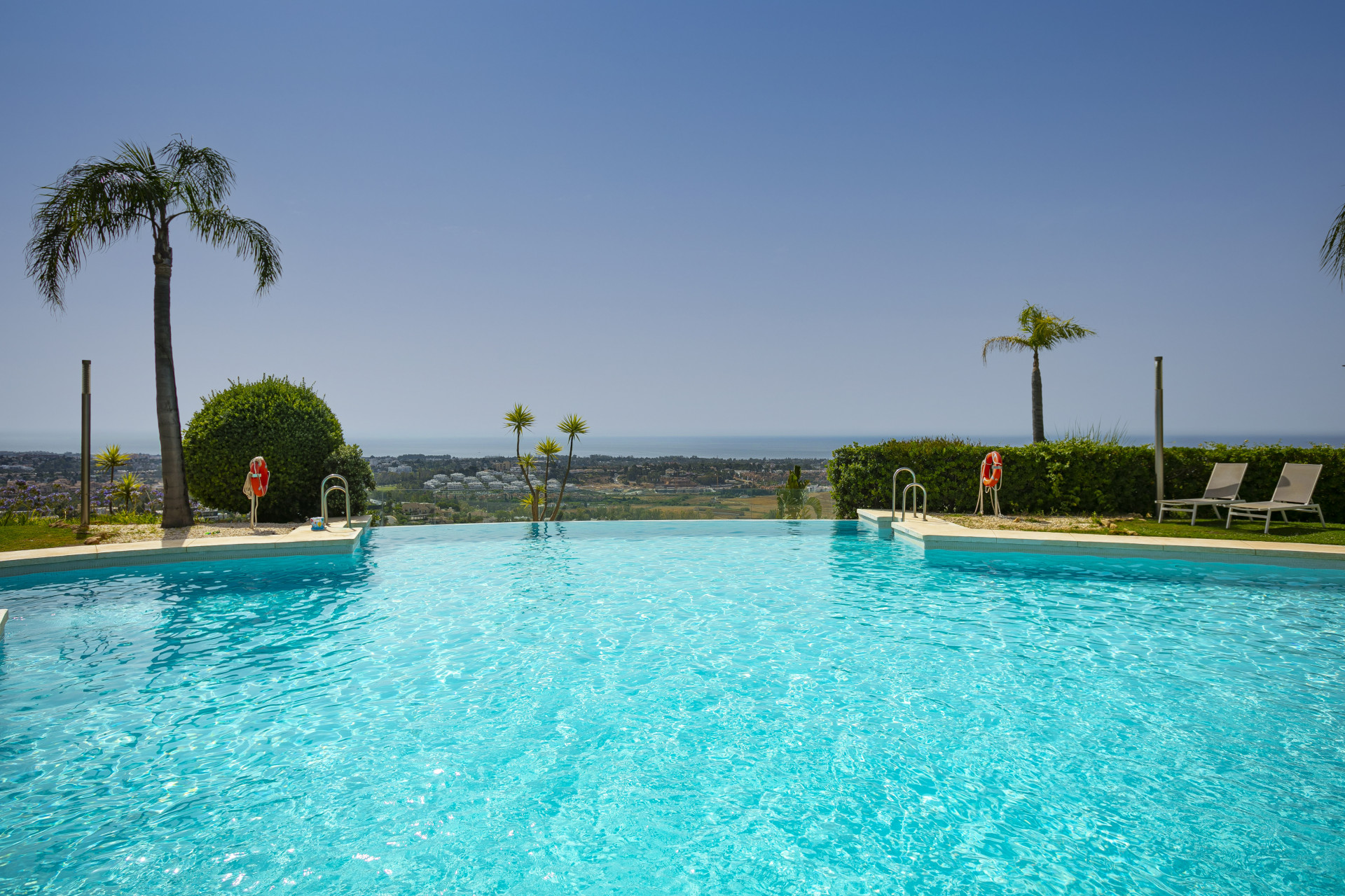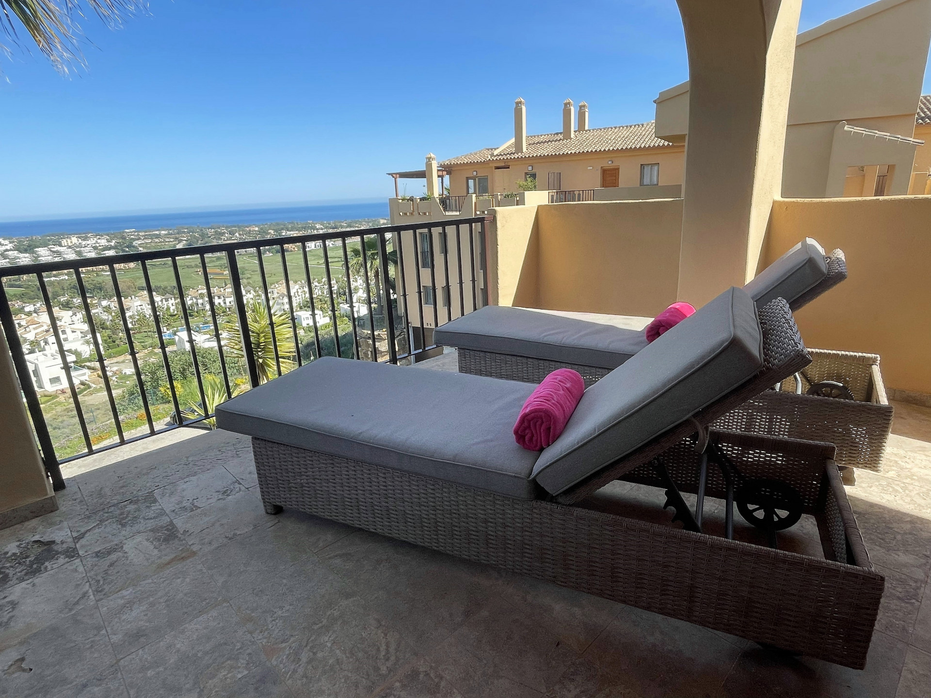 Un hermoso y moderno apartamento de dos dormitorios en las montañas de Benahavis, con vistas inigualables de Marbella y el Mediterráneo.