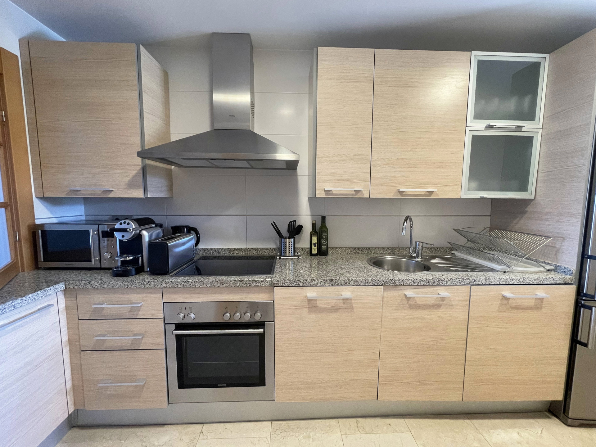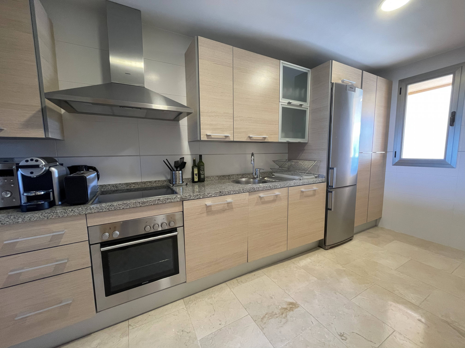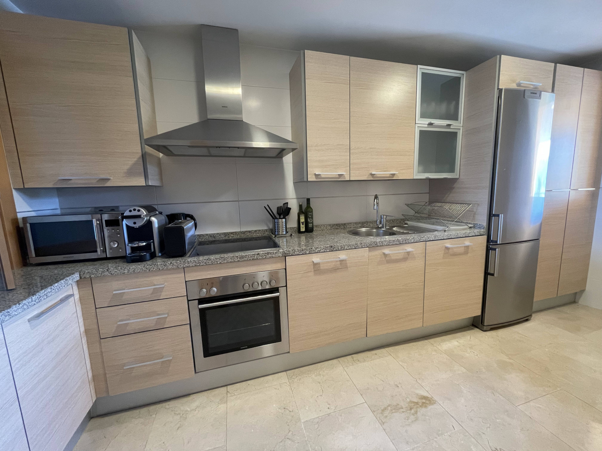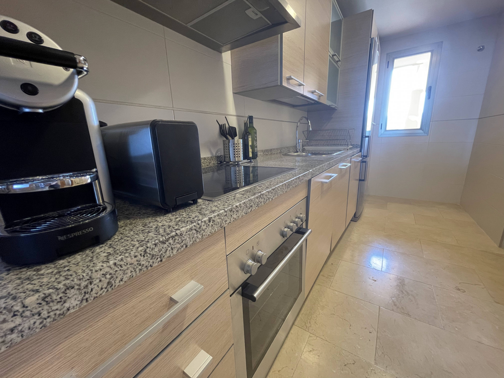 Se accede al apartamento del primer piso por ascensor o escaleras, y al entrar en el luminoso y abierto salón y comedor, los huéspedes son recibidos con vistas abiertas al mar y puertas dobles a una excelente terraza orientada al sureste. Una cocina bien equipada con barra de bar se abre a la sala de estar y tiene todos los electrodomésticos que pueda necesitar, ¡hasta una máquina de café Nespresso!