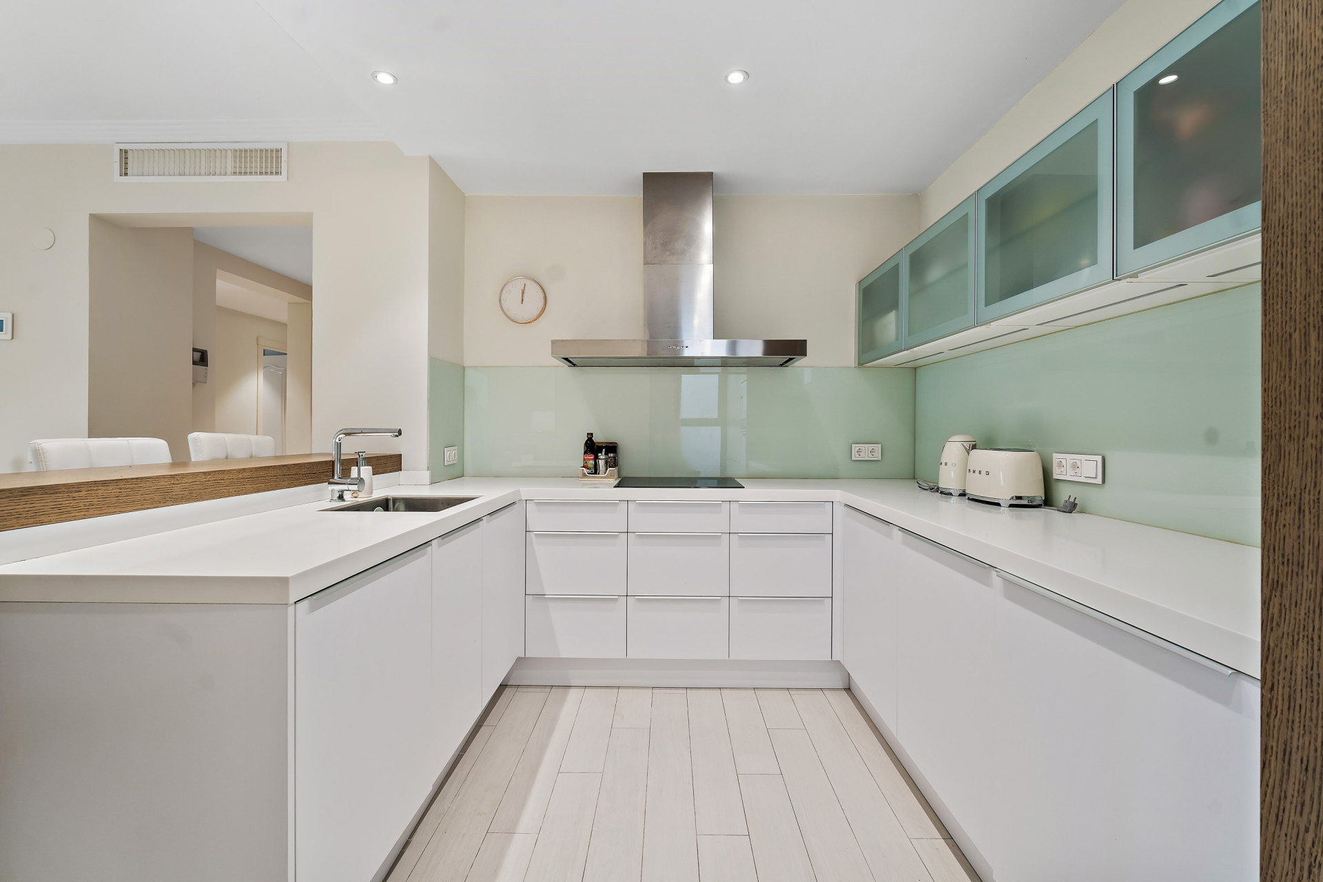 Se accede al apartamento del primer piso por ascensor o escaleras, y al entrar en el luminoso y abierto salón y comedor, los huéspedes son recibidos con vistas abiertas al mar y puertas dobles a una excelente terraza orientada al sureste. Una cocina bien equipada con barra de bar se abre a la sala de estar y tiene todos los electrodomésticos que pueda necesitar, ¡hasta una máquina de café Nespresso!