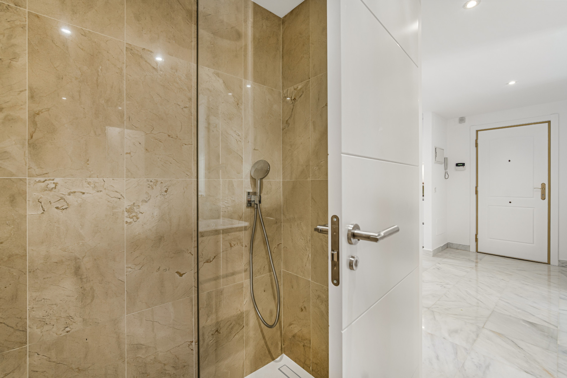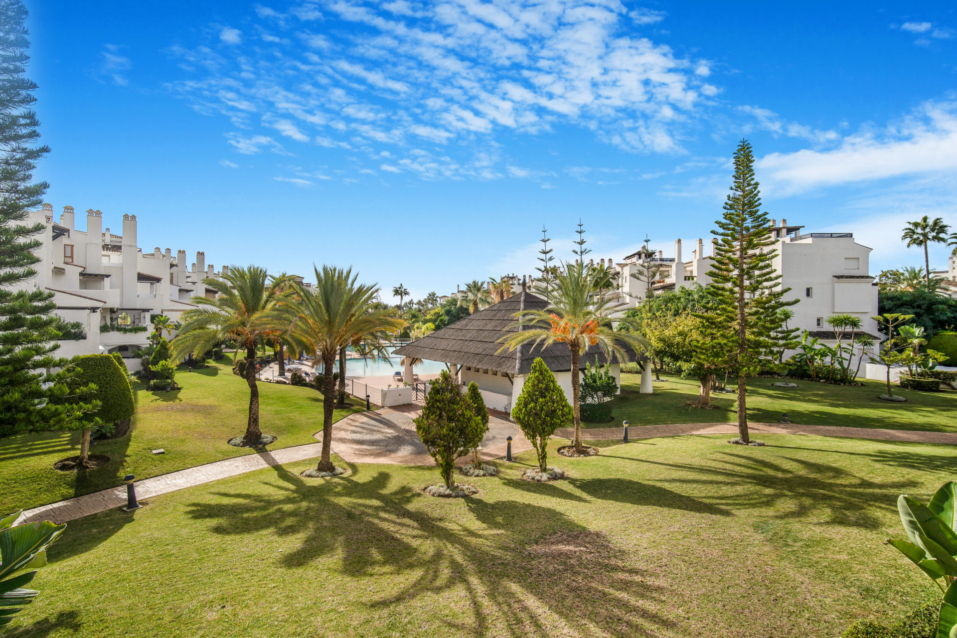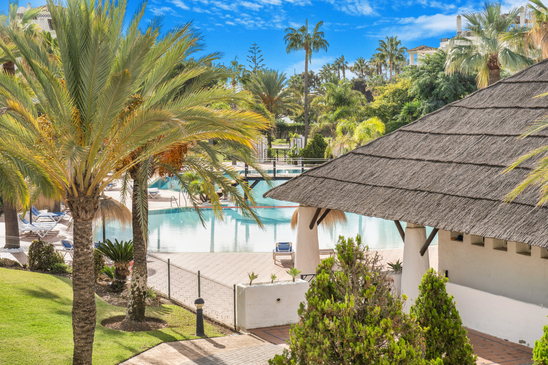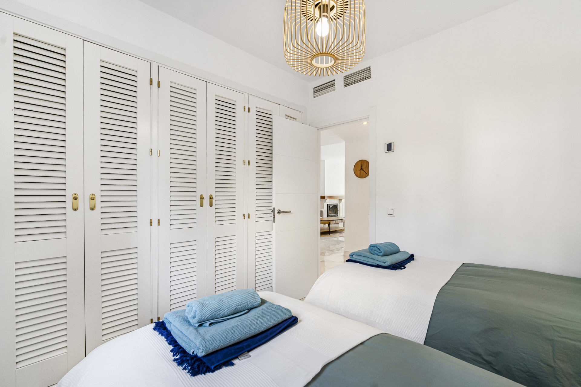 El apartamento cuenta con una acogedora sala de estar con chimenea y una terraza ventosa, perfecta para relajarse durante los veranos en Marbella. Hay dos dormitorios, uno con cama king size y baño en suite, y otro con dos camas individuales y baño de visitas. Hay armarios empotrados en cada dormitorio y secador de pelo en ambos baños. Una cocina totalmente equipada y un comedor luminoso son perfectos para comidas familiares.