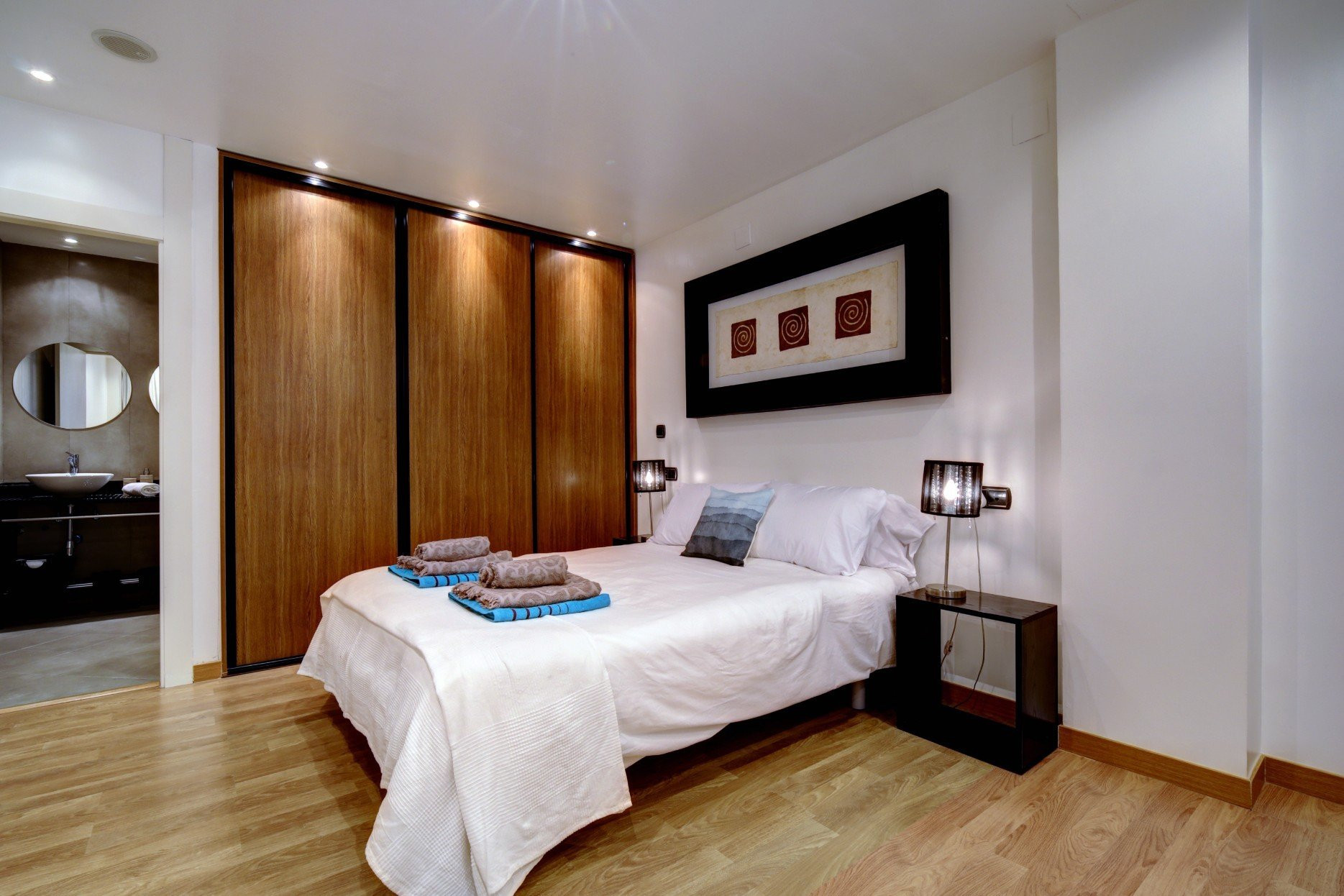 El pasillo lo lleva al dormitorio principal con cama king size y baño privado con ducha.