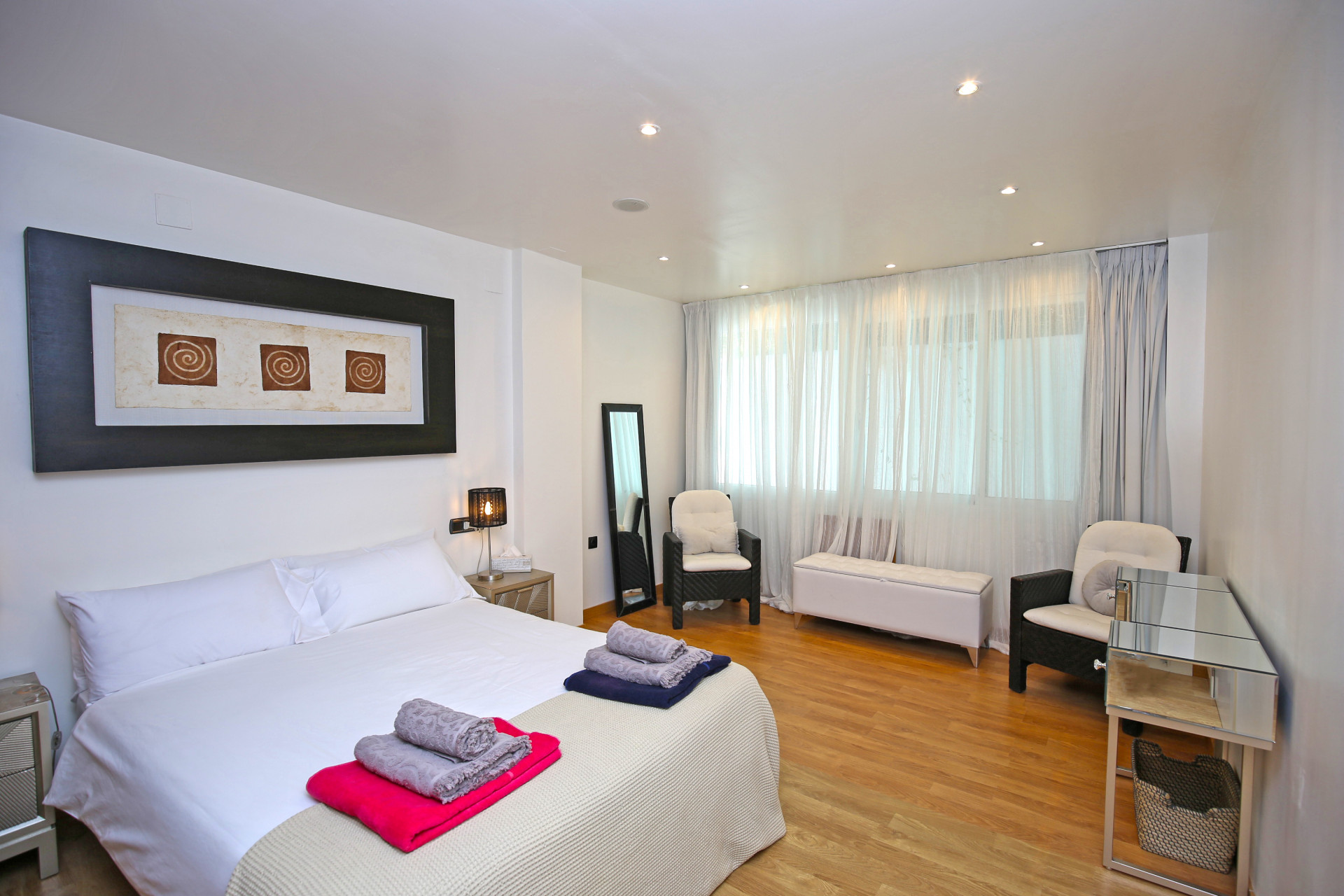 Hay dos dormitorios más y un baño más completo también con una gran ducha espaciosa. El dormitorio más alejado tiene acceso a la terraza y se puede utilizar como entrada y salida independientes si se desea.