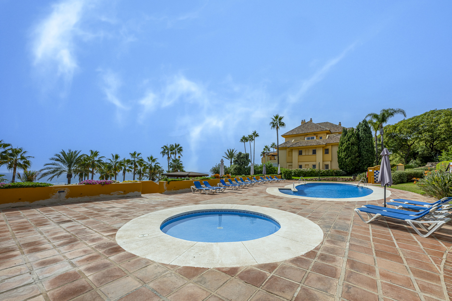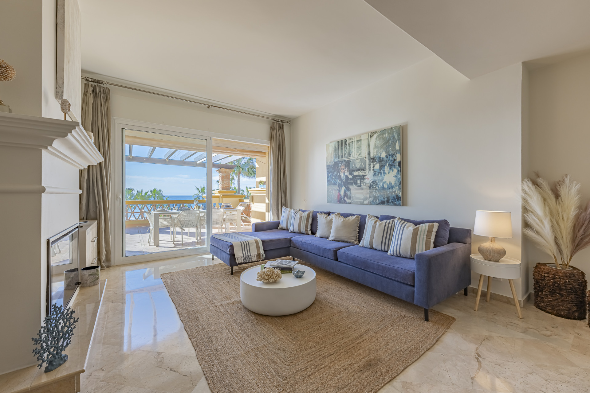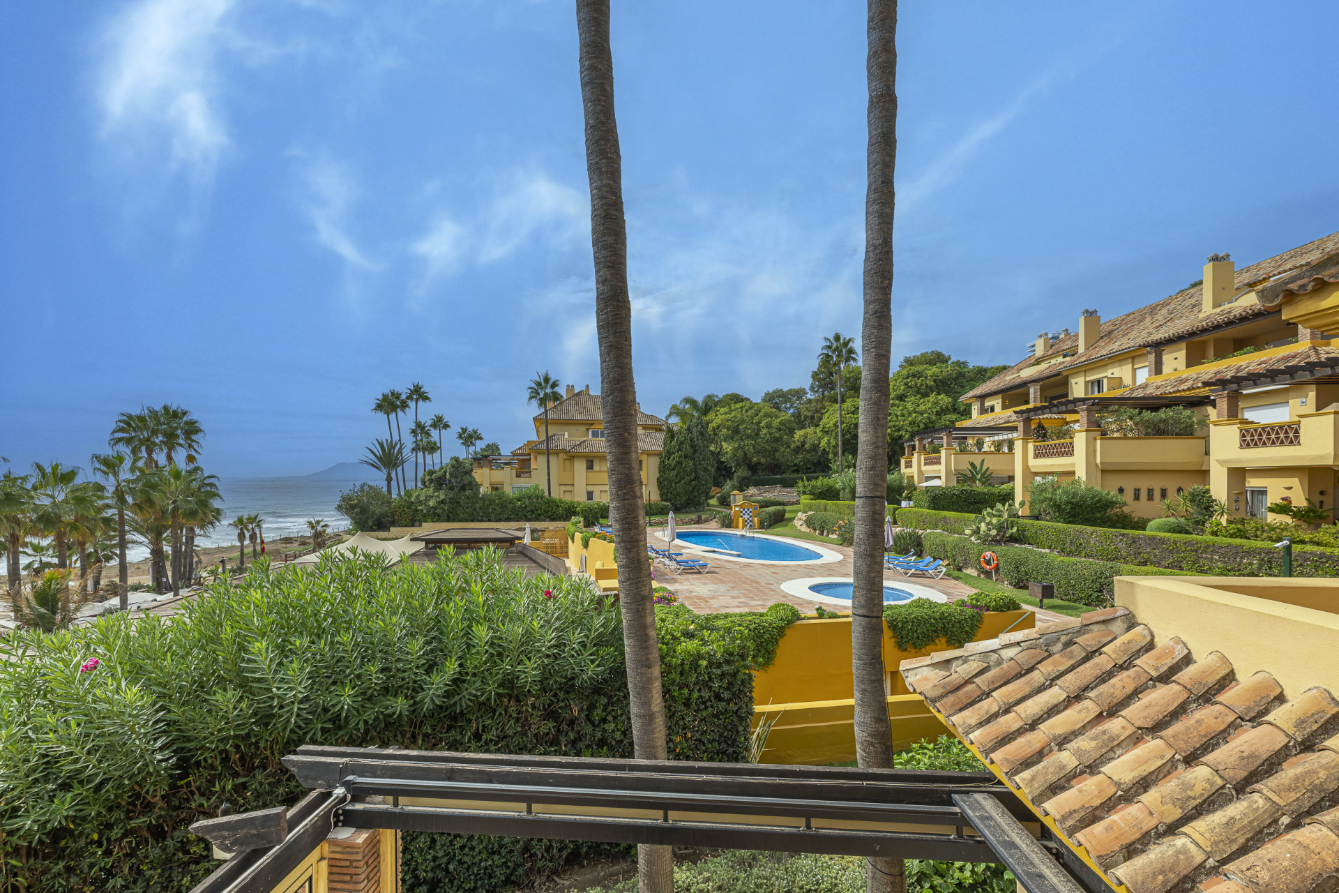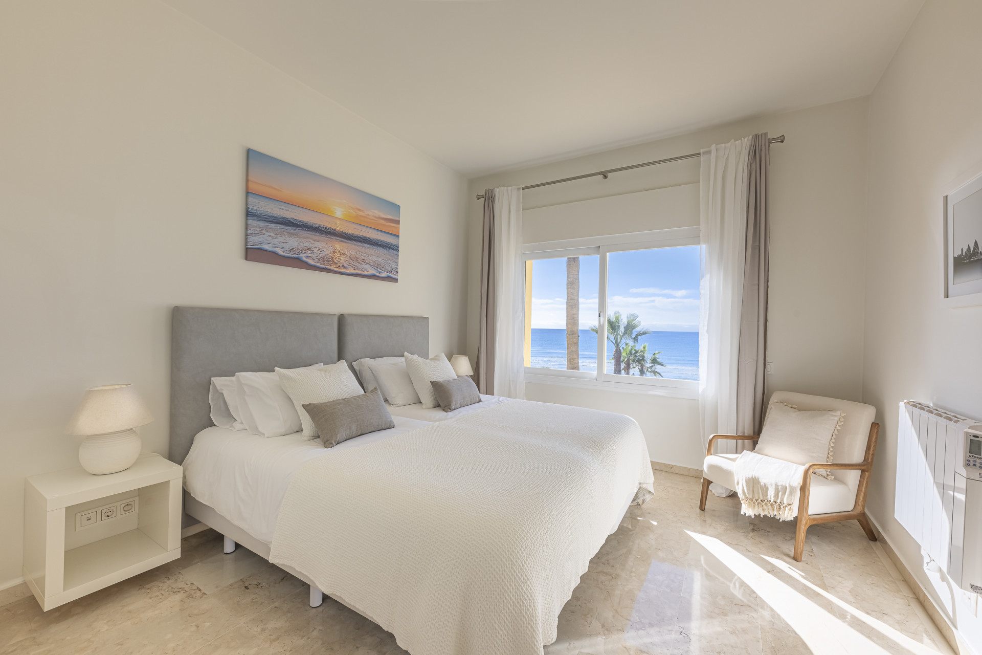 Experimente el mejor estilo de vida frente a la playa en este impresionante apartamento de tres dormitorios situado en Rio Real, Marbella. Con amplias vistas al mar y encanto mediterráneo ambientando la escena. Baño con luz natural, la entrada invitada conduce a una cocina moderna y totalmente equipada y un amplio salón comedor que se abre a una hermosa terraza orientada al sur, ideal para cenar al aire libre y disfrutar de vistas panorámicas. Dos de los dormitorios bien equipados cuentan con vistas directas al mar con baños en suite, mientras que el tercero ofrece su propia terraza privada. Otras comodidades incluyen aparcamiento seguro y dos salas de almacenamiento. El complejo Rio Real Playa mejora su experiencia de vida con exuberantes jardines, dos piscinas comunitarias (una climatizada), y aparcamiento de cortesía para huéspedes, a solo cinco minutos a pie del icónico Trocadero Beach Club y cerca de las exclusivas comodidades del Rio Real Hotel & Golf Club, con el Aeropuerto Internacional de Málaga a solo 30 minutos en coche.