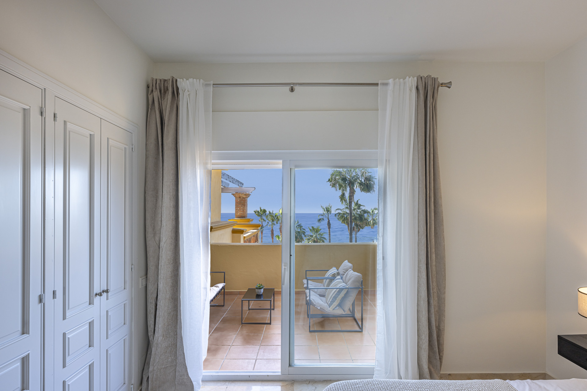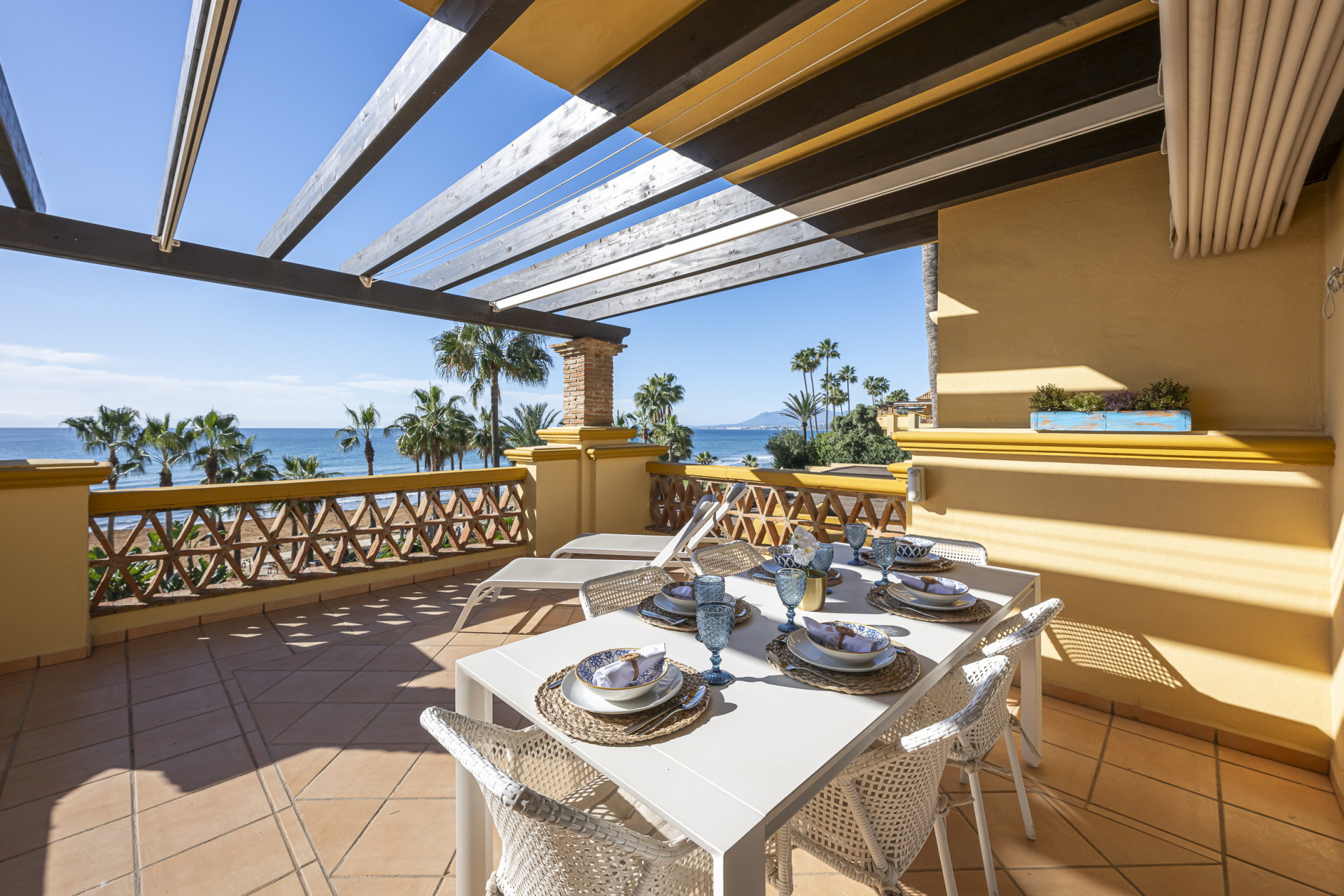 Impresionante apartamento frente a la playa de tres dormitorios situado en Rio Real, Marbella.