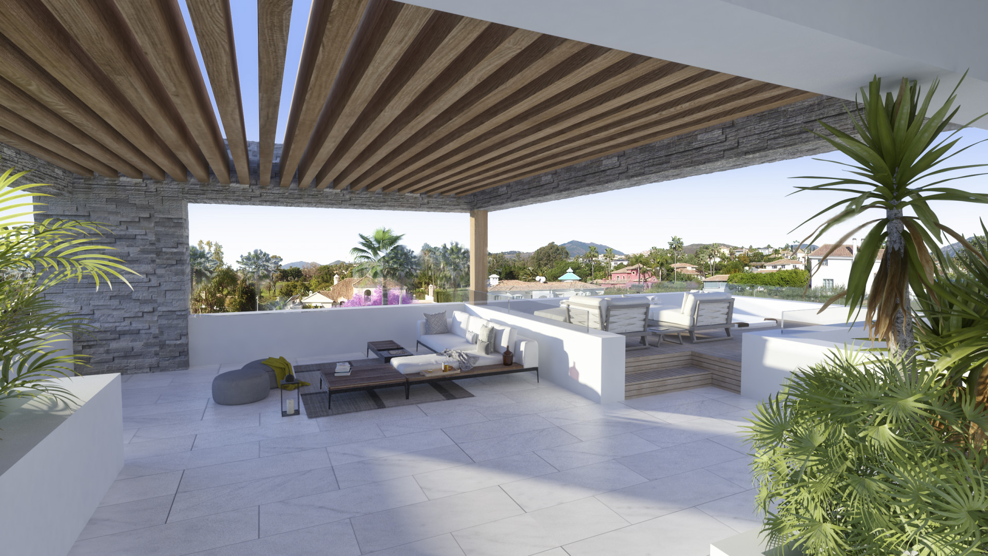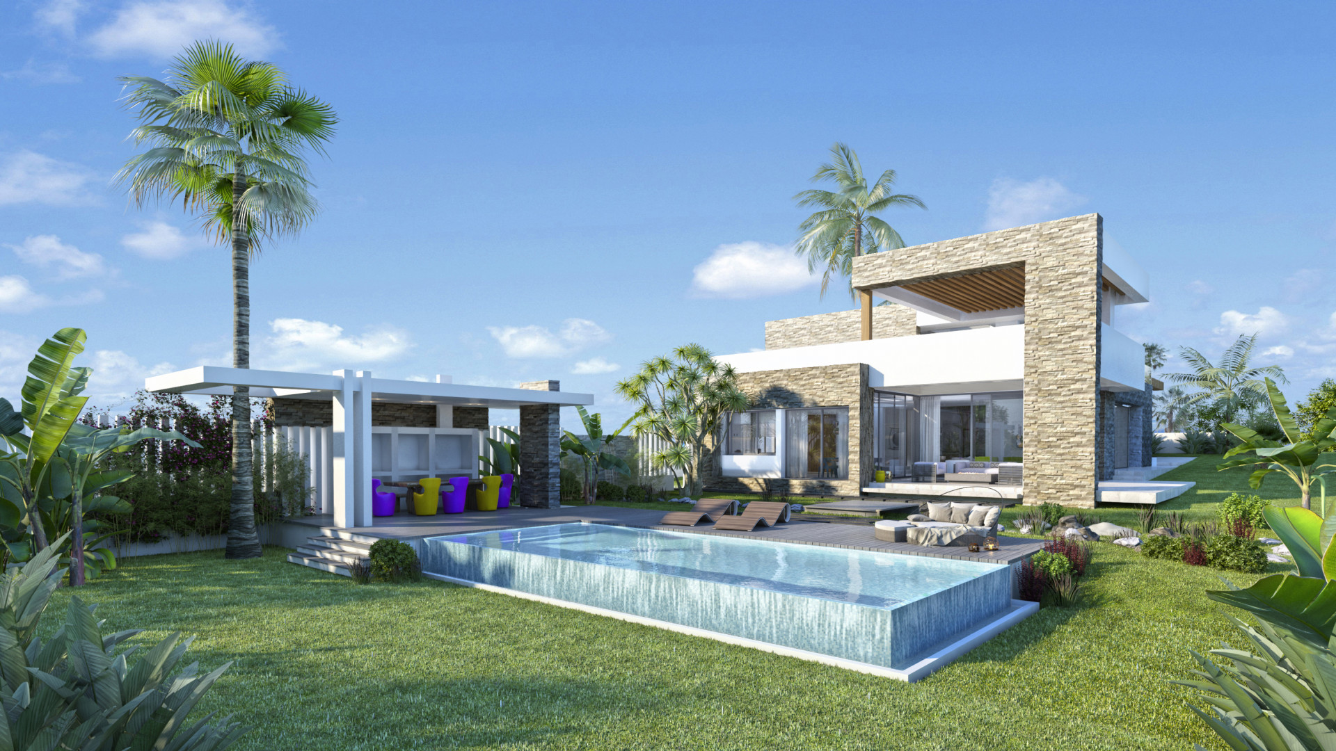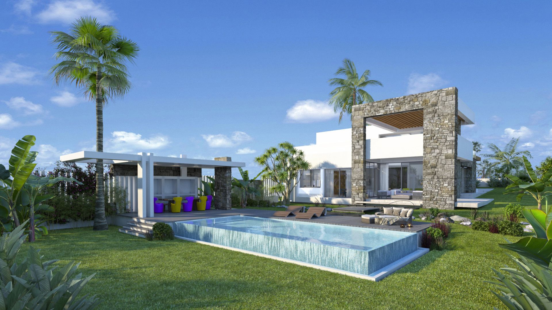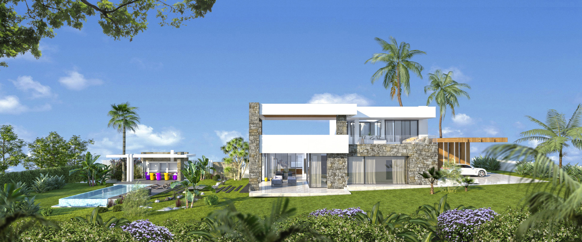 Auriga Boutique Homes, tres hermosas villas con cinco dormitorios y cinco baños. Las villas están ubicadas en el valle del golf de Nueva Andalucia. Todas las comodidades, escuelas, restaurantes y instalaciones deportivas están cerca. Los espacios de vida han sido cuidadosamente diseñados para aprovechar al máximo la orientación con una amplia luz natural en toda la villa. Las terrazas y las zonas de piscina disfrutan de sol y algunos atardeceres espectaculares. Hay un ascensor que conecta los tres pisos para comodidad y seguridad. El sótano tiene una gran piscina cubierta y spa. También hay un cine en casa, que se puede utilizar para el entretenimiento.
