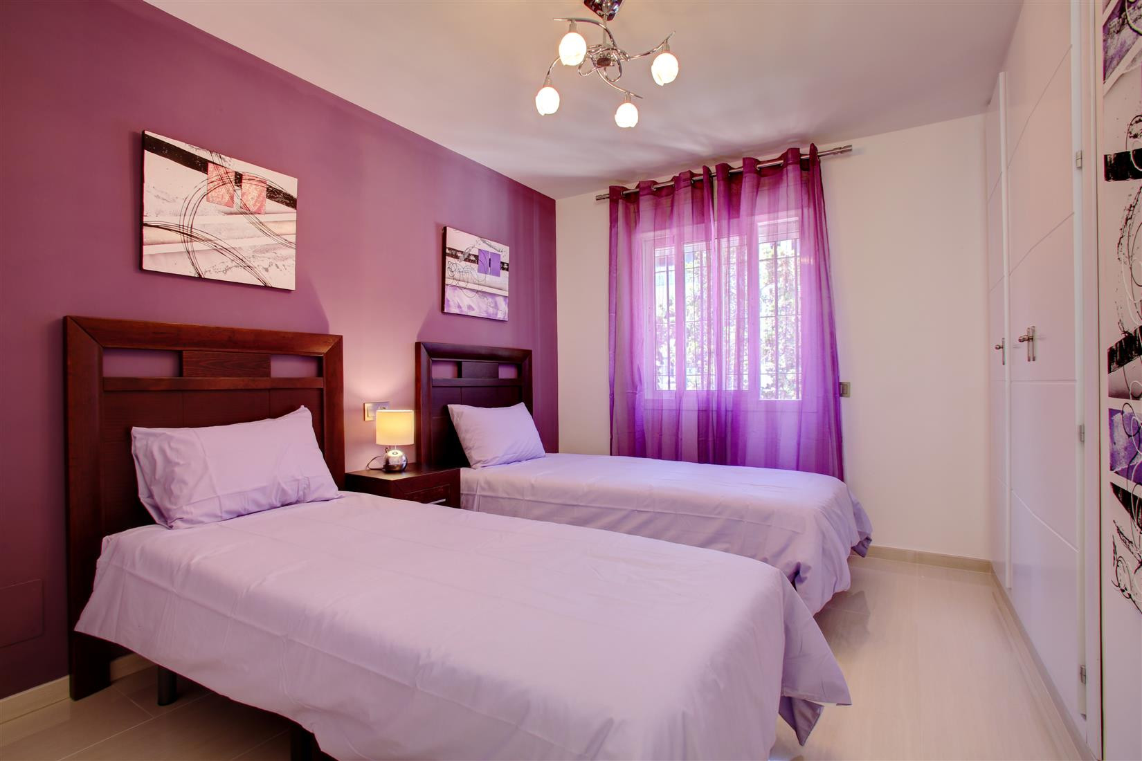 En la primera planta se encuentra el dormitorio principal con vestidor separado y un baño de mármol muy bien decorado con cabina de ducha de hidromasaje separada; Toda la habitación está acabada en mármol travertino. Otras dos habitaciones grandes y bien decoradas en este piso (cada una con dos camas individuales) comparten un baño familiar.