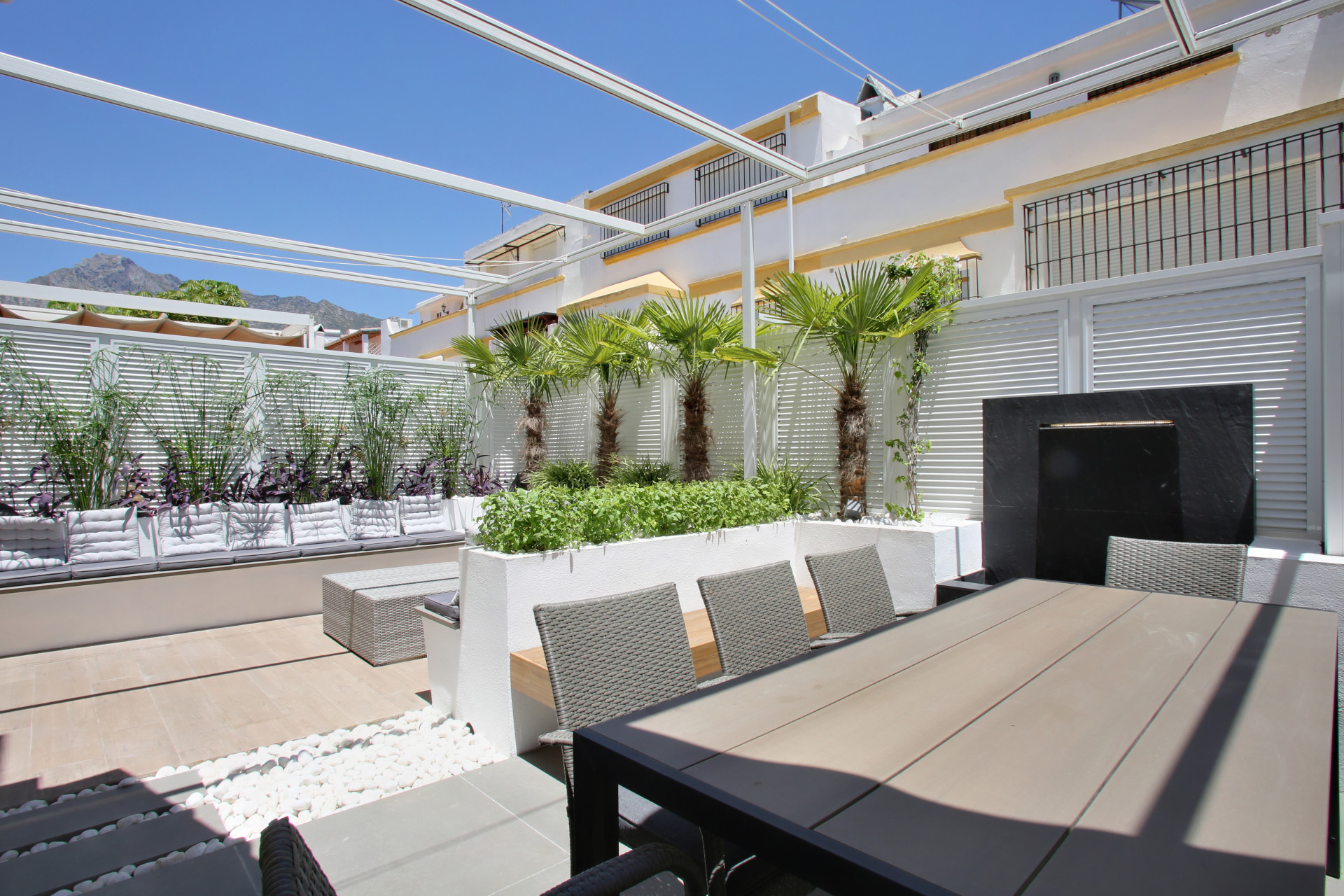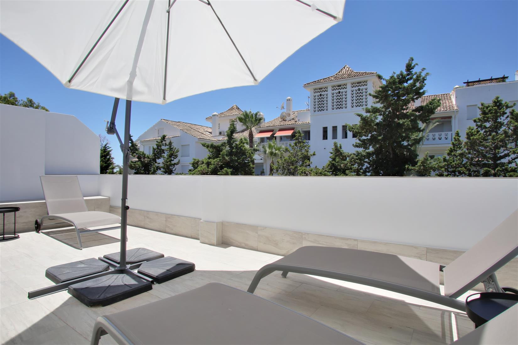 Absolutamente impresionante, recientemente remodelada, espaciosa, moderna y magníficamente equipada. Casa adosada de cinco dormitorios en la exclusiva comunidad de 5 estrellas de Marbellamar, a solo unos metros de Casablanca Playa, sin duda una de las mejores playas de la prestigiosa Milla de Oro de Marbella.