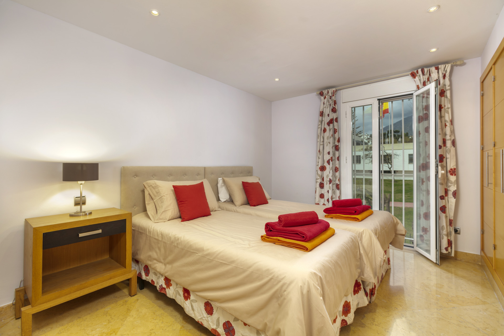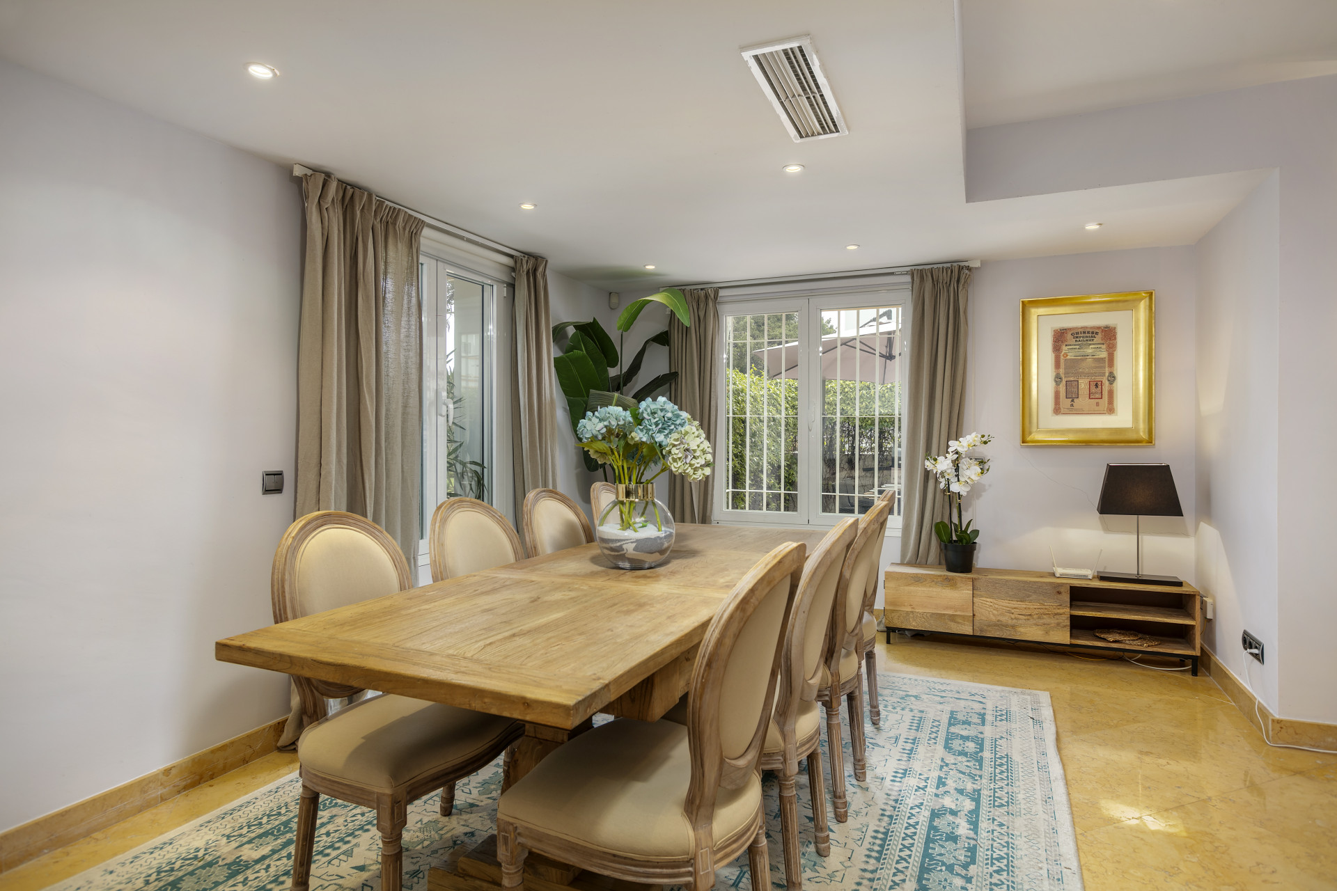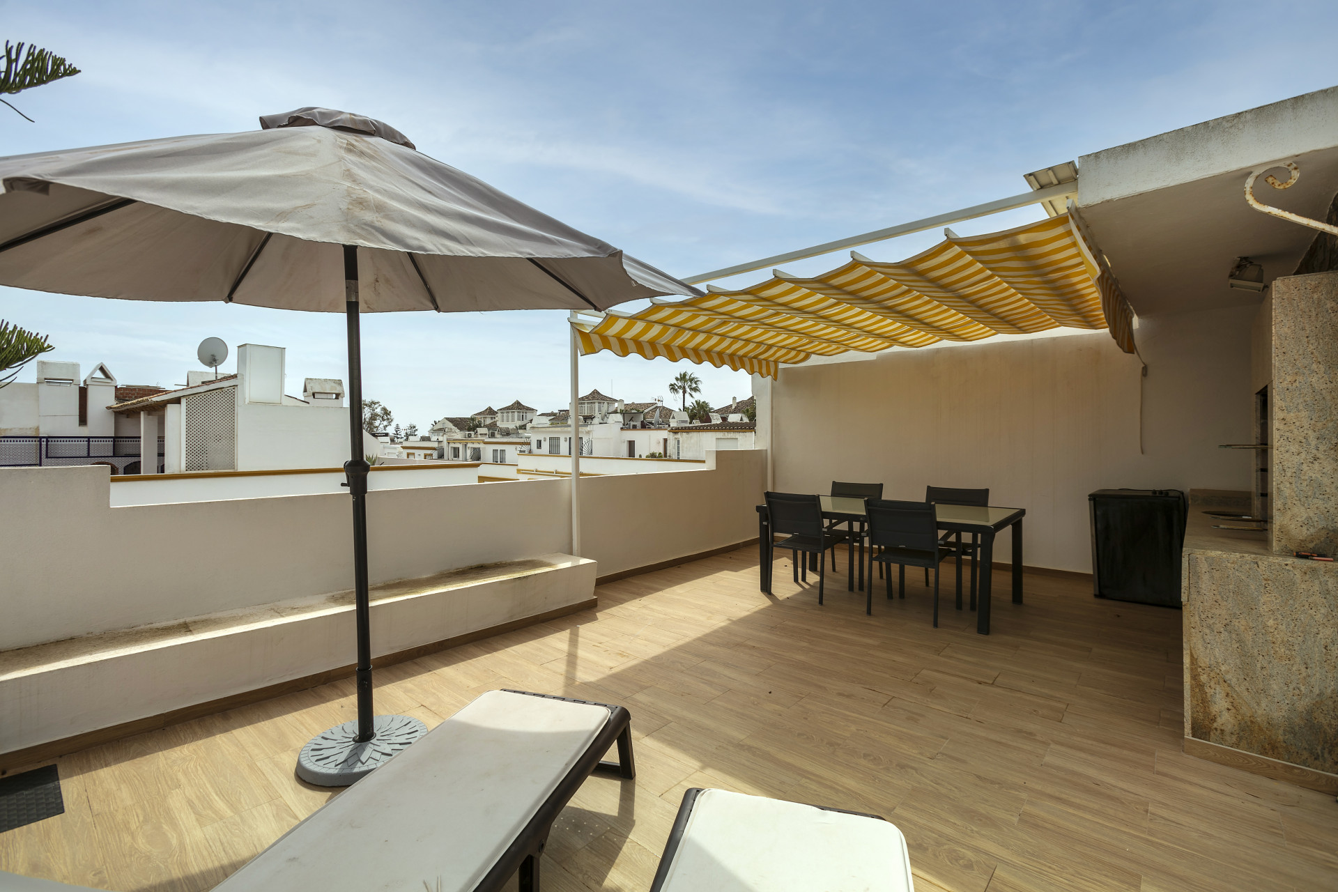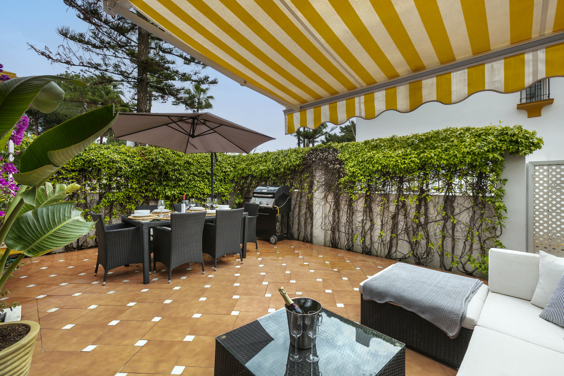 Situada en los tranquilos jardines de la comunidad frente al mar de Marbellamar, Casa Palmera es una casa adosada de tres plantas bellamente decorada.