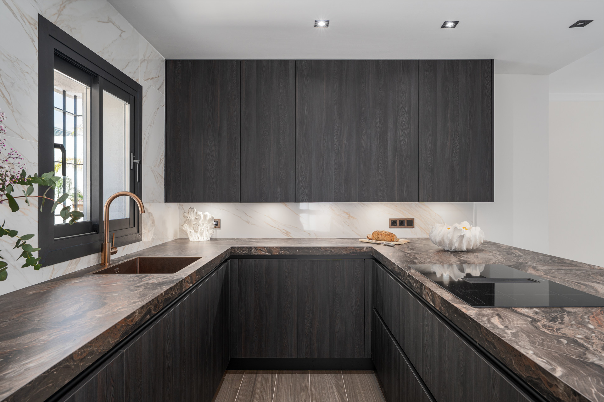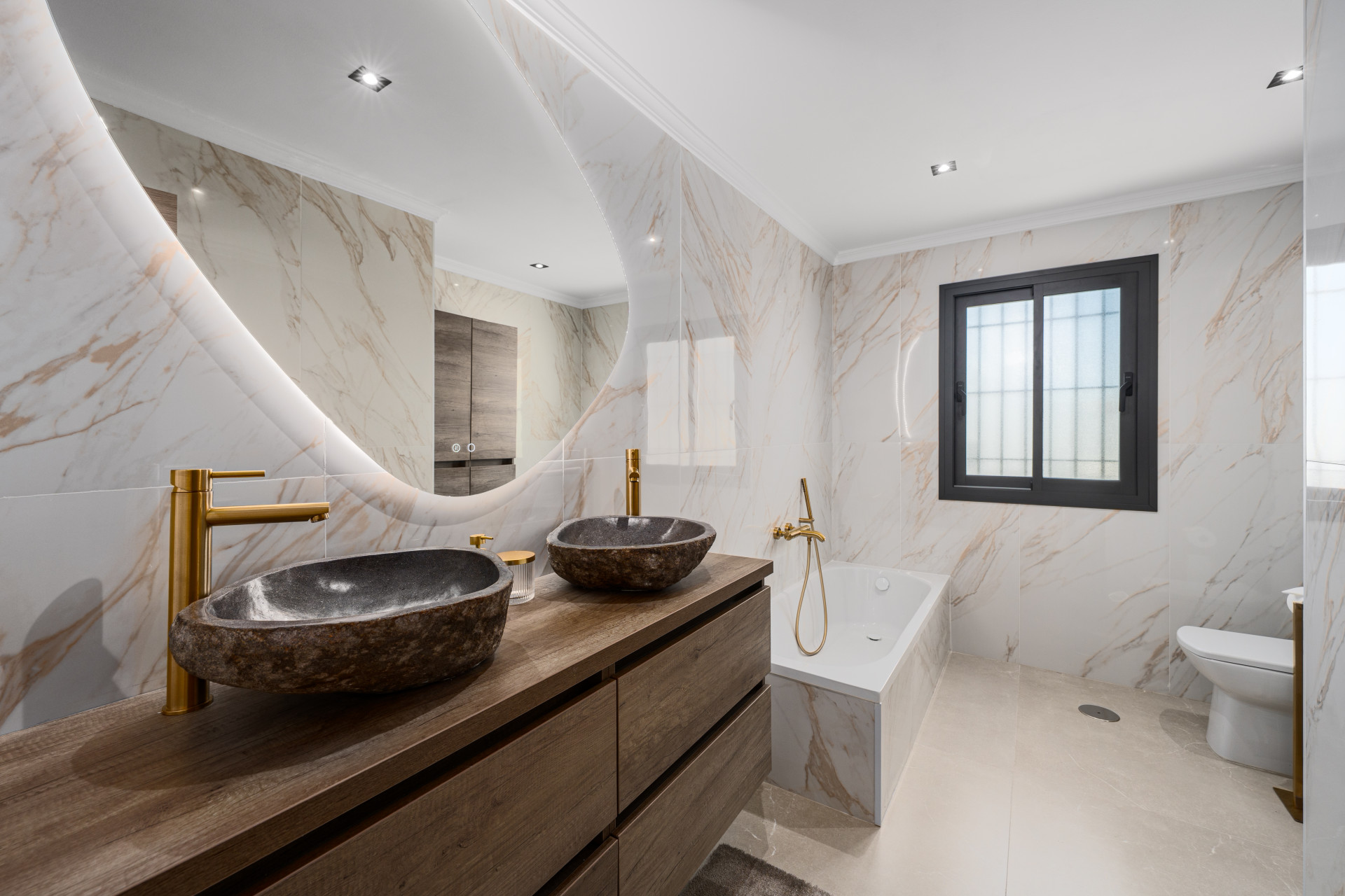 Esta elegante villa de seis dormitorios en Altos del Rodeo, Nueva Andalucia, ofrece un refinado encanto mediterráneo con comodidades modernas, a pocos minutos de Puerto Banús y de las mejores instalaciones de Marbella. Recientemente renovado, la casa mezcla arquitectura clásica con actualizaciones contemporáneas a través de tres amplios niveles. En su interior, la villa cuenta con cinco dormitorios generosos —tres con baño en suite— y una versátil sexta habitación que actualmente se utiliza como oficina en casa. Otras comodidades incluyen sauna, aseo de invitados y interiores diseñados con acabados de calidad y muebles a medida. La terraza orientada al sur fluye directamente a una piscina privada, creando un ambiente luminoso y acogedor para comer al aire libre, descansar y entretenerse. El diseño de planta abierta mejora la conexión perfecta entre la vida interior y exterior. Situado en una zona residencial tranquila pero bien conectada, la villa está cerca de campos de golf de primera calidad, tiendas de lujo y playas populares. Las familias se benefician del fácil acceso a escuelas internacionales y de los cómodos enlaces de transporte a Marbella, San Pedro y más allá. Con aparcamiento privado, almacenamiento y amplias zonas de estar, esta villa ofrece elegancia y practicidad, ideal para una residencia de tiempo completo o un elegante retiro vacacional en el corazón de la Costa del Sol.