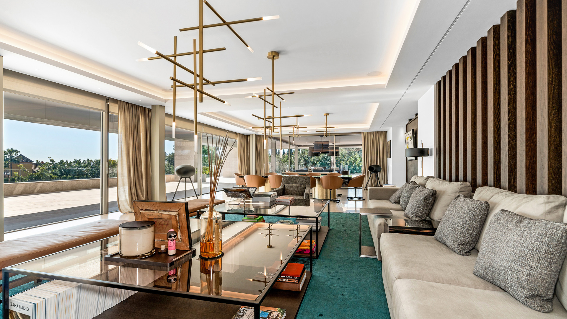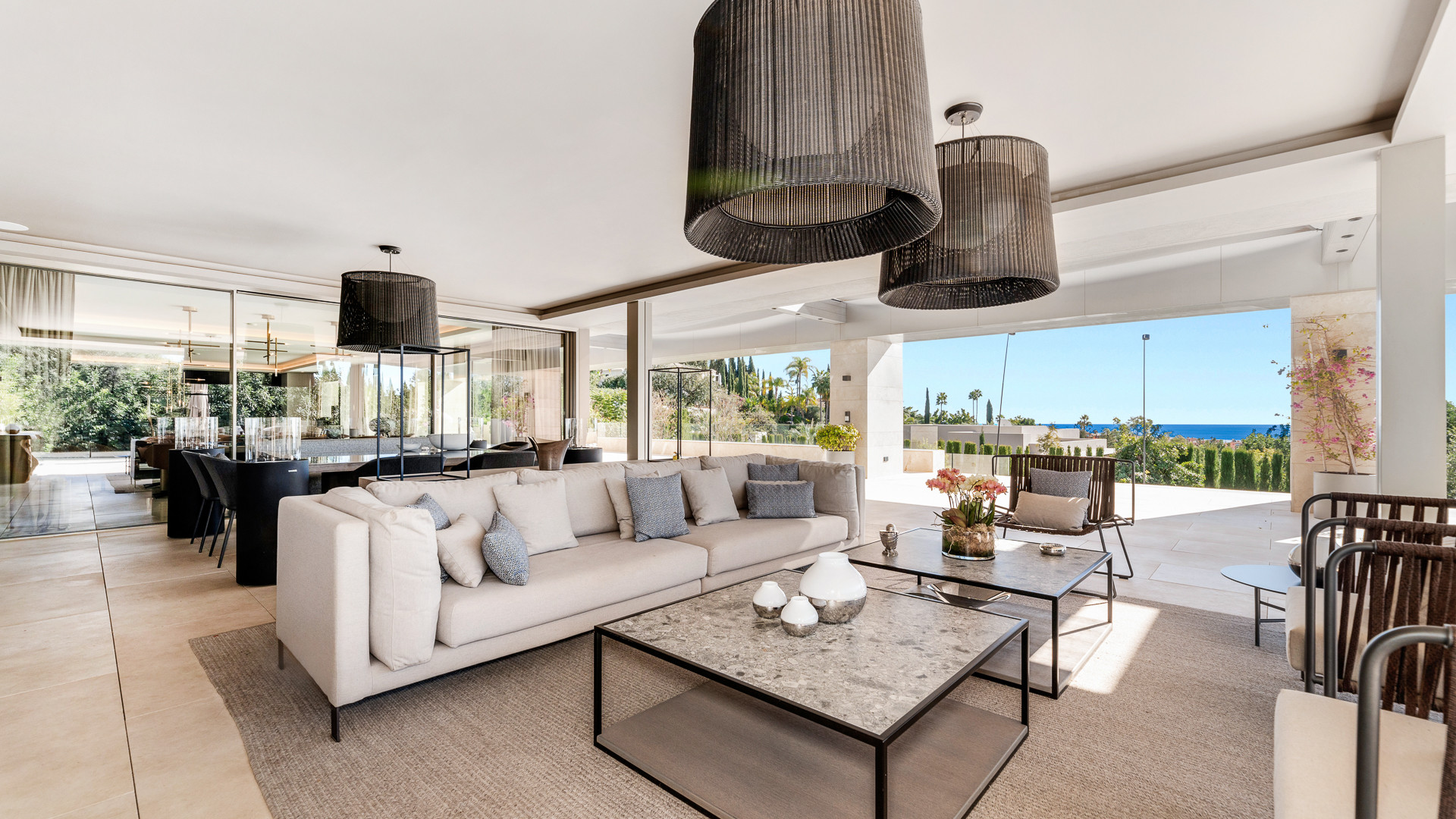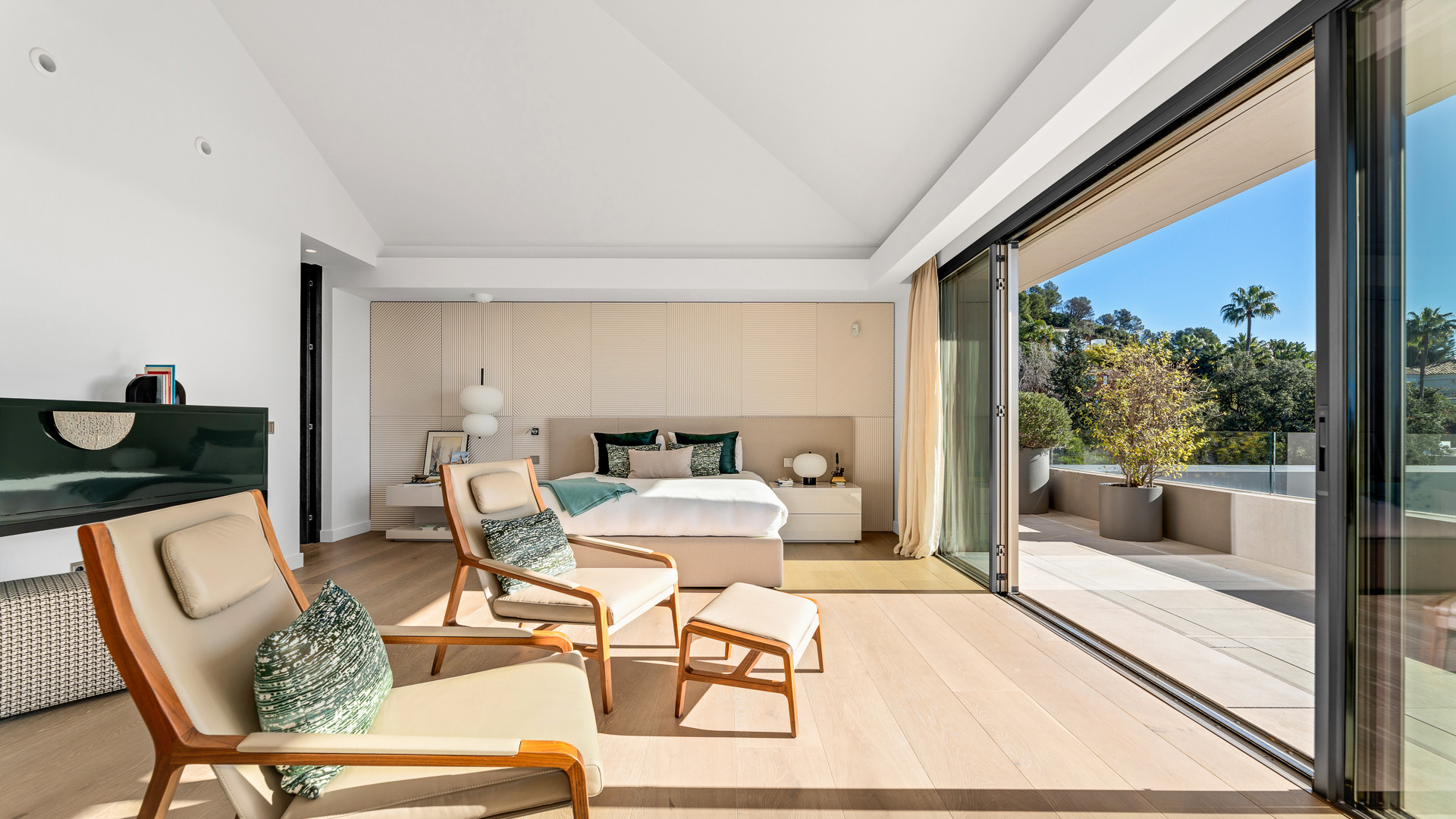 Situado en la prestigiosa comunidad cerrada de Cascada de Camoján, una de las comunidades más buscadas de Marbella, esta joya arquitectónica es la creación del reconocido arquitecto Maurice Sainz. Combinando un diseño moderno audaz con los más altos estándares de artesanía, la residencia ofrece un estilo de vida realmente elevado. Situado en una parcela generosa, la villa abarca tres niveles de diseño impecable. Rodeado de exuberantes jardines, el hogar está bañado en luz natural y ofrece vistas panorámicas del Mediterráneo desde casi todos los ángulos. El elegante hall de entrada se abre a una espectacular sala de estar de planta abierta, conectando perfectamente un elegante salón, comedor formal y una cocina gourmet totalmente equipada. Estos espacios fluyen sin esfuerzo en una vasta terraza orientada al sur, ideal para alfresco entretenerse en un escenario de impresionantes vistas al mar. La experiencia al aire libre se completa con una piscina de agua salada de gran tamaño, perfectamente integrada en el entorno sereno y ajardinado. También en la planta principal hay una amplia oficina y un dormitorio de invitados en suite, diseñado con comodidad y funcionalidad en mente. Arriba, dos amplias suites de dormitorio ofrecen lo último en privacidad y relajación, incluyendo la opulenta suite principal, cada una con vestidores, salones privados y acceso a una espectacular terraza envolvente con vistas panorámicas. El diseño permite fácilmente una suite adicional de invitados en este nivel si se desea. El nivel inferior está dedicado a bienestar y entretenimiento. Una lujosa zona de spa cuenta con piscina cubierta climatizada, sauna y zona de relajación. Un cine privado, sala de entretenimiento, bodega, garaje para cinco coches y amplio espacio de almacenamiento completan la planta baja. La sostenibilidad y la tecnología están cuidadosamente integradas en todo el hogar, con paneles solares, iluminación LED, sistemas de eficiencia energética, automatización inteligente de la casa, calefacción por suelo radiante y un sistema Dolby Surround de última generación. La seguridad mejorada incluye vigilancia 24 horas y un sofisticado sistema de alarma para una paz mental completa. Ubicado en las verdes colinas de la Milla de Oro de Marbella, esta notable residencia es un santuario de estilo, comodidad y diseño de vanguardia, su hogar de ensueño espera.