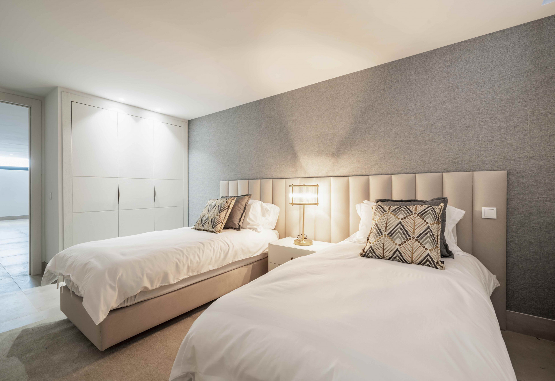 Descubra una oportunidad exclusiva para poseer una villa de lujo y lujosa en la prestigiosa zona de El Campanario Golf, idealmente situada entre Marbella y Estepona. A solo un kilómetro de la playa y a 10 minutos en coche de Puerto Banús, esta residencia combina el lujo, la tranquilidad y el potencial de inversión excepcional. La villa cuenta con un diseño moderno de un reconocido arquitecto local, con materiales de primera calidad y tecnología de hogar inteligente en todas partes. Se extiende a través de tres niveles más un solárium en la azotea, ofrece una amplia vida con techos altos, grandes ventanas y un diseño de planta abierta que incluye una cocina de diseño, comedor y salón de chimenea. Arriba, encontrarás tres elegantes habitaciones, cada una con baño en suite y terrazas privadas. La suite principal también incluye un armario walk-in. El nivel inferior ofrece un cine en casa con bar, suite de invitados y lavadero. El solarium en la azotea es un refugio privado, completo con un jacuzzi de madera, vistas a la montaña y espacio para tomar el sol y entretener. Otras características incluyen calefacción por suelo radiante, aire acondicionado, piscina privada, jardín ajardinado y aparcamiento para dos coches. Los residentes disfrutan del acceso a un campo de golf, centro de bienestar, gimnasio, spa, pistas de tenis, espacio de coworking, y un restaurante mediterráneo. Cerca de escuelas internacionales, exclusivos clubes de playa, tiendas y restaurantes, y a sólo 40 minutos del aeropuerto de Málaga, esta villa es la mezcla perfecta de estilo, comodidad y ubicación.