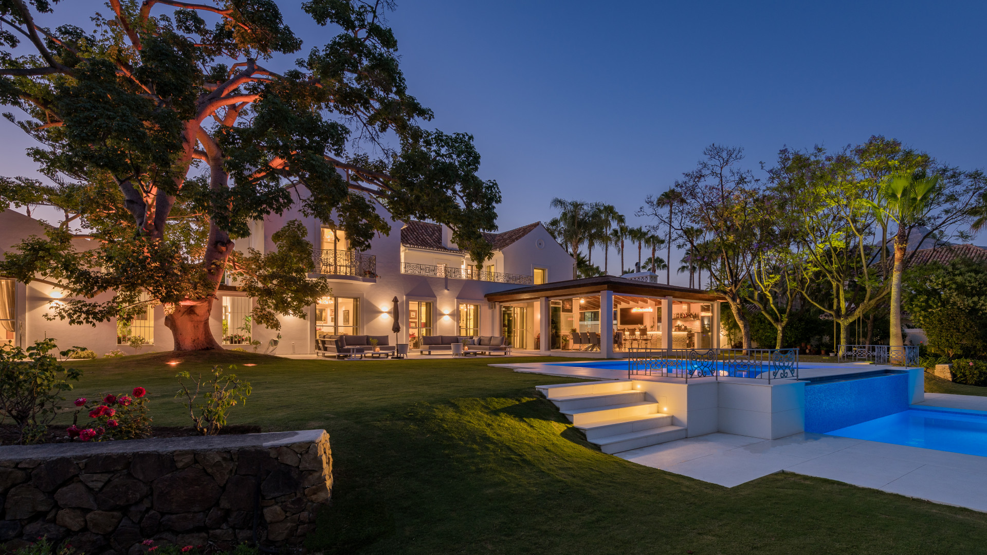 Situado en La Cerquilla, esta impresionante propiedad ofrece seis amplios dormitorios, combinando elegantes interiores con acogedores espacios exteriores. Al otro lado del ala del dormitorio, un exuberante jardín de pared vertical garantiza que cada habitación disfrute de una vista verde refrescante, mientras que una escalera privada desde el carport proporciona acceso directo a los dormitorios sin pasar por la casa principal. La principal sala de estar cuenta con un elegante sofá curvo alrededor de una chimenea elegante, recubrimiento incorporado con iluminación de acento, y una gran obra de arte enmarcada, complementada por un comedor formal independiente con una larga mesa de madera, sillas tapizadas, arañas gemelas y otra chimenea, creando un refinado espacio entretenido. La cocina moderna exhibe armarios de taupe, encimeras de piedra oscura, y una cocina isla, con un comedor adyacente que se abre a los jardines, mientras que un salón con vigas de madera expuestas, un bar, y una chimenea de piedra conecta perfectamente a la terraza y la piscina. En el exterior, la propiedad incluye una gran piscina con una sección elevada de cascadas, céspedes manicados, árboles maduros para la privacidad, múltiples zonas de estar y comedor, un patio de baldosas con una fuente decorativa, y amplias terrazas que realzan el flujo interior-outdoor, junto con el acceso directo raro a Los Naranjos Golf a través de amplias vías de golf. Las comodidades modernas incluyen aire acondicionado y calefacción por suelo radiante, así como un sistema completo de automatización de la casa compatible con iPads, iPhones y otros dispositivos inteligentes para un control remoto sin esfuerzo. Con sus seis dormitorios, amplios espacios de vida, jardines ajardinados y acceso único al golf, esta residencia ofrece tanto escala como estilo, proporcionando un retiro privado en el barrio de La Cerquilla, cerca de los principales campos de golf, playas y los mejores servicios de Marbella.