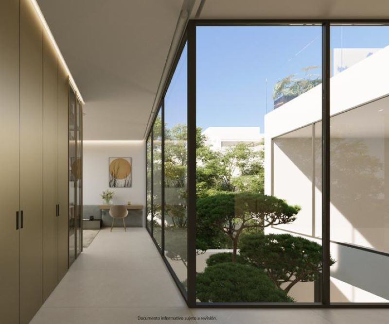 Una de las principales atracciones de estas nuevas villas es el patio interior central que se eleva hacia el cielo desde la planta baja hasta el techo. Actúa como corredor para inundar la propiedad con luz natural.