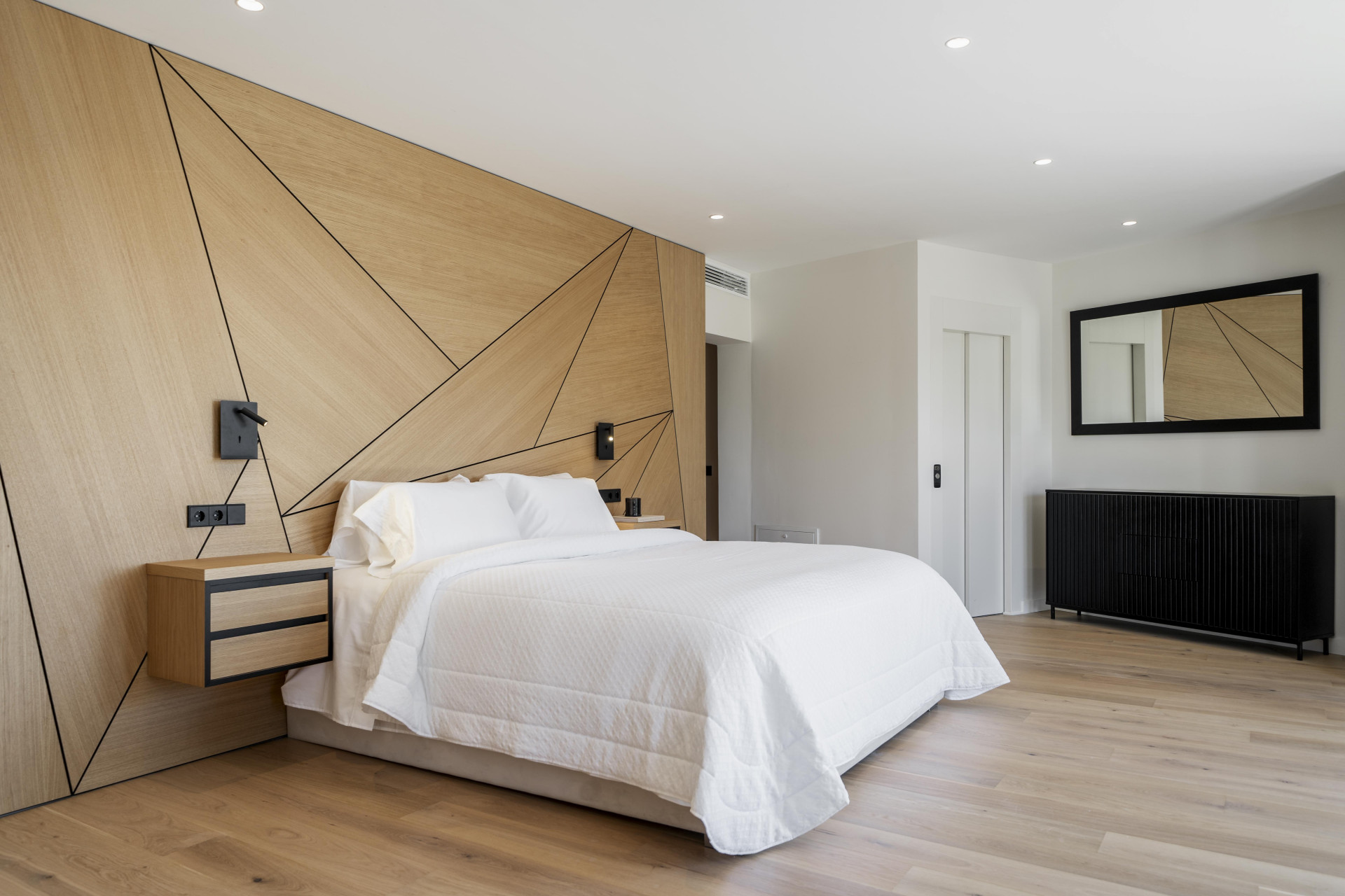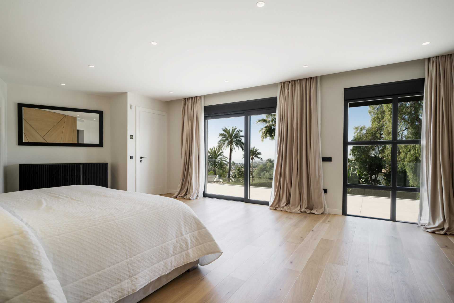 Impresionante villa situada en Nagüeles, en la ladera justo debajo de Sierra Blanca, esta excepcional villa de cinco dormitorios cuenta con inmensos espacios de vida, sol todo el día y impresionantes vistas al mar, incluyendo Gibraltar. A pocos minutos de las mejores escuelas, de la Milla de Oro, de restaurantes finos y de la playa, su orientación orientada hacia el sur garantiza una luz natural y vistas panorámicas. La gran entrada se abre a un amplio hall que se conecta a un gran aseo de invitados, la sala de estar de planta abierta con chimenea de etanol, zona de comedor, y una cocina equipada de Gaggenau con isla. Ventanas de suelo a techo conducen a una generosa terraza con cocina exterior, salón, barbacoa y escaleras a la piscina, solárium, y jardín ajardinado con aguacate, limón y mangos, todos con vistas al mar. Un cuarto de lavandería añade comodidad. En la planta principal, un pasillo conduce a tres dormitorios (uno en suite con walk-in closet y baño completo) y un baño adicional, todos con jardín, piscina y vistas al mar. Arriba, toda la planta superior es una suite principal con dos baños, un amplio armario empotrado en cristal y una terraza privada frente al Mediterráneo. Debajo de la piscina, un apartamento independiente incluye un dormitorio, baño y cocina, ideal para huéspedes o personal. Otras características incluyen garaje, aparcamiento extra dentro de la parcela cerrada, gimnasio, bodega y baño con acceso independiente.