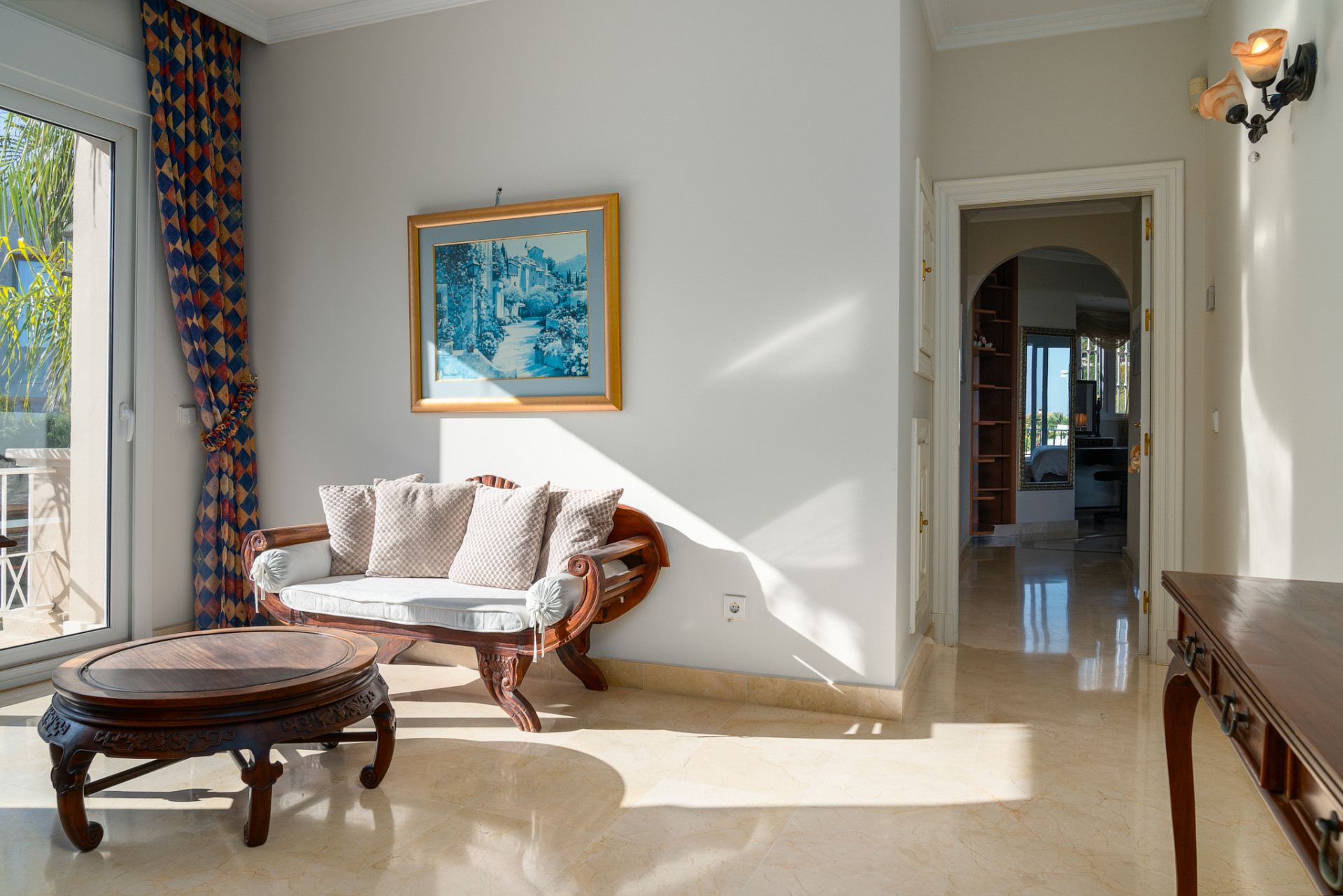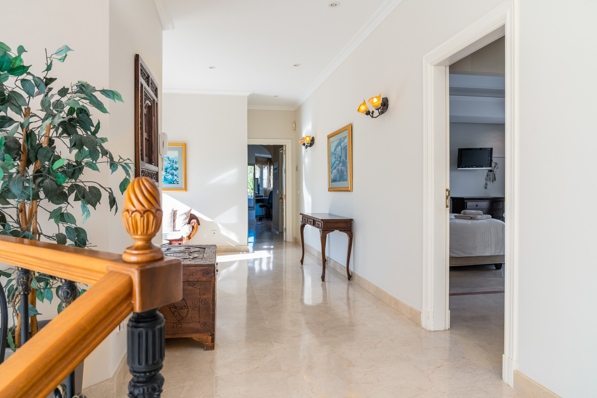 Hermosa villa situada en el corazón de Nueva Andalucía, esta impresionante mansión de lujo es realmente una vista para contemplar. La villa cuenta con siete dormitorios y ocho baños, con cinco en suite. La propiedad ofrece impresionantes vistas panorámicas, que se extienden desde el famoso Valle del Golf a las orillas distantes del Mar Mediterráneo, África y más allá. Es un testimonio de la belleza arquitectónica andaluza tradicional. Al entrar, el gran vestíbulo proporciona una visión de lo que viene, lo que conduce a un amplio salón adornado con puertas correderas de piso a techo. Estas zonas de estar al aire libre, comedor y barbacoa, lo que lo convierte en un escenario ideal para la relajación, el entretenimiento y el remojo en el sol andaluz. Añadiendo al encanto exterior es una gran piscina, acentuada por una fuente y ambientada entre jardines maduros y espeluznantes. Funcionalidad cumple con el lujo en la cocina de diseño ergonómico de la mansión, equipada con electrodomésticos de alto nivel y armarios personalizados. Más allá de la cocina, la mansión revela un comedor formal, cine privado, sala familiar y un gimnasio bien equipado. Las habitaciones son un remanso de confort – espacioso, de alto techo, y cada una con baños en-suite. La suite principal, junto con dos dormitorios en la planta superior, vienen con el lujo añadido de vestidores privados y amplias terrazas que ofrecen vistas panorámicas incomparables. Además, la practicidad de un lavadero en el sótano, completo con un chute de servicio, permite la entrega directa de la ropa desde la planta superior. La propiedad no sólo se limita a la casa principal. También alberga dos apartamentos totalmente equipados y independientes. El primero, situado en un anexo independiente, cuenta con una cocina contemporánea que se abre a una terraza con vistas al jardín, una acogedora sala de estar, y una suite principal equipada con un baño en suite y vestidor. Este anexo está situado estratégicamente sobre el garaje cerrado que puede albergar dos o tres coches y un buggy de golf. El segundo apartamento, ideal para una familia ampliada o personal, es un espacio de dos dormitorios situado en el sótano de la casa principal. Ofrece salón, baño y cocina funcional.
