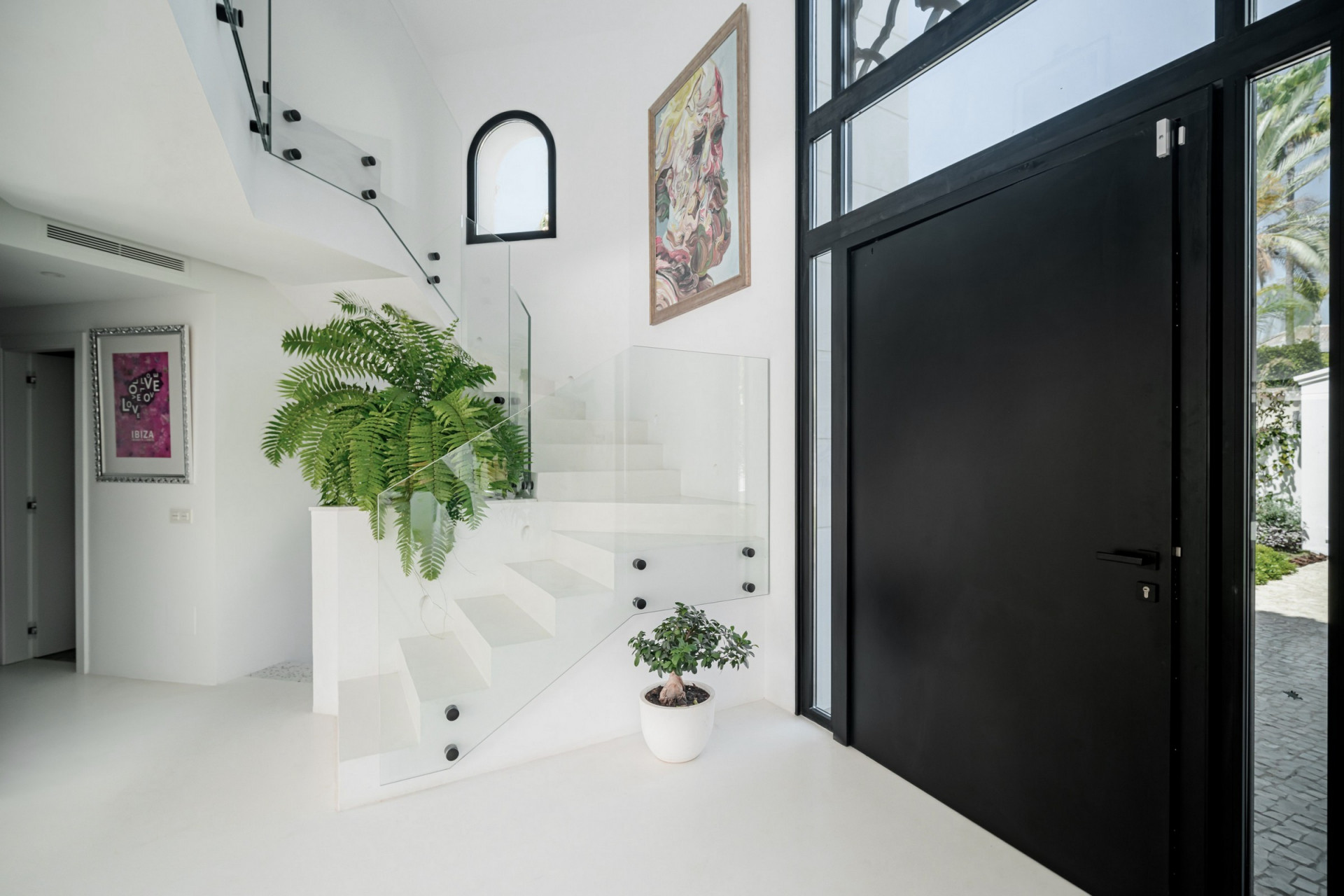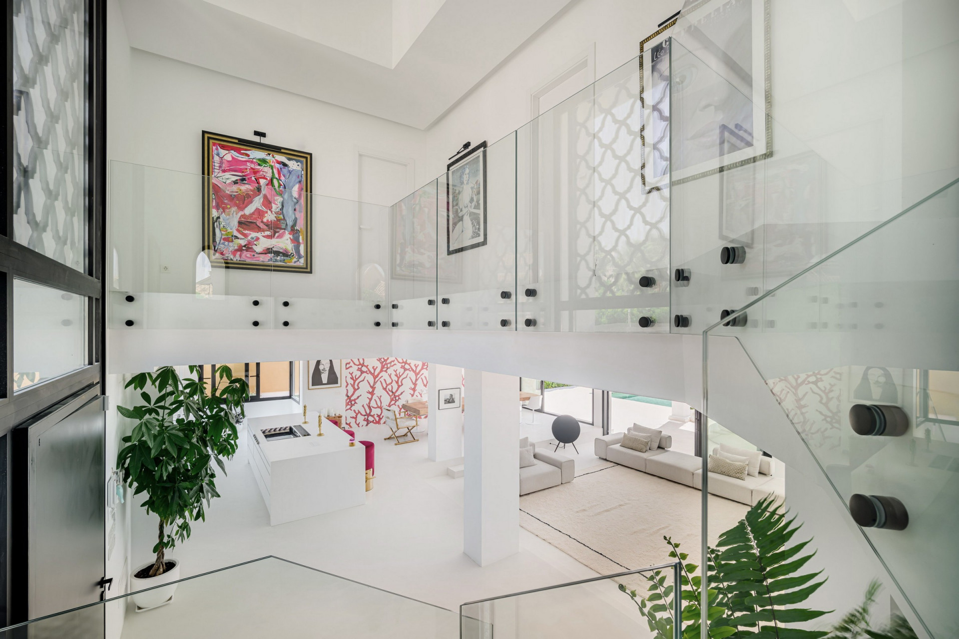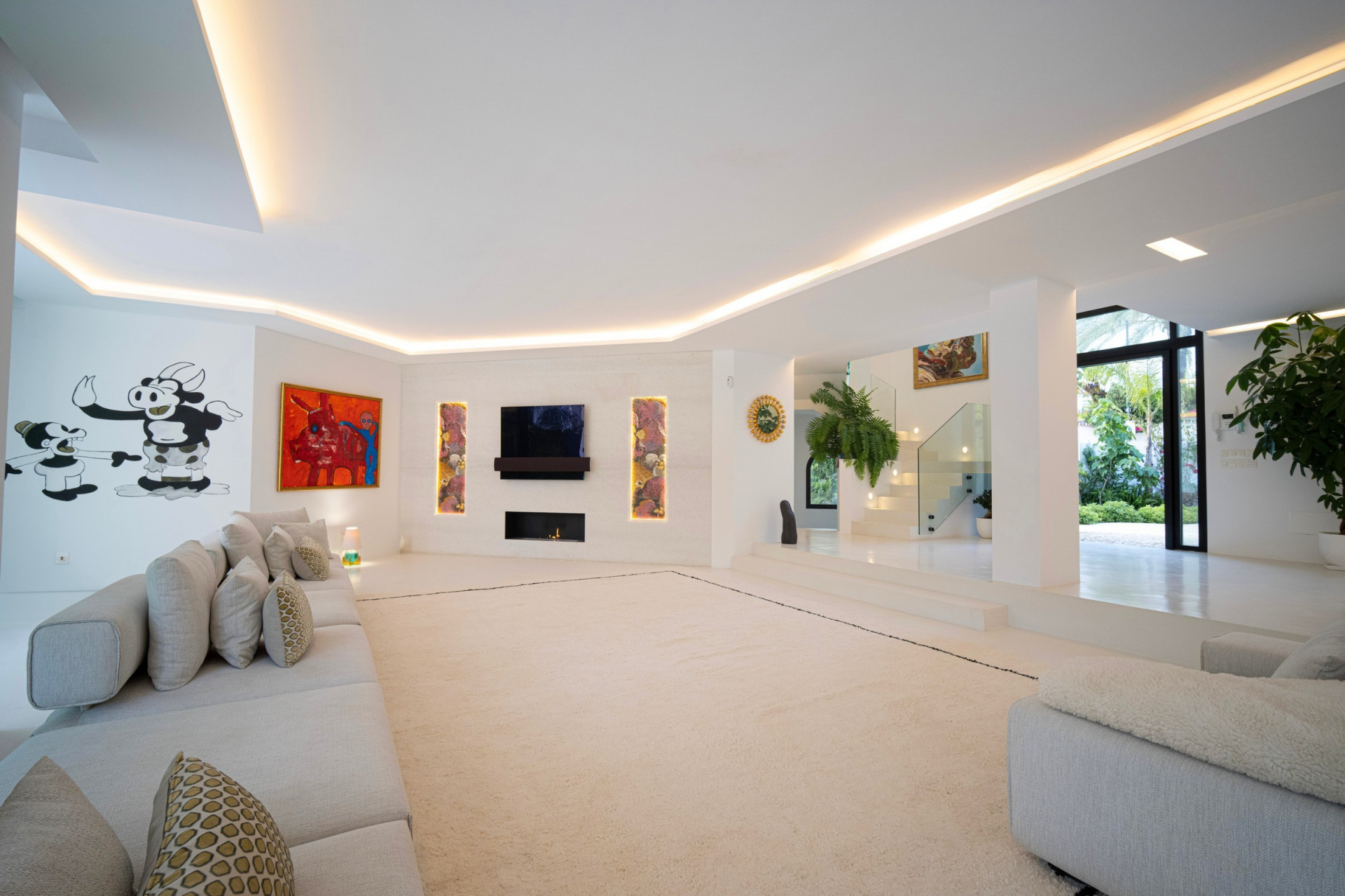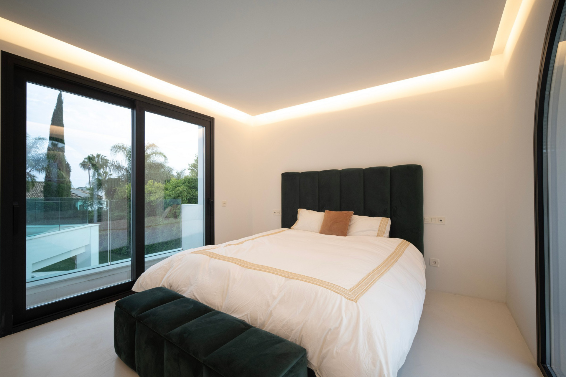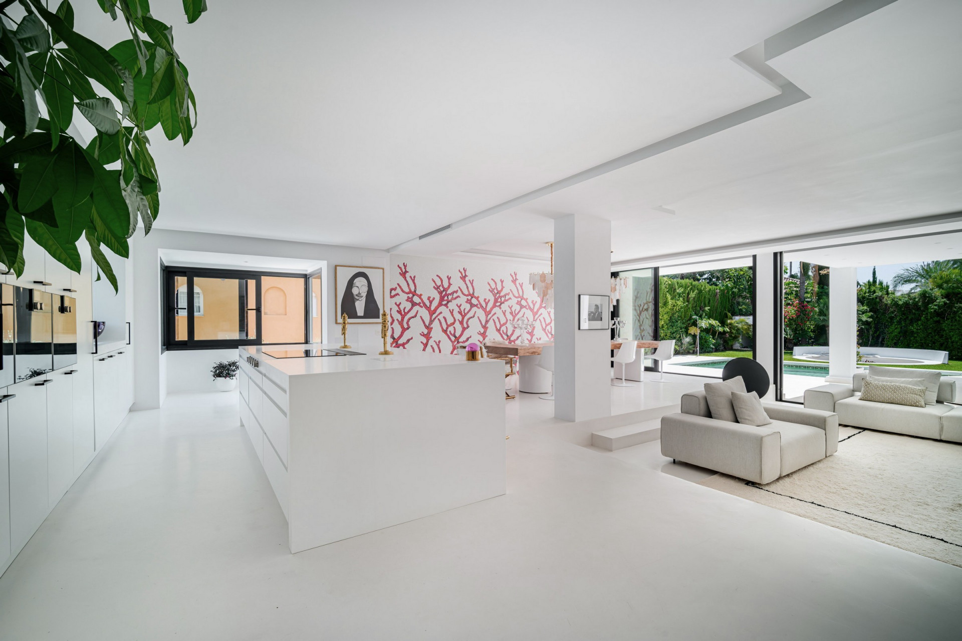 Totalmente reformado de cuatro dormitorios, villa orientada al sur en la comunidad cerrada de Parcelas del Golf, esta lujosa casa está enclavada justo en el corazón la ubicación más exclusiva, con el 3 famoso campo de golf de Las Brisas, Los Naranjos y Aloha dentro de un corto paseo en buggy, así como estar cerca de todas las comodidades de ocio. Construido en una parcela de esquina dentro de la comunidad, la primera impresión de esta casa es el maravilloso detalle arabesco adornando las puertas delanteras y la ventana de doble altura que se coloca en la fachada frontal de la villa, con acceso al carport a través de puertas automatizadas. Una cocina abierta muy funcional pero muy elegante ha sido diseñada empleando lo mejor en electrodomésticos con maravillosa atención al detalle. Desde aquí se pasa por alto el gran comedor elevado, que conduce a la zona de salón de nivel inferior. Integrablemente, esta residencia de plan abierto es perfecta para que una familia disfrute o para las mejores reuniones y fiestas sociales. En la planta baja hay un dormitorio completo con baño en suite, que incorpora un pasillo equipado con elegantes armarios de madera; y acceso directo al jardín. Arriba encontramos otros tres dormitorios. La suite principal es, por supuesto, la más impresionante, accediendo al impresionante balcón cubierto que abarca la anchura de esta villa. Además hay un potencial maravilloso y sin explotar con la parte cubierta de esta terraza. Situado con auténtico techo de madera, la zona podría ser designada para relajarse, gimnasio al aire libre o cualquier otro uso. En el exterior, descubra su oasis privado con una gran piscina de agua salada, salón hundido y una acogedora chimenea, ideal para relajarse tardes o elegantes reuniones nocturnas. Los exuberantes jardines y la zona privada de barbacoa transforman la vida al aire libre en un estilo de vida, no sólo una opción. Esta villa está inmaculadamente diseñada y terminada artísticamente, con excelentes opciones de color que complementan el paladar de otro modo neutral. Sin embargo, como uno esperaría con cualquier hogar de lujo, la infraestructura oculta que hace de esta propiedad una gran oportunidad no ha sido delineada. Los paneles solares proporcionan energía sustancial, proporcionando eficiencia para el aire acondicionado independiente en cada habitación, incluyendo el sótano. Dentro del nivel del sótano se encuentra el espacio reformado con instalaciones de electricidad y agua, listo para ser transformado en un dormitorio más, o una sala de cine, gimnasio, spa. Siente la calidez debajo de tus pies con calefacción por suelo radiante en toda la villa. La seguridad es primordial, con un guardia de 24 horas y vigilancia avanzada que garantiza la paz mental en esta exclusiva comunidad cerrada. Propiedad totalmente reformada con doble drenaje y sistema de bombeo para proteger la villa contra la lluvia pesada o el exceso de agua. El agua de lluvia se bombea de los drenajes hasta el jardín para ser reciclado.