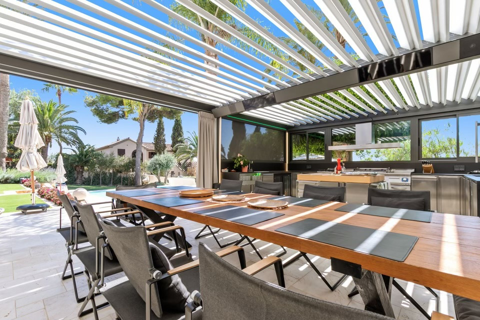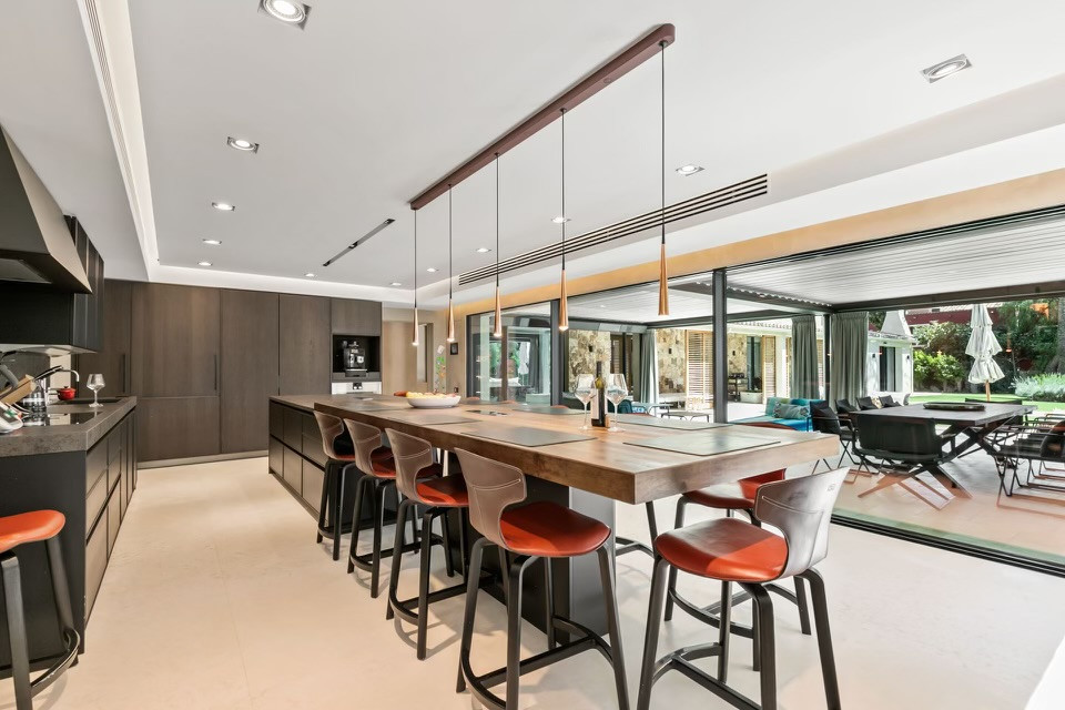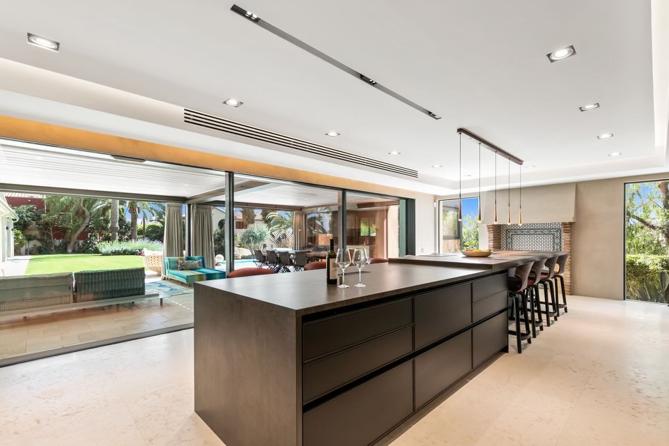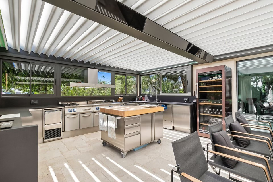 Esta villa meticulosamente renovada exuda el lujo, mezclando el estilo andaluz moderno con los acabados de la más alta calidad en todo. Cuenta con seis amplios dormitorios en suite, incluyendo una casa de huéspedes privada y una suite de invitados de planta superior con una entrada independiente, más un garaje de dos coches y un carport de seis coches en una parcela de 2.000 m2. Amplias zonas de estar de planta abierta muestran una cocina de última generación con electrodomésticos Gaggenau, enfriadores de vino, una mesa central para diez, y una gran chimenea, complementada por una sala de juegos infantil, oficina en casa, gimnasio, cocina profesional al aire libre, piscina climatizada, jacuzzi y zonas relajantes. La seguridad y la comodidad son primordiales con una casa de seguridad integrada, sistemas avanzados, audio Sonos, calefacción por suelo radiante, almacenamiento abundante y una suite principal con un walk-in closet, mientras que las características al aire libre incluyen un parque infantil, haciendo de esta villa una propiedad excepcional que debe ser vista para ser plenamente apreciado.