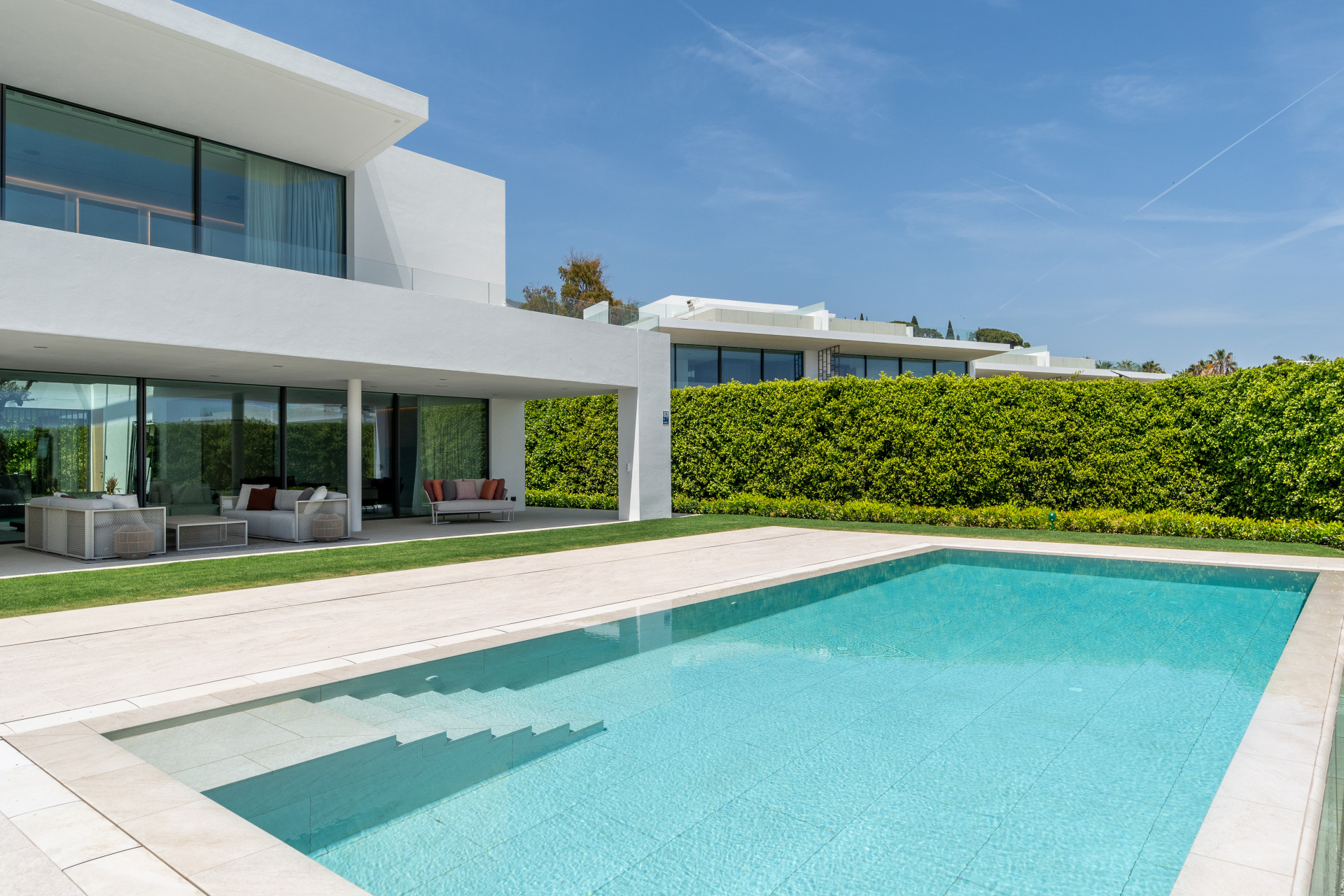 Ubicado en el corazón de la prestigiosa Milla de Oro de Marbella, esta magnífica villa de nueva construcción encarna el pináculo de la arquitectura moderna y el lujo refinado. Situado en Marbella, Málaga, la villa ofrece una fusión única de elegancia y diseño contemporáneo, garantizando un estilo de vida caracterizado por la opulencia y la comodidad. Con una superficie construida sustancial de 1.157 m2 complementada por amplias terrazas de 387.3 m2, esta propiedad ofrece una exquisita experiencia de vida con amplio espacio para la relajación y el entretenimiento.
