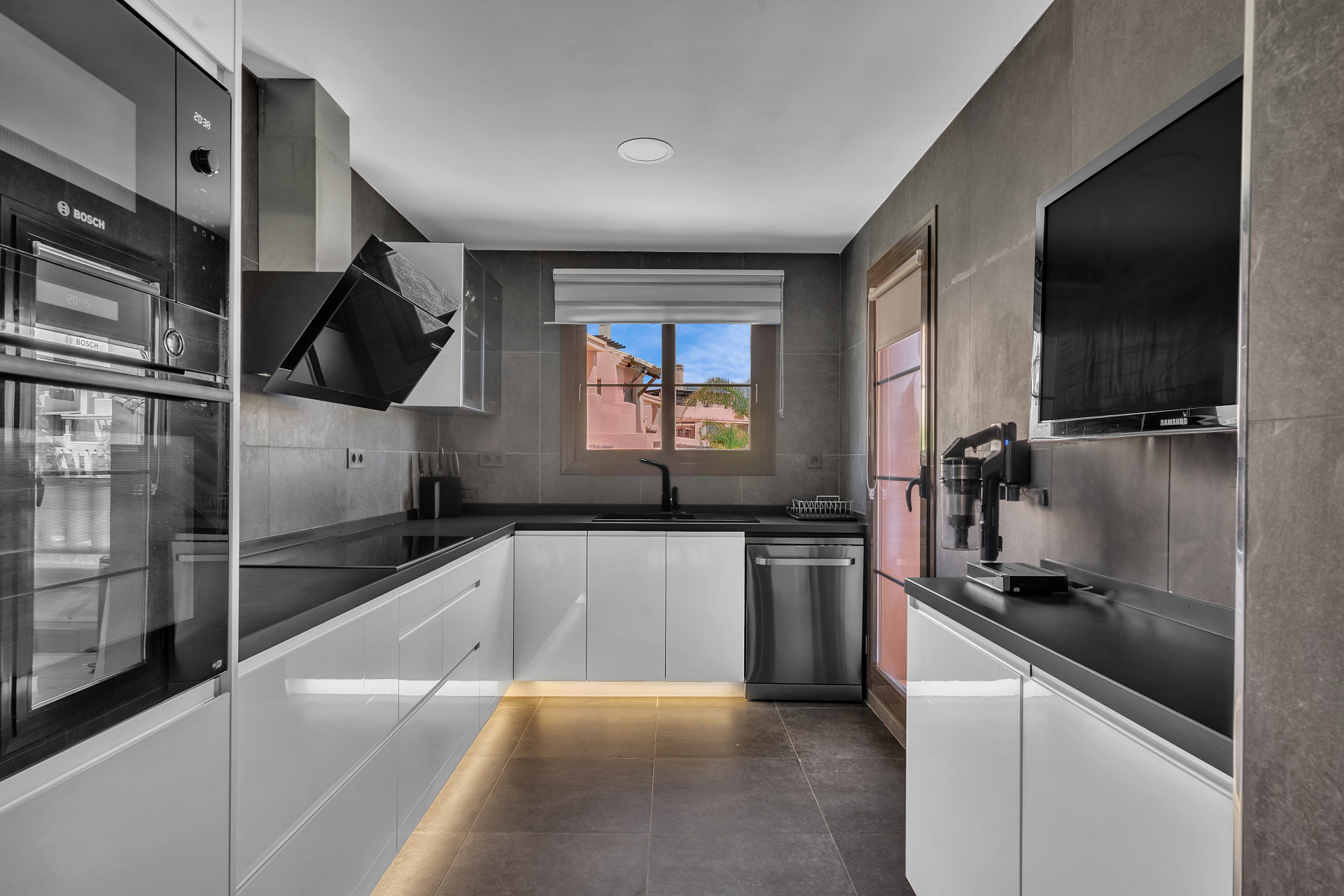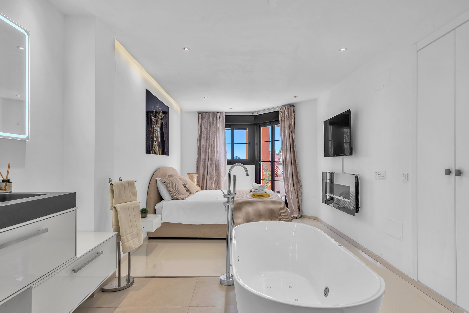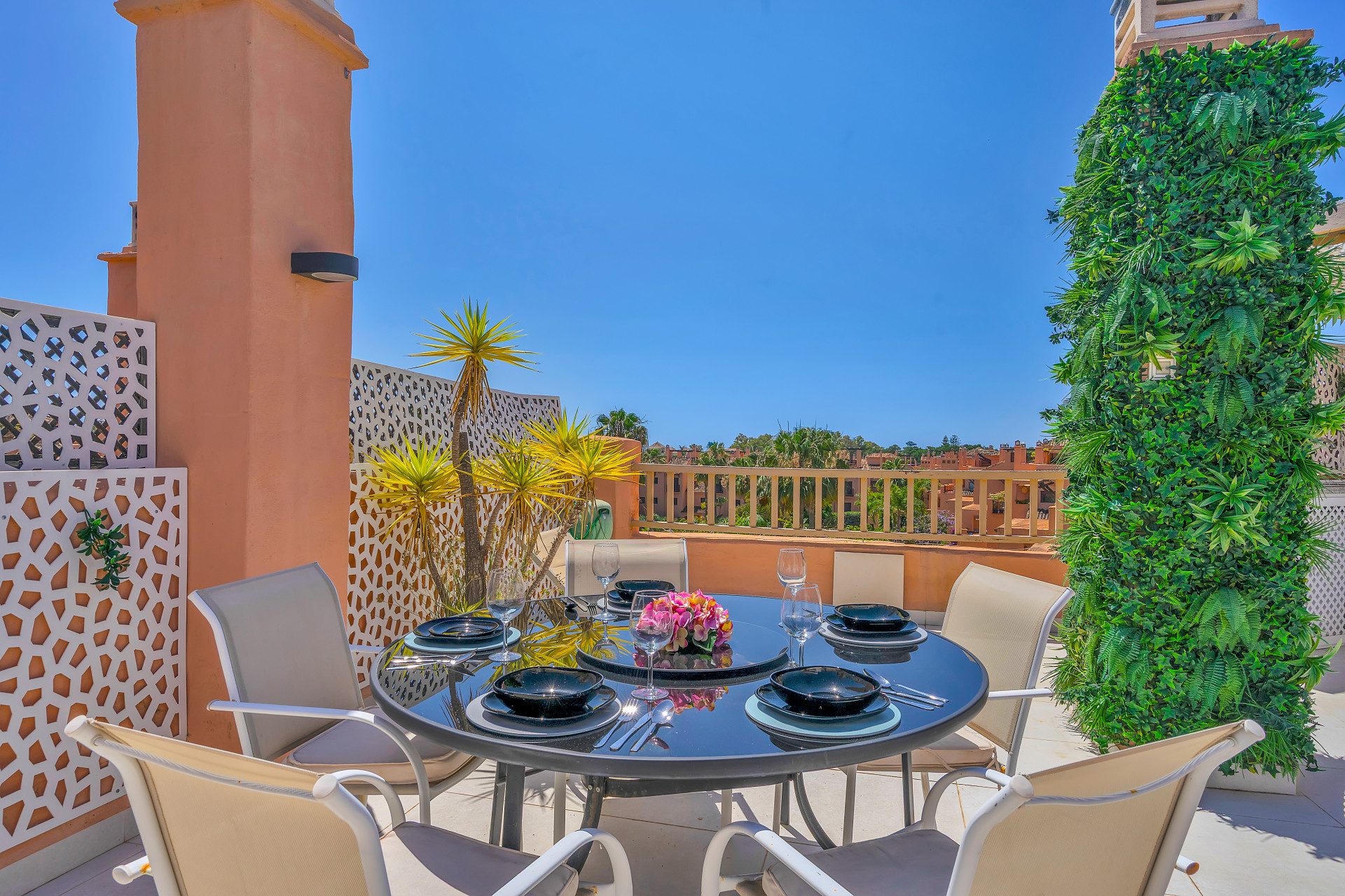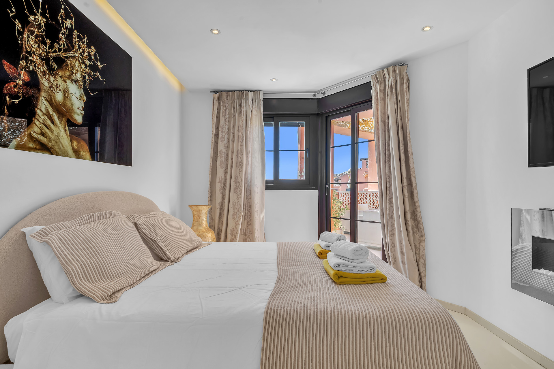 Inside the property, there´s a sleek modern kitchen featuring every appliance one could need, right down to a Nespresso coffee machine. A wonderfully decorated living area leads to a private terrace perfect for a relaxed breakfast or morning coffee. The master bedroom is incredibly spacious and contains an en-suite with an open bathtub, and the additional two bedrooms provide ample space, comfortably accommodating family and guests.