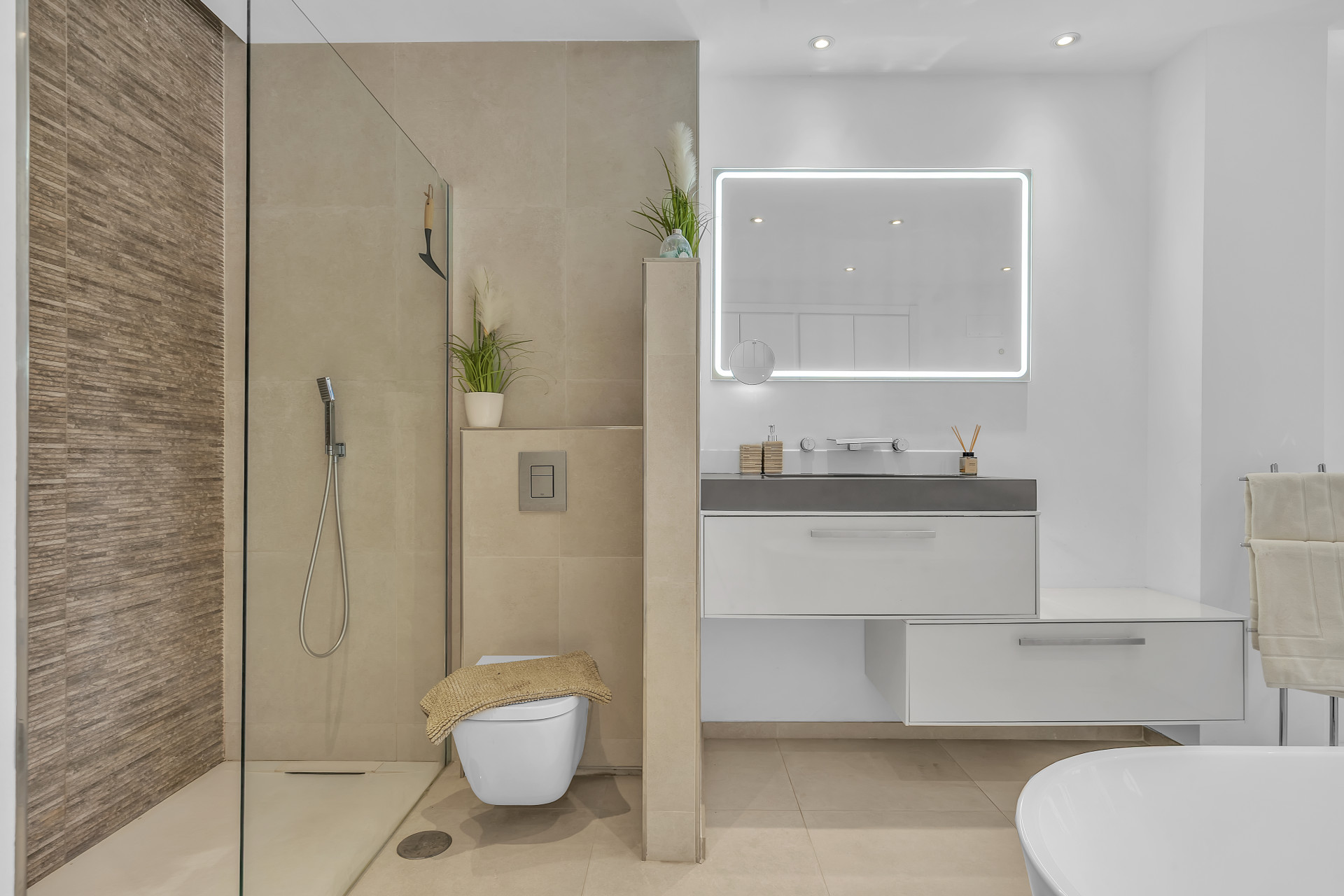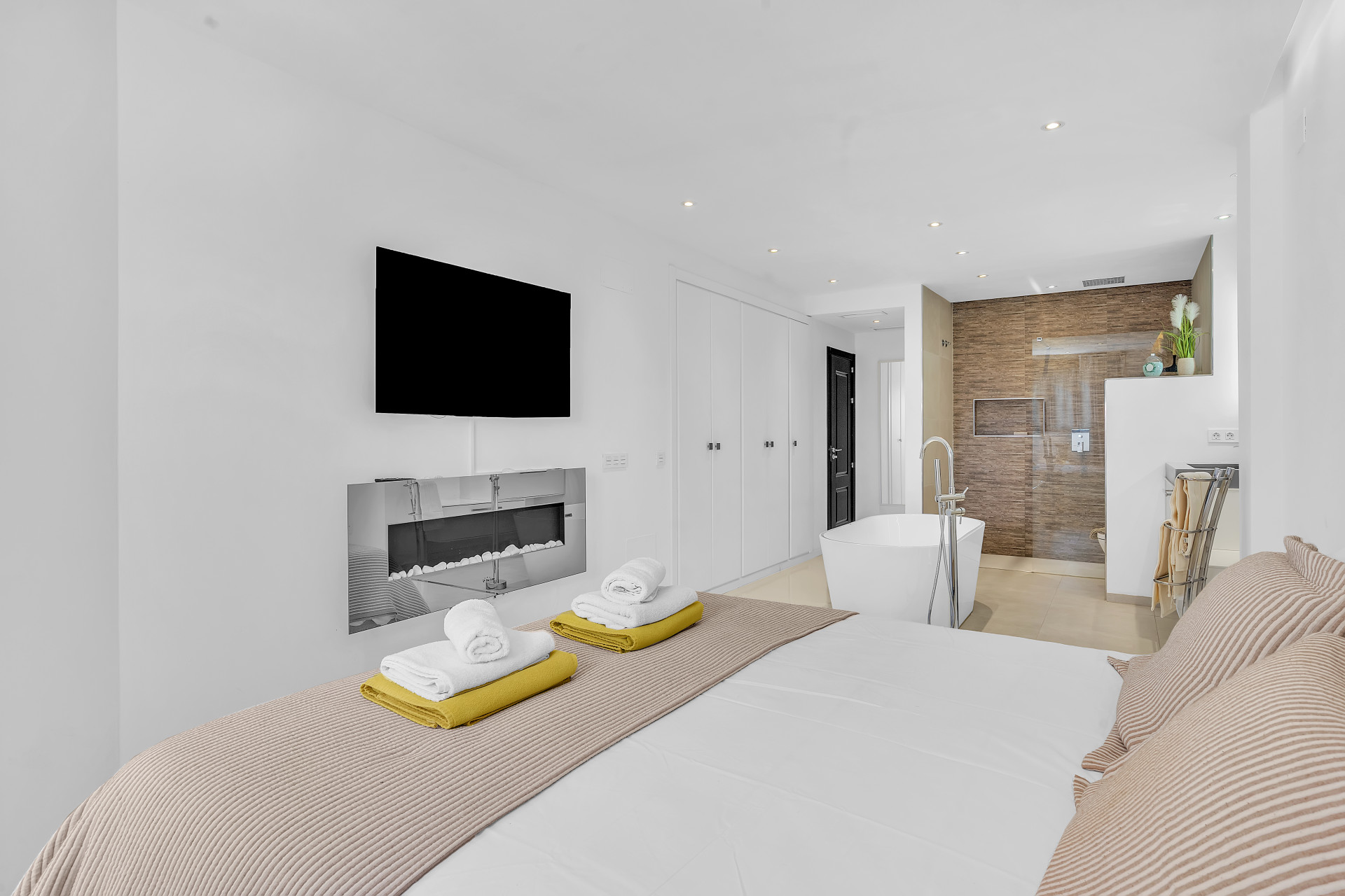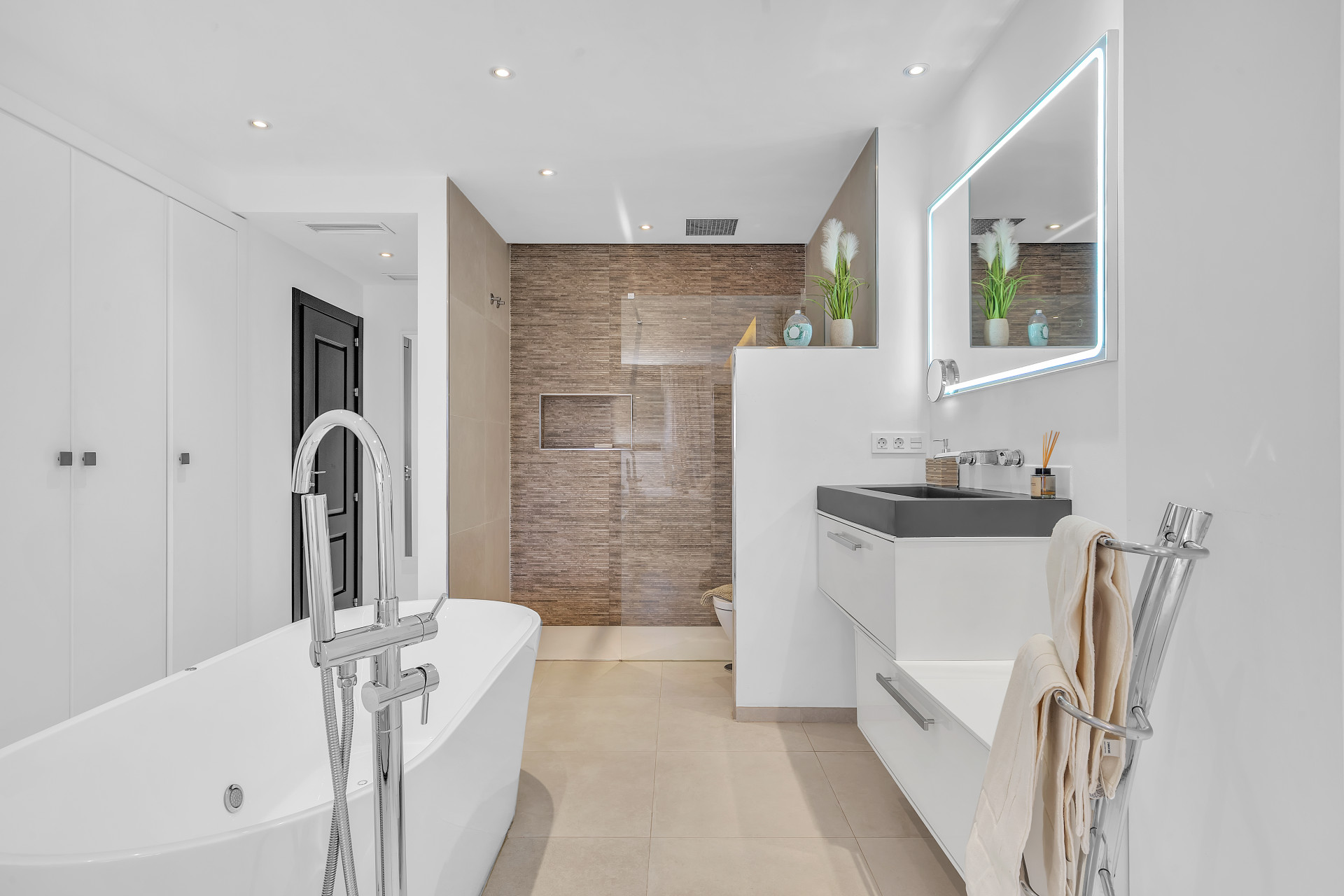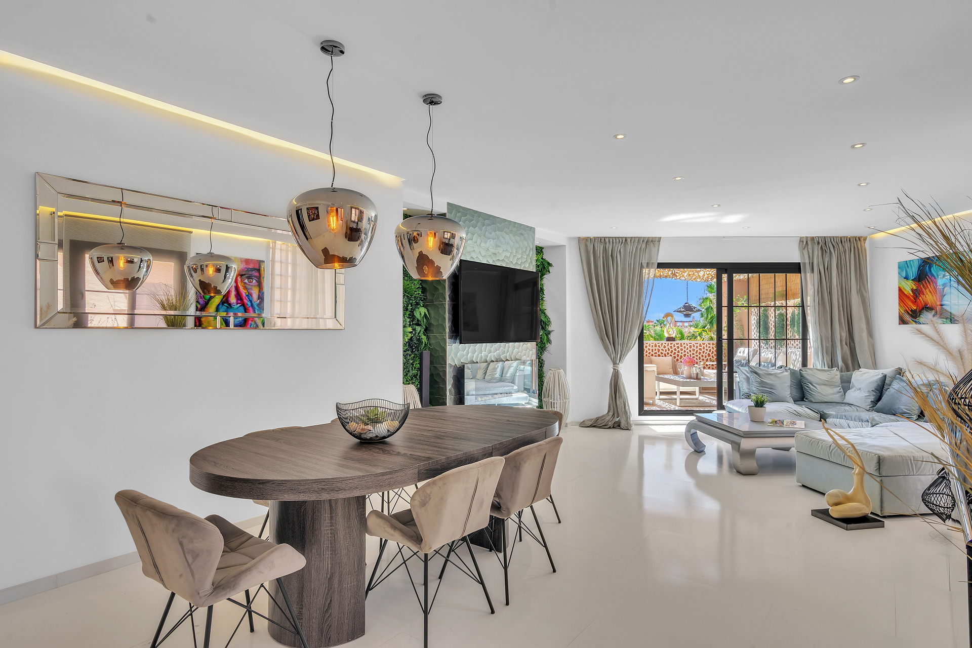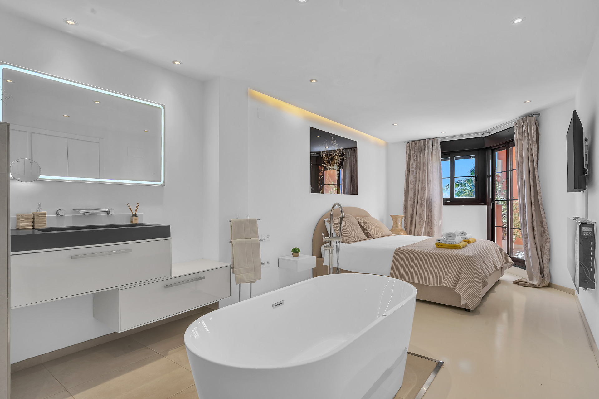 Inside the property, there´s a sleek modern kitchen featuring every appliance one could need, right down to a Nespresso coffee machine. A wonderfully decorated living area leads to a private terrace perfect for a relaxed breakfast or morning coffee. The master bedroom is incredibly spacious and contains an en-suite with an open bathtub, and the additional two bedrooms provide ample space, comfortably accommodating family and guests.
