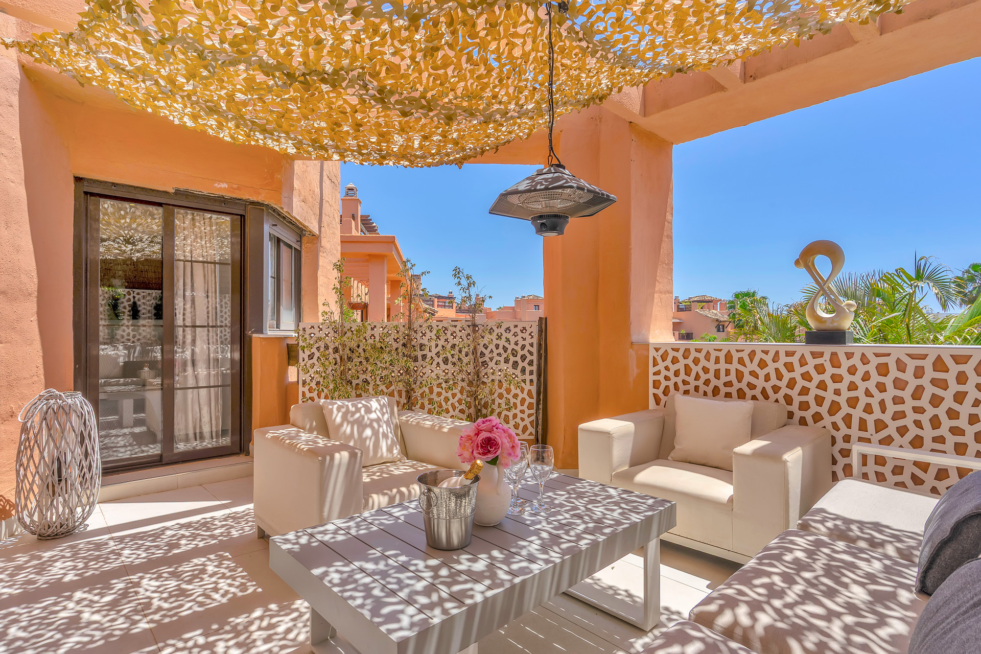 Welcome to Hacienda del Sol, a beautifully maintained urbanisation with six enormous swimming pools, ideal for family vacations by the beach. This modern three-bedroom penthouse features modern decor and a bright, inviting atmosphere, just moments from the sun, sand, and a selection of exceptional restaurants.