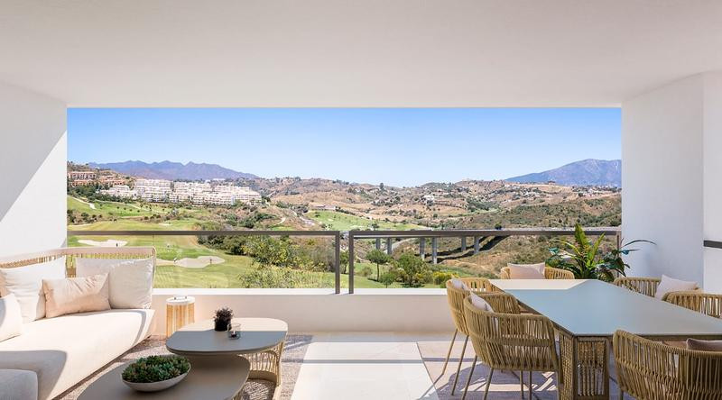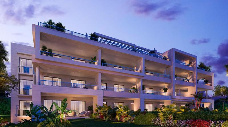 New residential project in Mijas Costa. This private development consists of 54 homes with two and three bedrooms, distributed across three blocks of three floors. The properties include penthouse apartments with large terraces and spectacular views over Calanova Golf.