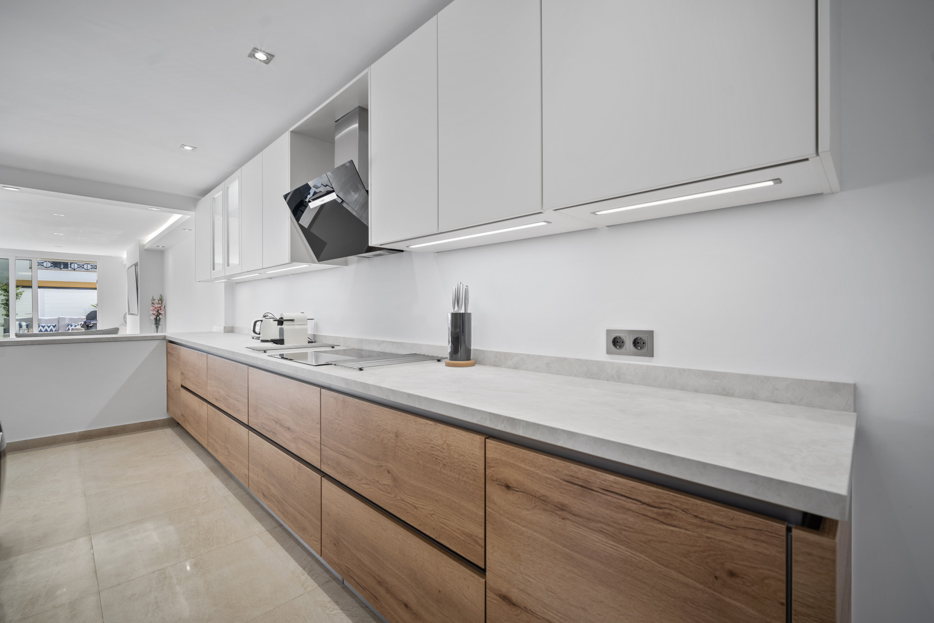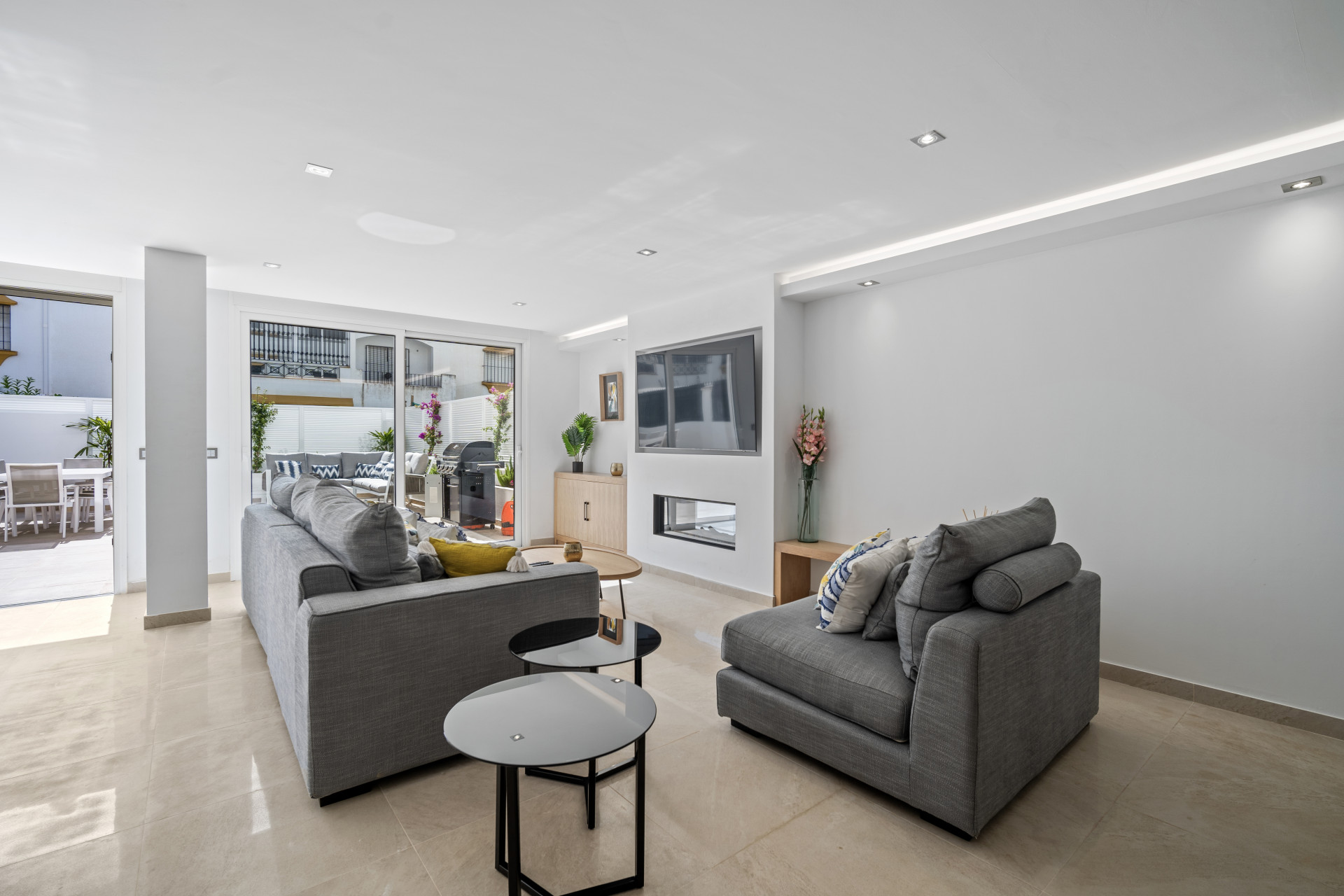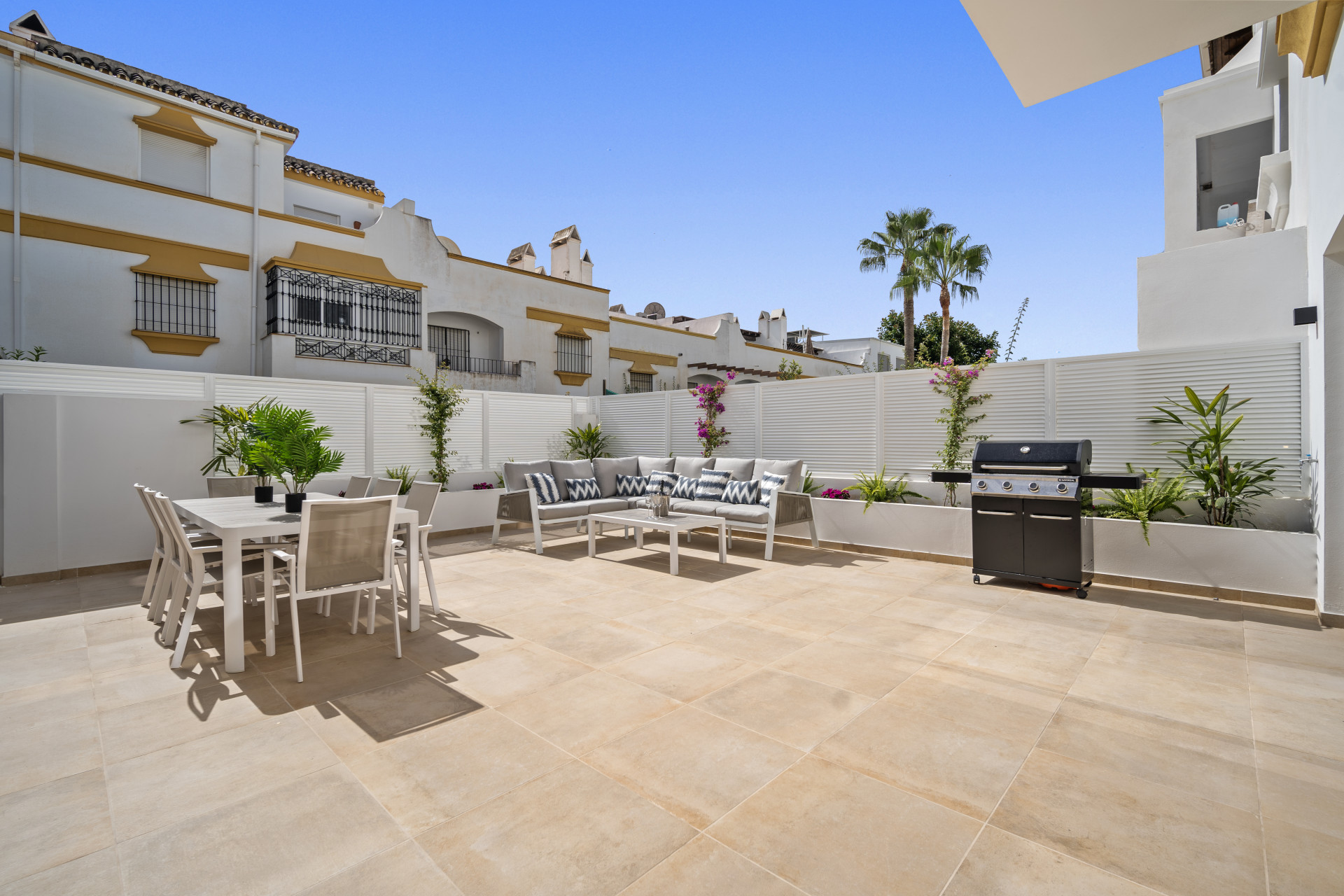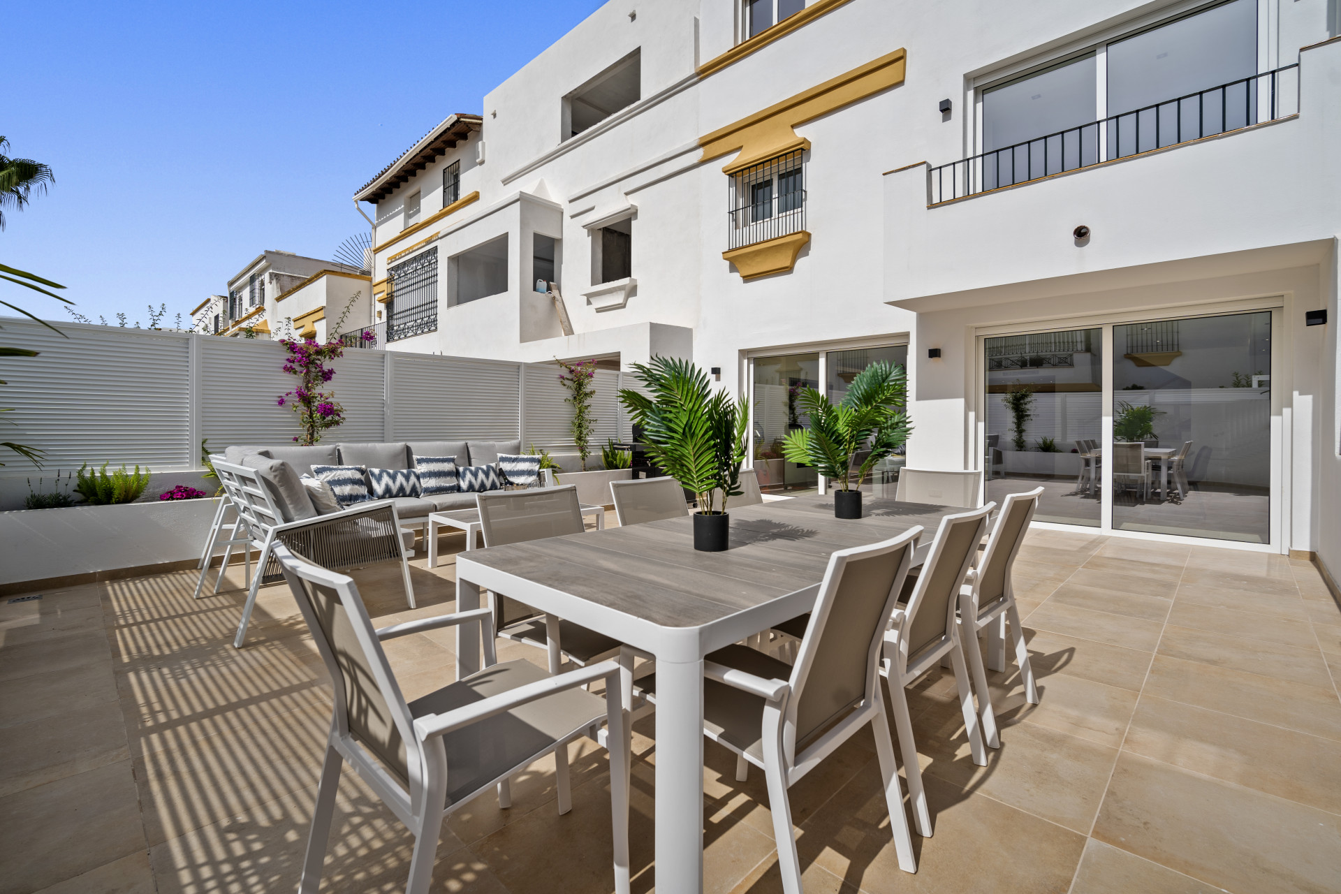 Casa Adriana is a beautiful modern townhouse newly reformed to the highest standards. It sits in a small community called Marbellamar, which borders a golden sandy beach in one of the most exclusive areas in the whole of Europe; Marbella’s famous Golden Mile. Here you can spend warm relaxing days by the sea, or rub shoulders with the rich and famous depending on your mood.