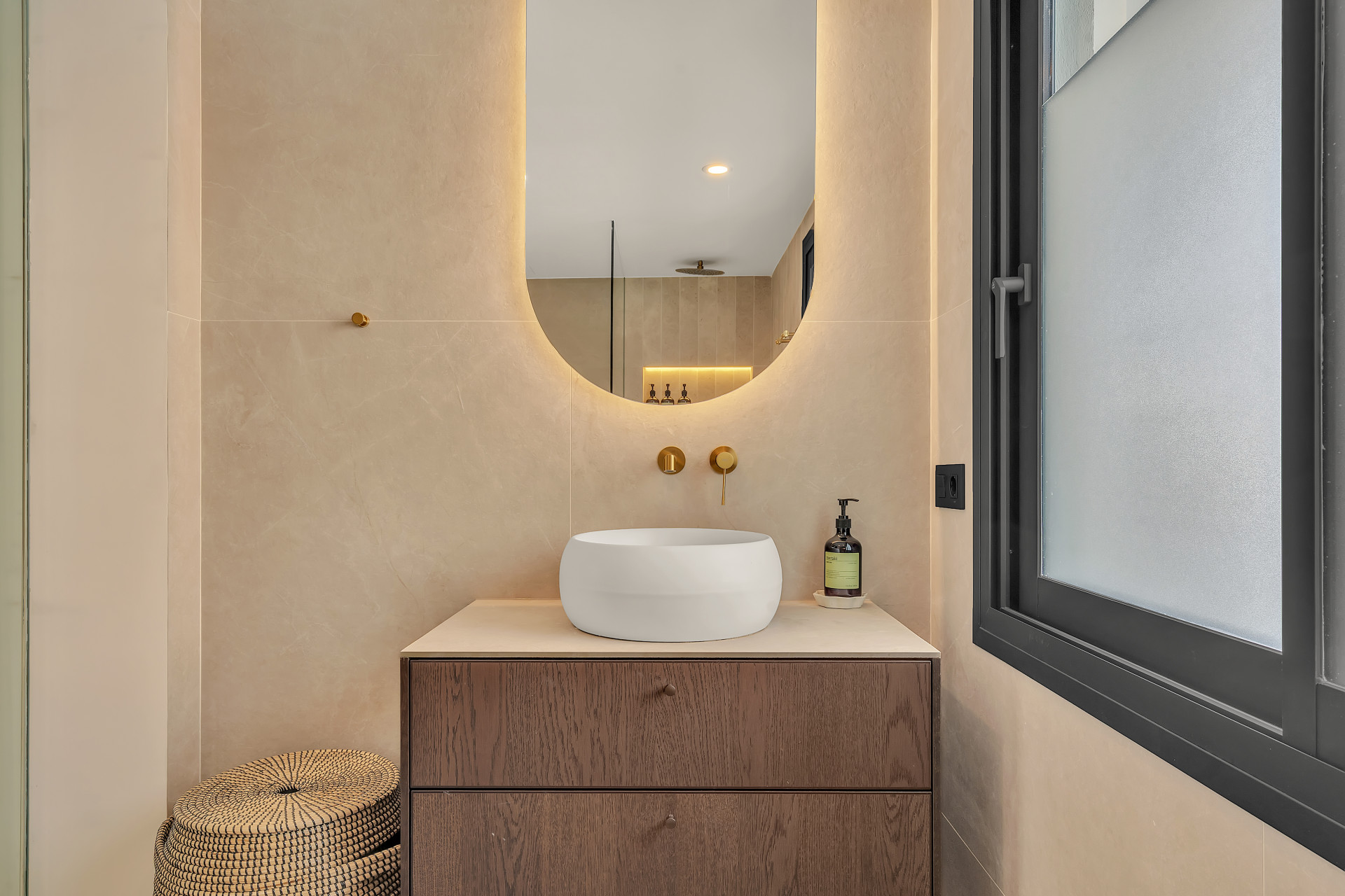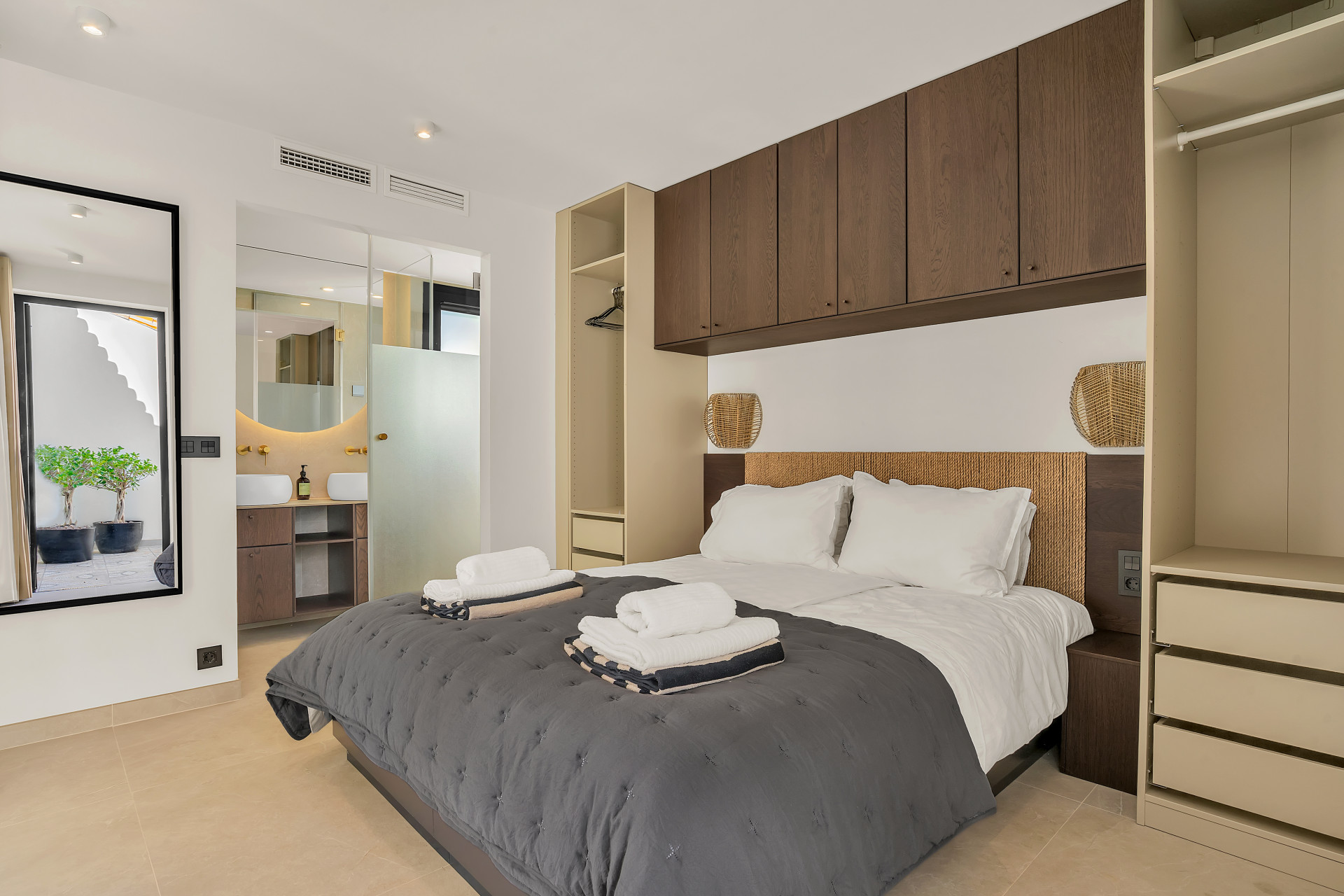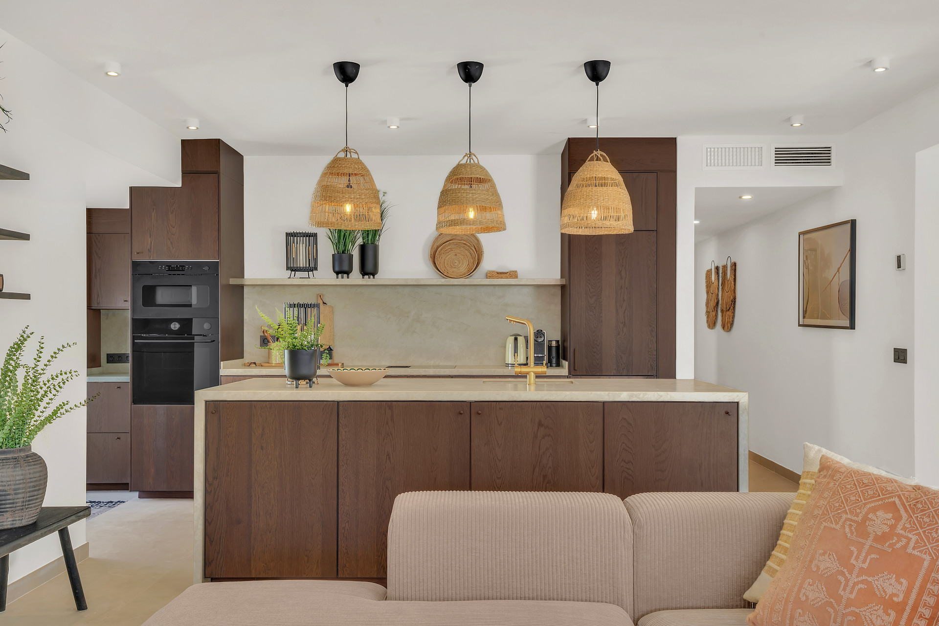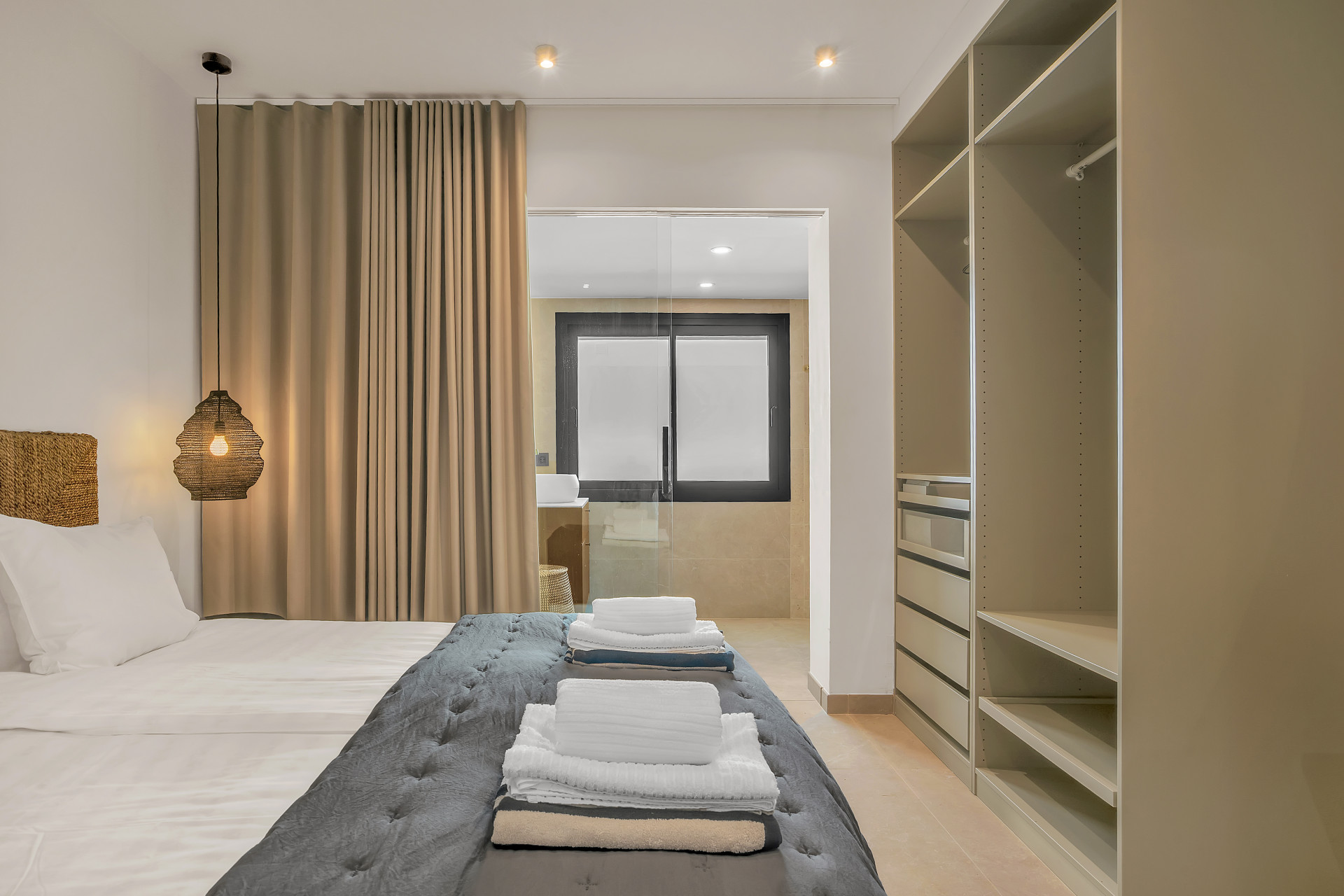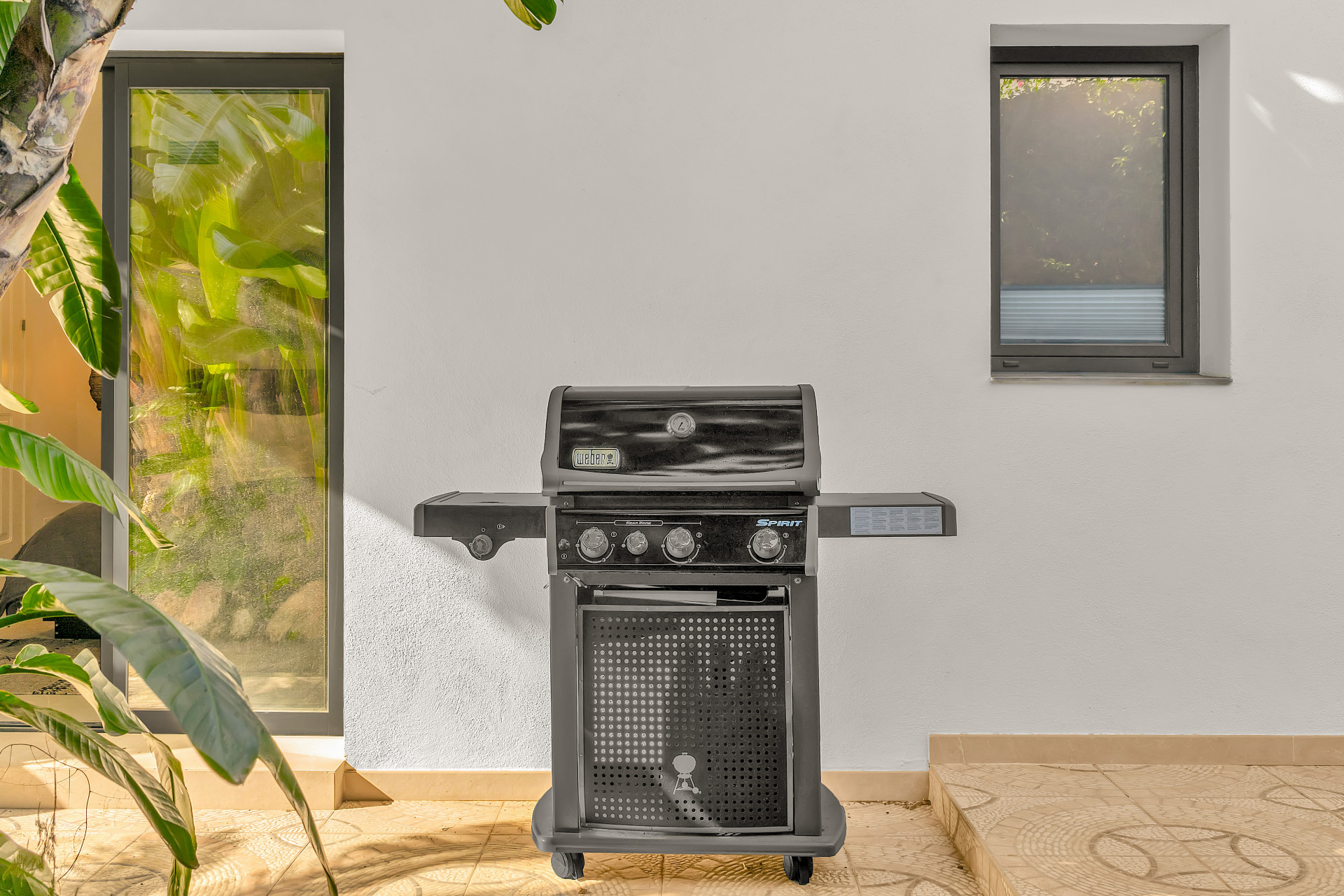 A unique home with contemporary style and a warm, welcoming feel, the villa has been newly furnished and thoughtfully decorated throughout. Fresh interiors, quality finishes, and elegant design details elevate the home while still keeping it practical and inviting for families and groups alike. The open-plan living and dining area is bright and airy, with large windows filling the space with natural light. Double doors connect this space to the garden and pool, creating a seamless indoor–outdoor flow ideal for Mediterranean living. The modern kitchen is fully equipped with induction cooking and state-of-the-art appliances, offering everything needed for preparing meals at home.