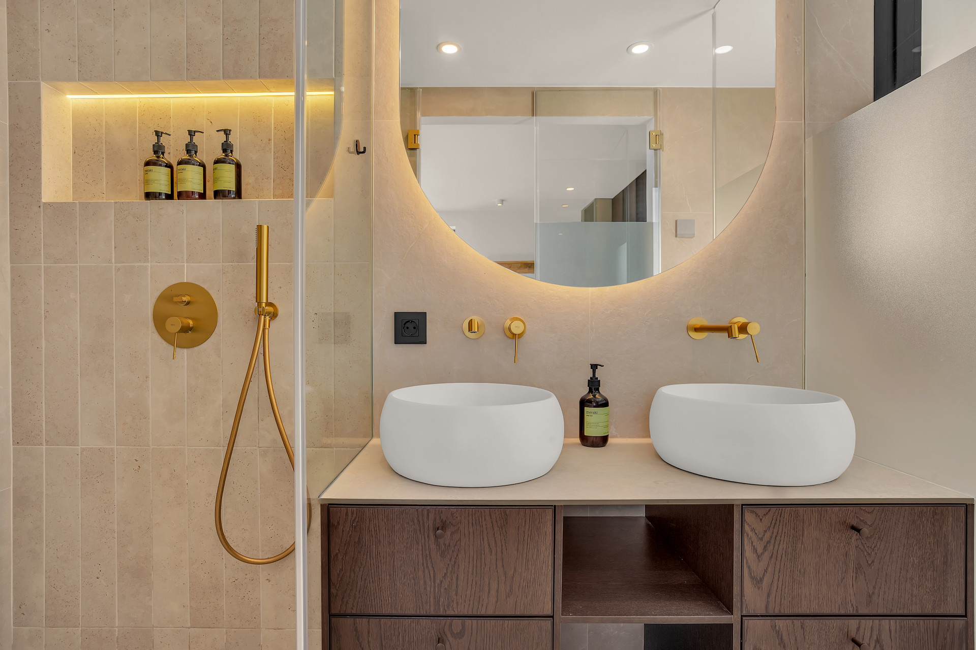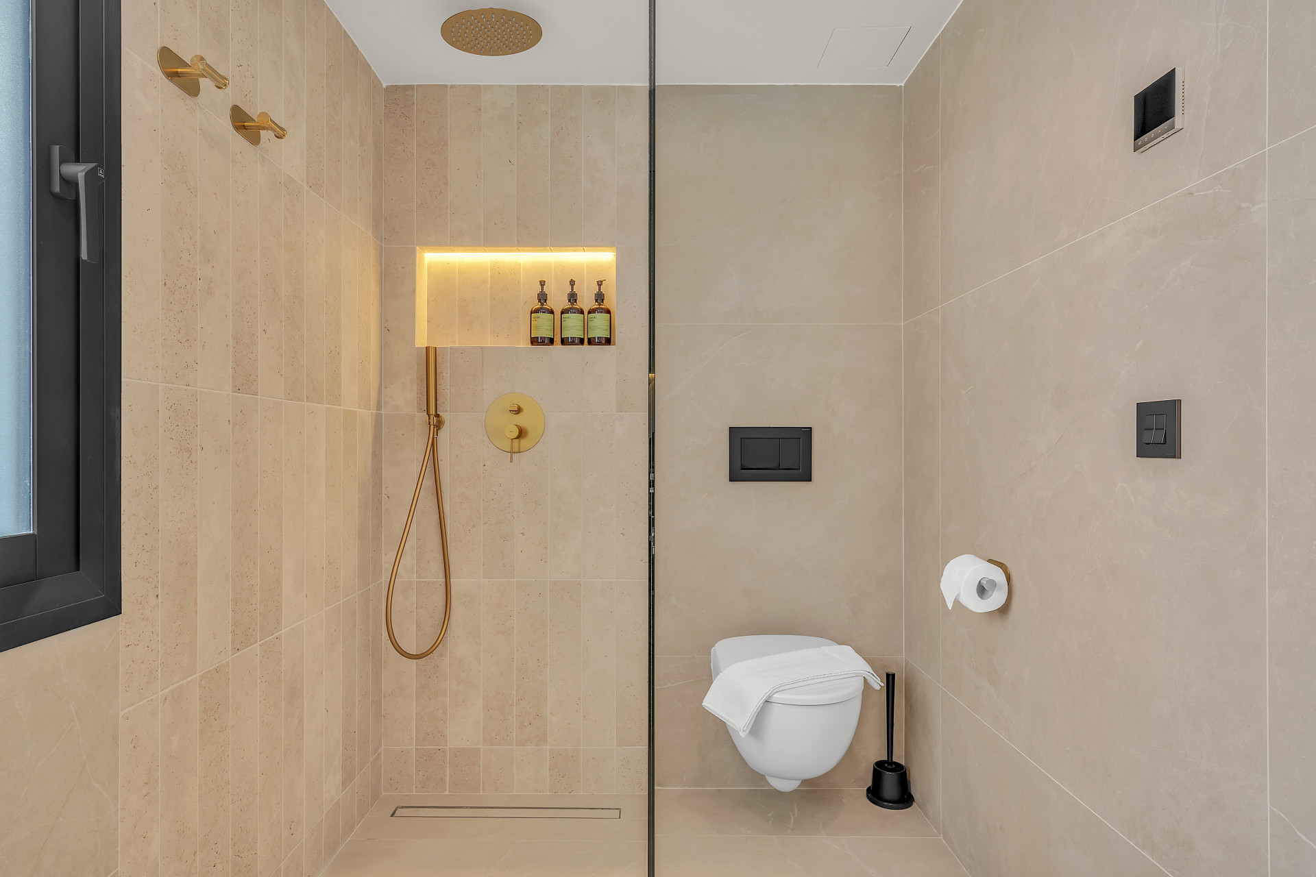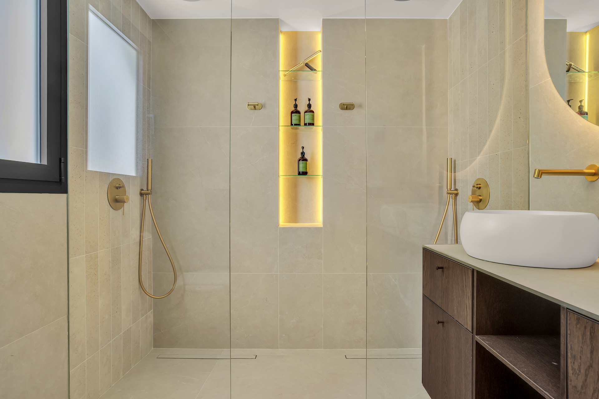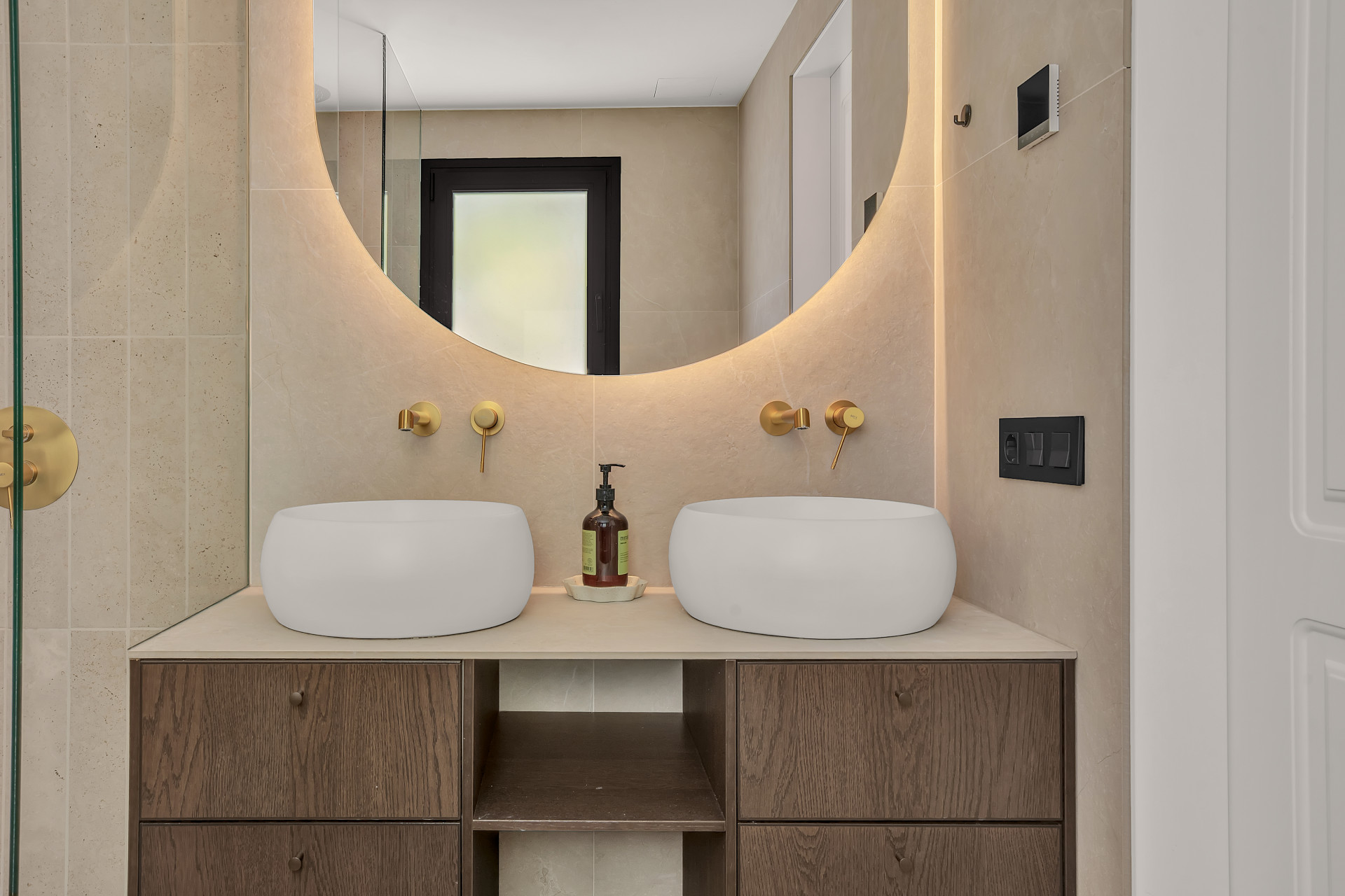 A unique home with contemporary style and a warm, welcoming feel, the villa has been newly furnished and thoughtfully decorated throughout. Fresh interiors, quality finishes, and elegant design details elevate the home while still keeping it practical and inviting for families and groups alike. The open-plan living and dining area is bright and airy, with large windows filling the space with natural light. Double doors connect this space to the garden and pool, creating a seamless indoor–outdoor flow ideal for Mediterranean living. The modern kitchen is fully equipped with induction cooking and state-of-the-art appliances, offering everything needed for preparing meals at home.