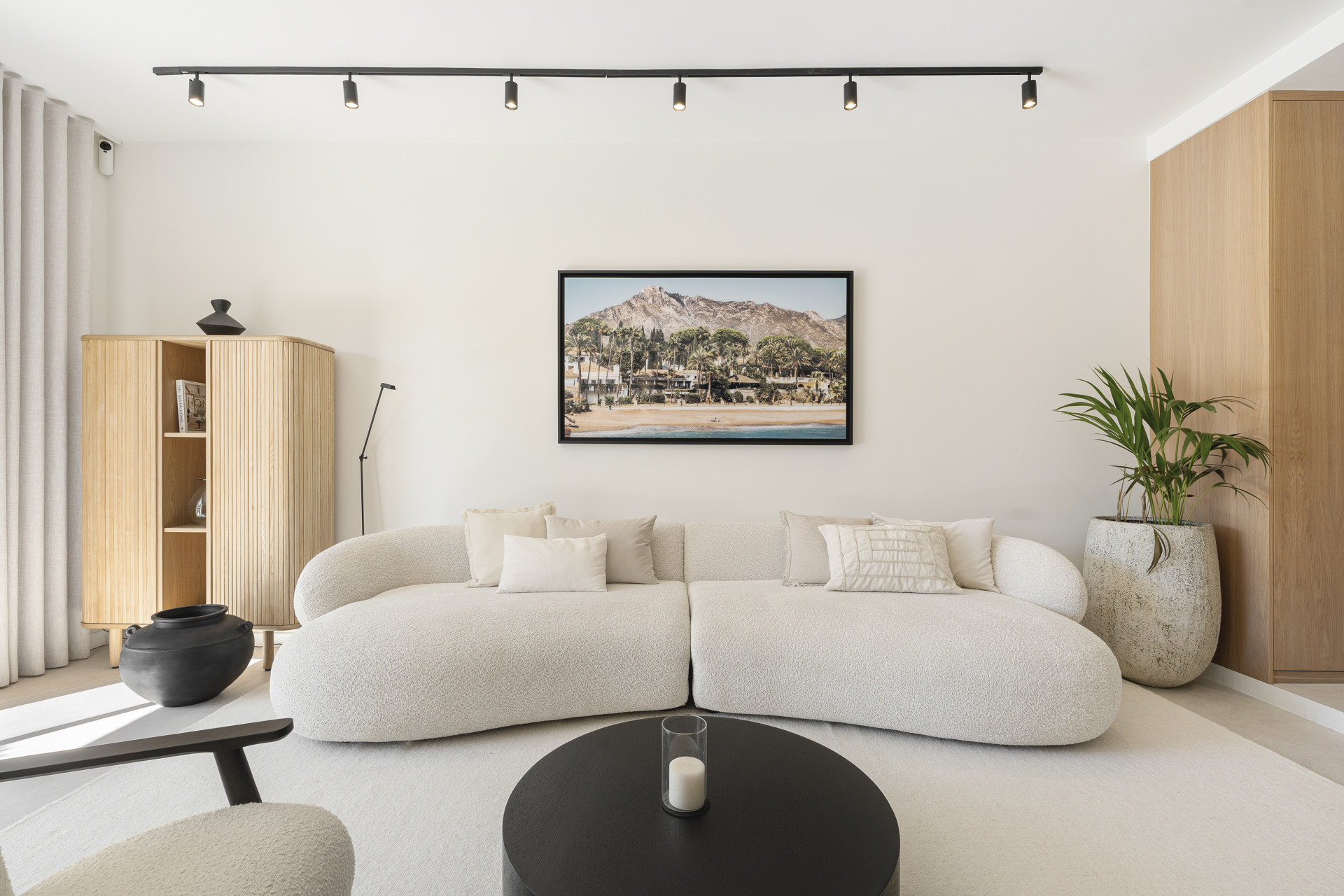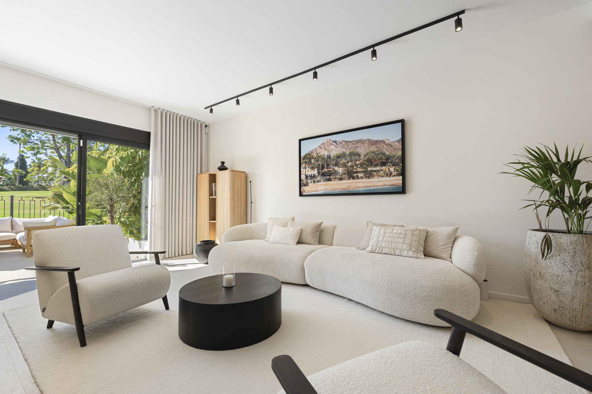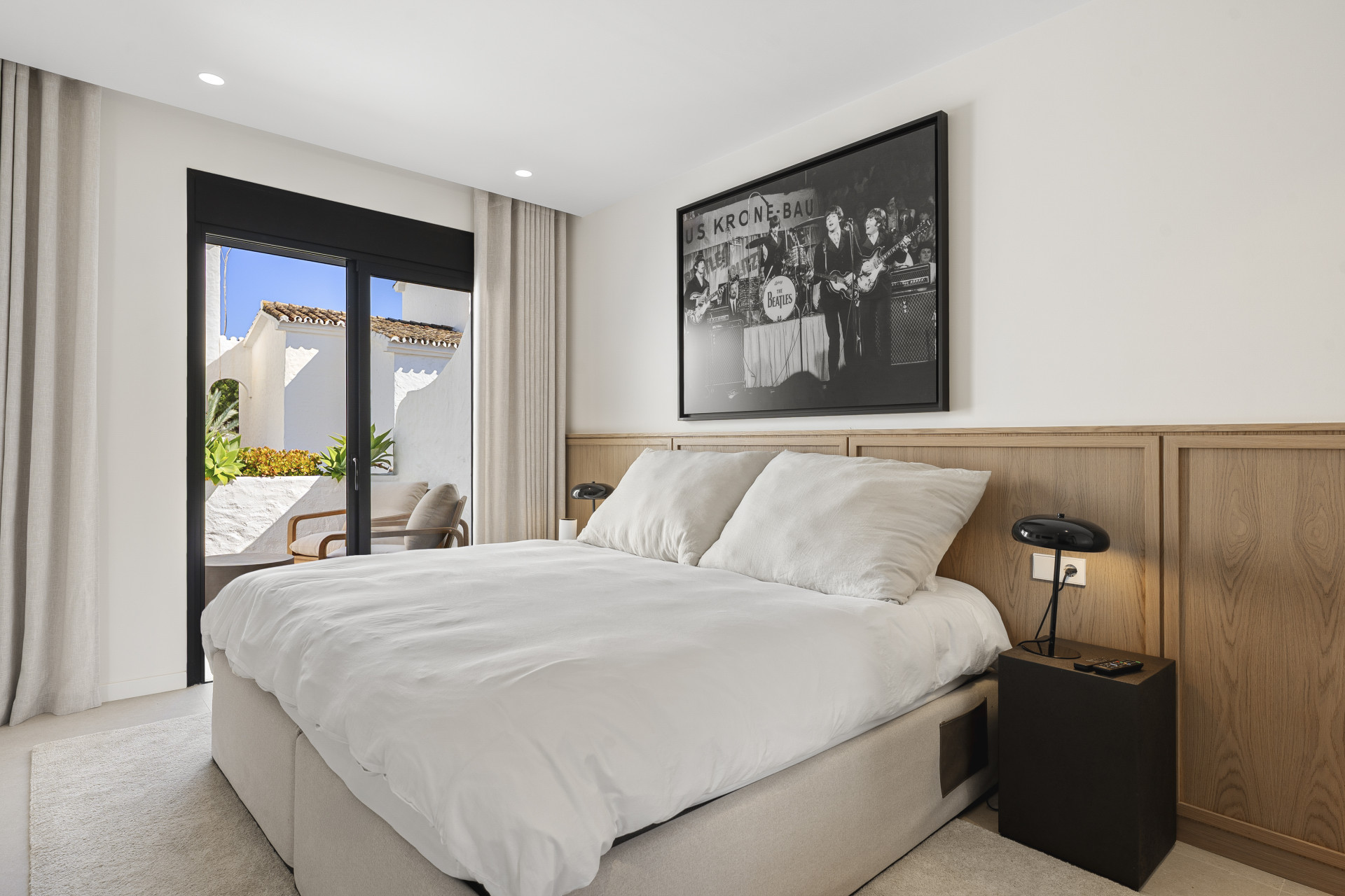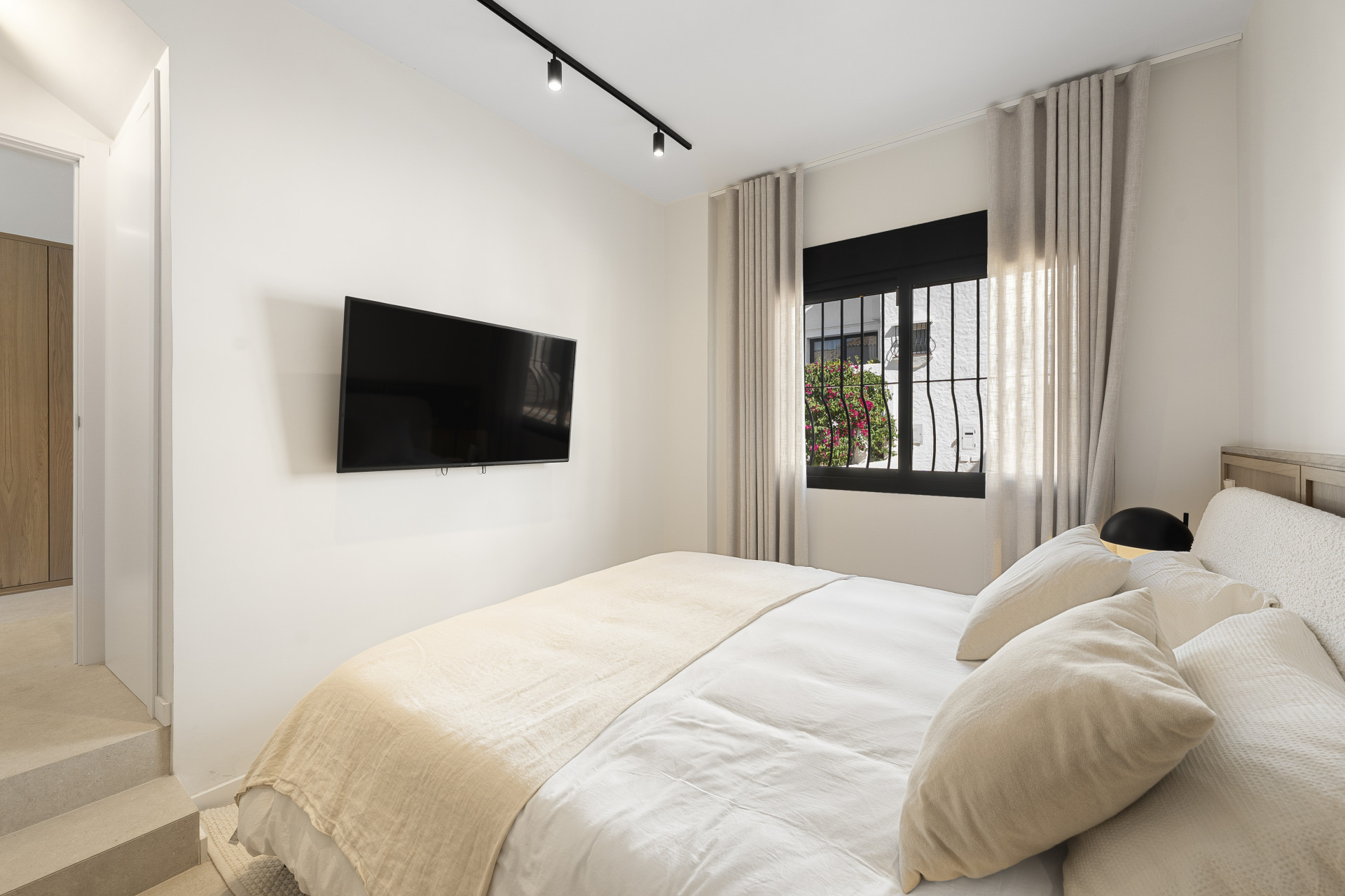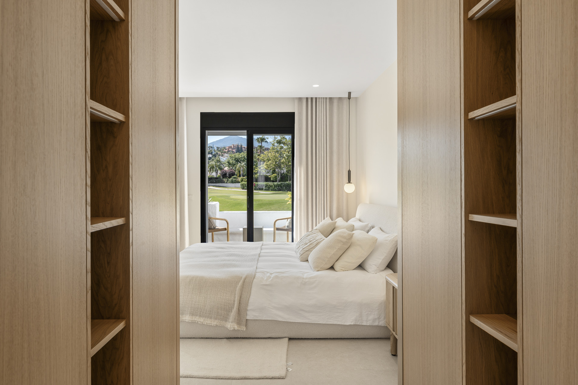 Beautifully renovated townhouse located in the exclusive gated community of Los Naranjos Country Club in Nueva Andalucía’s sought-after Golf Valley. Fully refurbished in 2023, the home showcases modern Scandinavian design with high-end finishes, including natural wood, matte black accents, and premium Miele appliances. This two-story property offers three bedrooms and three bathrooms with a smart layout that separates social and private spaces. The open-plan ground floor combines the kitchen, living, and dining areas, seamlessly connecting to a terrace with stunning views of the golf course and nearby mountains. Floor-to-ceiling glass doors fill the space with natural light, while double-glazed windows and electric blinds ensure comfort year-round. The master and guest bedrooms offer direct terrace access, ideal for peaceful mornings or evening relaxation. The northwest orientation provides soft afternoon light, enhancing the tranquil atmosphere. Set within a low-density community known for its serene environment, residents enjoy access to a large swimming pool, mature gardens, a communal outdoor kitchen, and ample parking. The area offers a perfect balance of privacy and lifestyle, attracting both full-time residents and holiday homeowners. The townhouse is just minutes from Centro Plaza, with its shops, cafés, and popular Saturday market. Puerto Banús, luxury shopping, and top restaurants like Mosh Fun Kitchen and La Sala are all nearby. Excellent international schools such as Aloha College and Swan School are easily accessible, and the area is well connected by public transport and major highways.