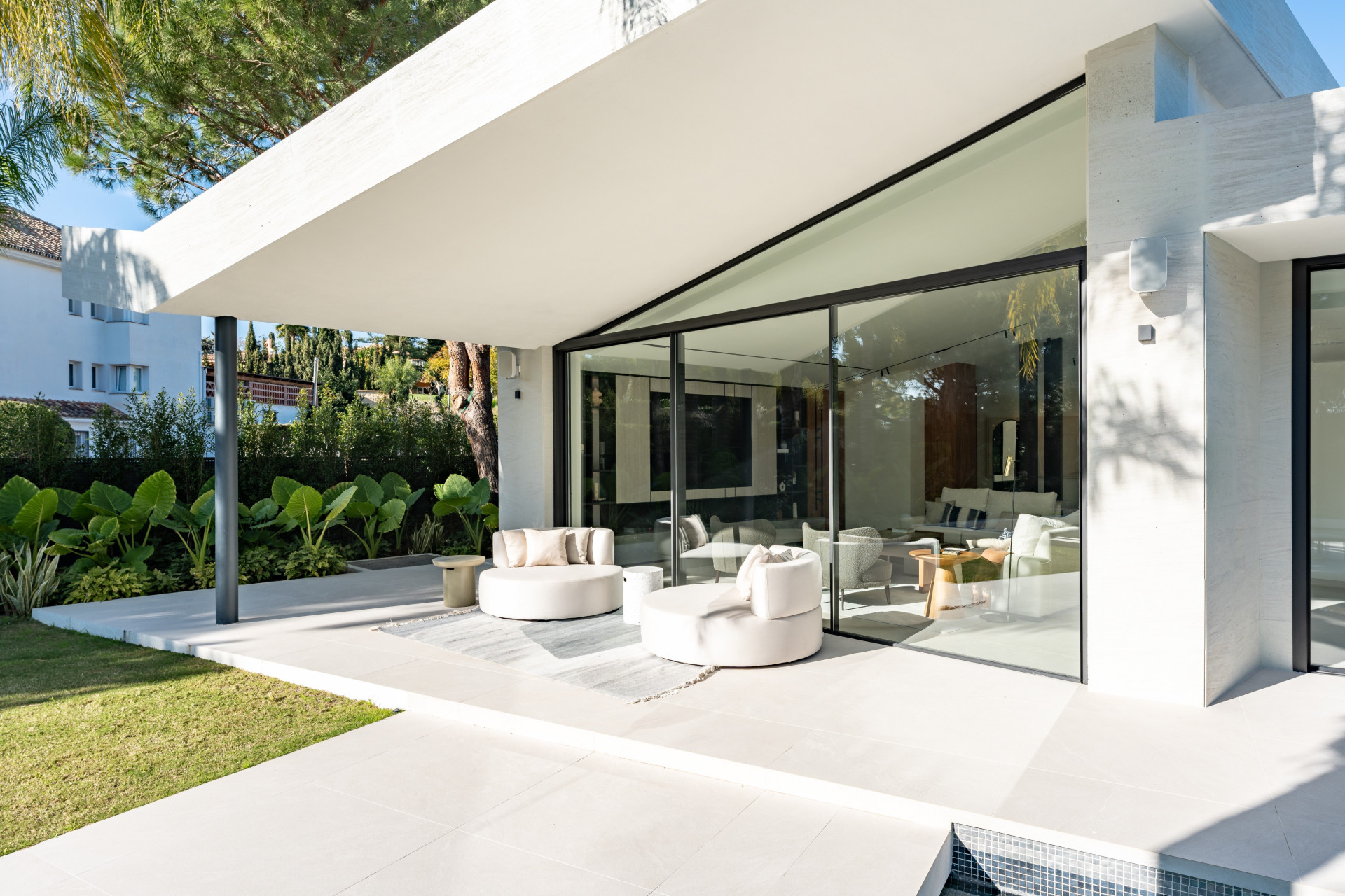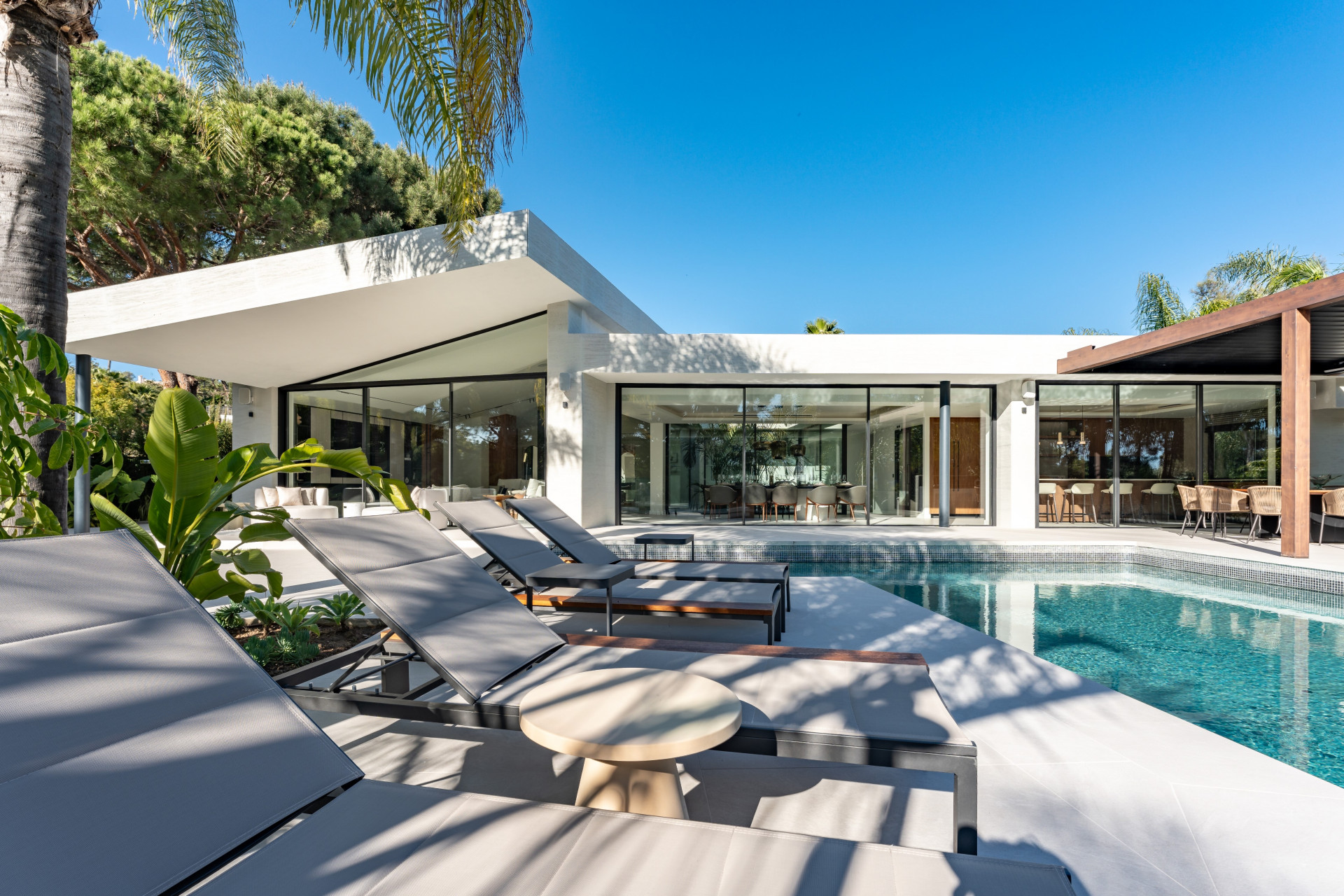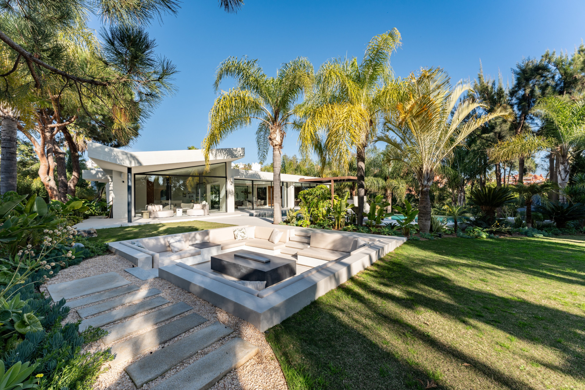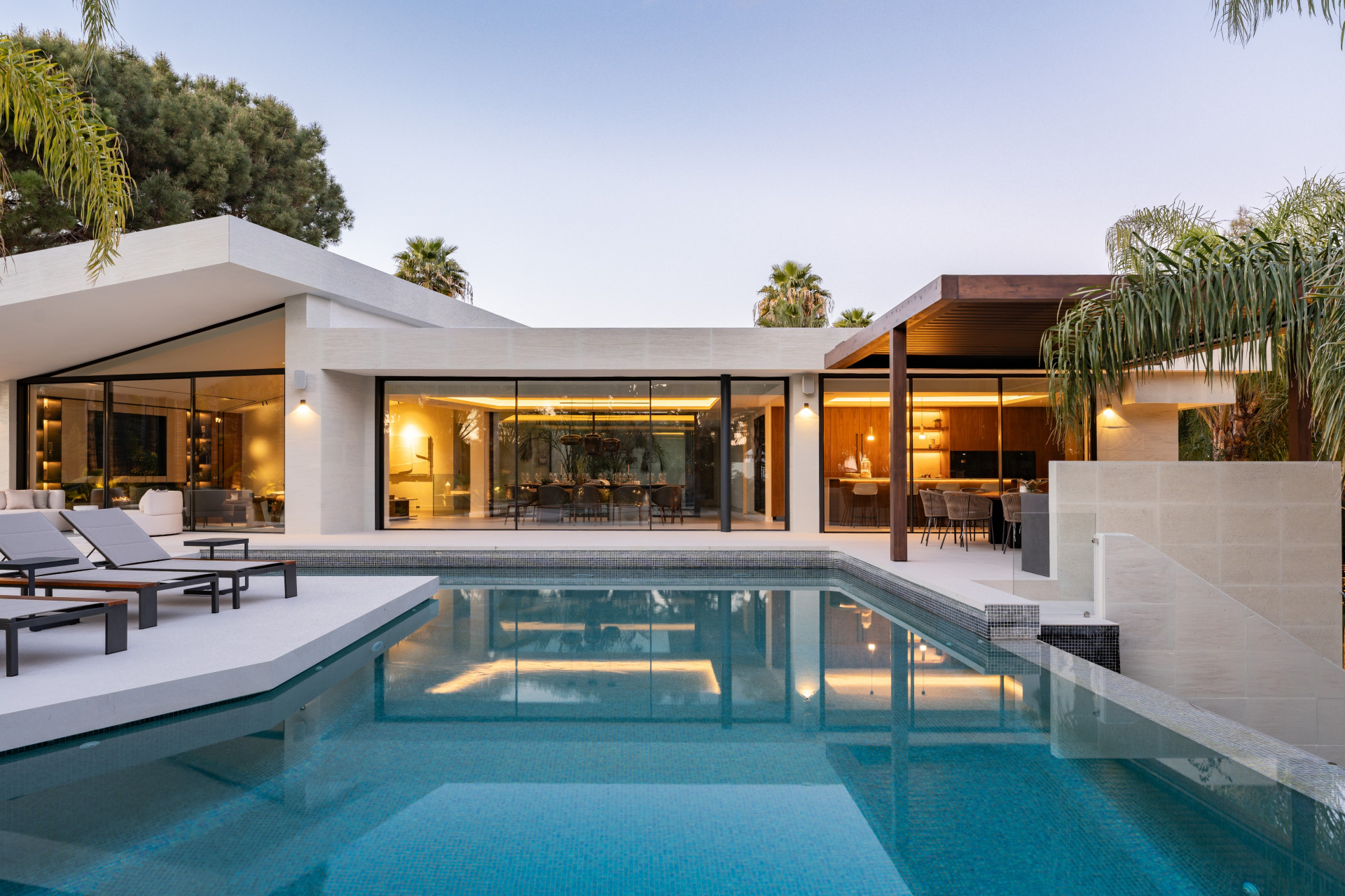 Relax and Unwind in Villa Lotus. A his magnificent home perfectly embodies sophistication and comfort in every detail with modern design and outstanding views into the green.