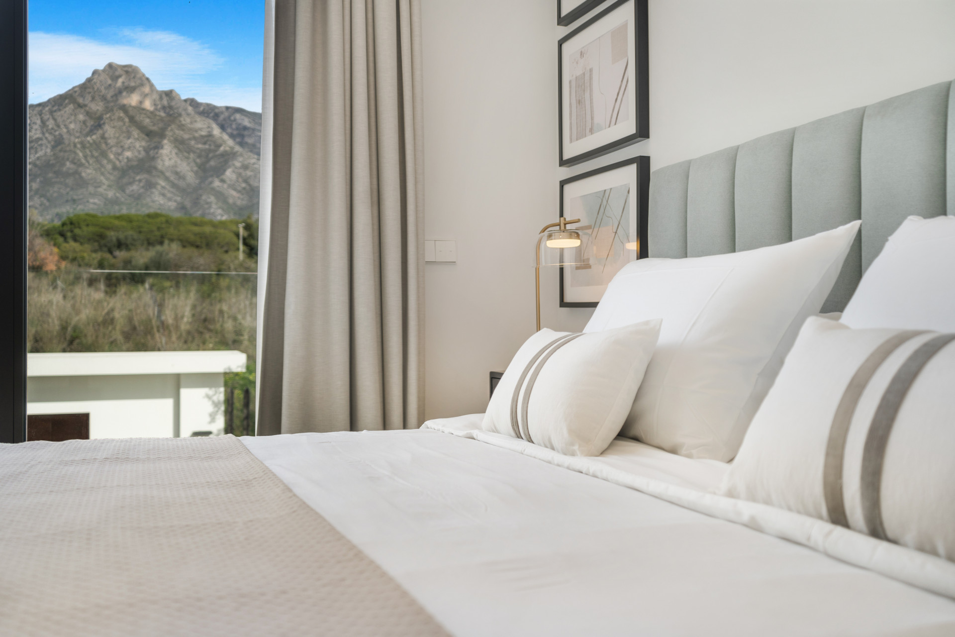 Villa Romano boasts 6 spacious bedrooms, each with its own connected bathroom. Each bedroom features views of the pool and landscaped garden to the south, or La Concha mountain to the north. The master and main guest bedroom both have access to their own private balconies.