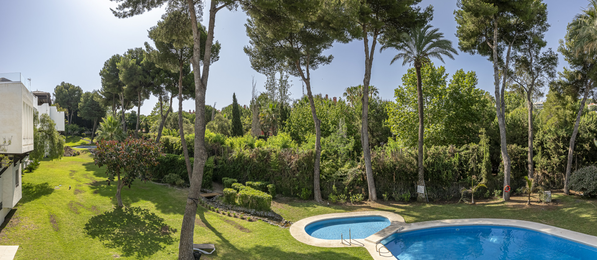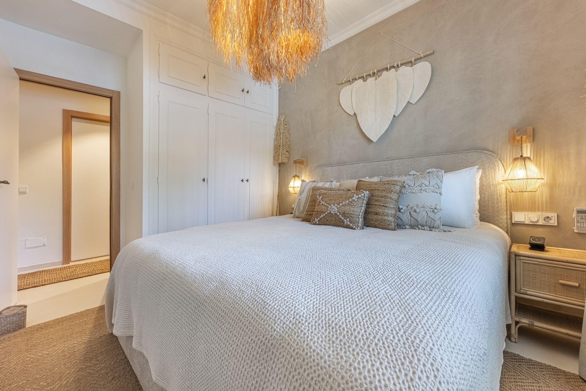 Nestled in the heart of Nueva Andalucía, Atalaya de Río Verde stands as one of the area’s most prestigious residential enclaves, offering an exclusive, serene, and secure setting just minutes from the vibrant allure of Puerto Banús. This exceptional villa, meticulously renovated in 2023 to the highest standards, embodies a modern Mediterranean aesthetic enriched with Boho Chic Ibiza touches, seamlessly blending warm wood accents, sleek ceramics, and luxurious details to create an inviting yet sophisticated atmosphere. The expansive open-plan living and dining areas flow effortlessly into the outdoors, connecting to stylish al fresco spaces perfect for entertaining, while the contemporary kitchen complements the home’s elegant design. Accommodation comprises a master suite with a lavish en-suite bathroom and ample wardrobe space, three additional bedrooms—one with its own en-suite—and a guest bathroom, alongside a convenient cloakroom. Every window is fitted with mosquito nets, and the home features a climate control system and a comprehensive interior and exterior security alarm. Outside, beautifully landscaped communal gardens with towering palms frame two swimming pools, while private terraces offer dining, barbecue, and tranquil chill-out zones for ultimate relaxation. Ideally located near golden beaches, fine dining, designer boutiques, and some of the Costa del Sol’s most prestigious golf courses, including Real Las Brisas, Aloha, and Los Naranjos.