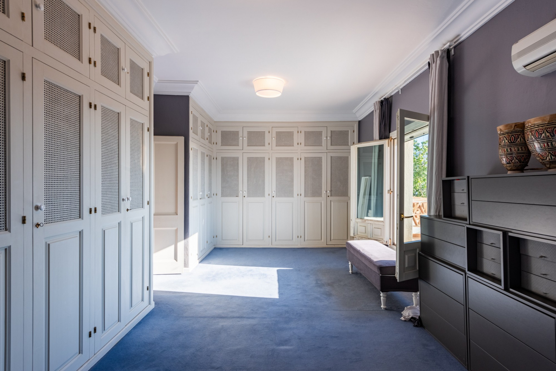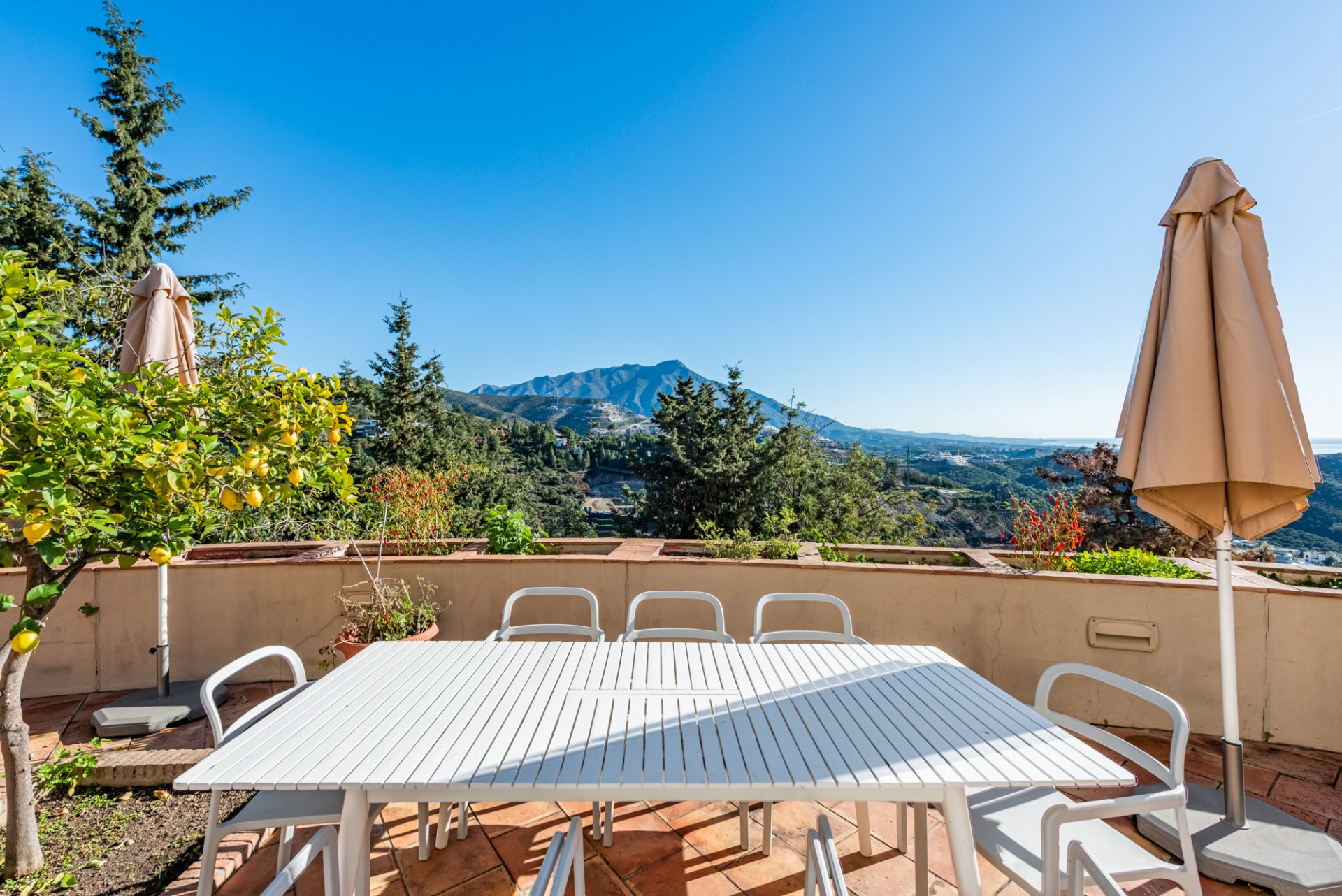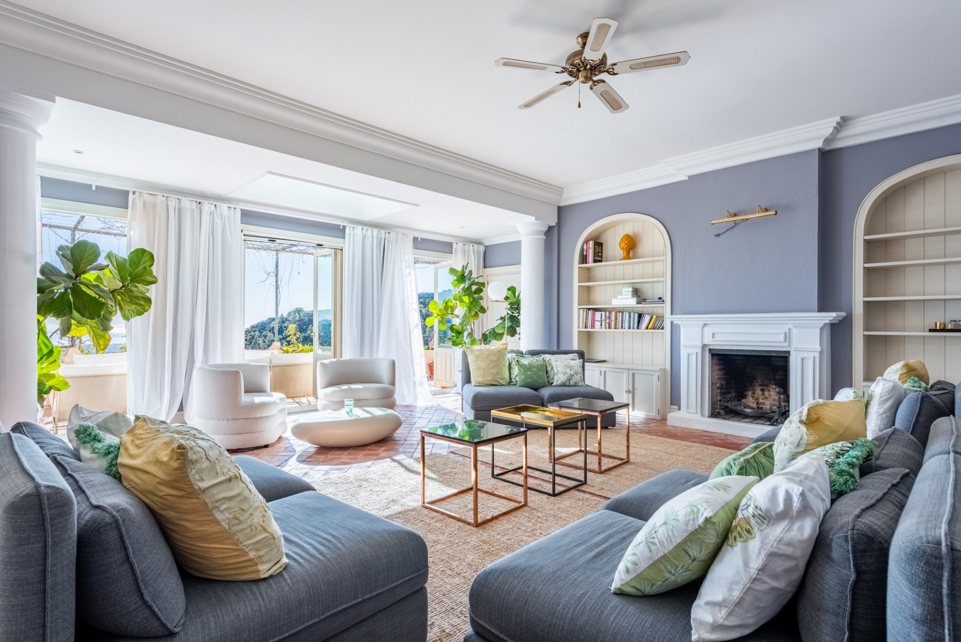 La Vela features a comfortable main house and a separate guest house. The main residence opens with a spacious entry hall leading to a living room with a fireplace that flows into a TV room with terrace access and great views. A large dining room with its own fireplace connects to a casual dining area and a well-equipped kitchen with a breakfast nook, extra fireplace, and pantry, from which you can access a staff apartment complete with a sitting area, small kitchen, and bedroom with a bathroom. Notably, the interior boasts high ceilings throughout, and the bathrooms are fitted with underfloor heating for added comfort. A separate billiard room further enhances the main house. Upstairs, the master suite offers a generous dressing room, a spacious bathroom, and an office/gym with wooden floors, while two additional bedrooms share another bathroom and feature carpeting. Additional amenities include a two-car garage, a laundry room, a wine cellar, and extra parking in the courtyard. The guest house spans two floors plus a semi-basement and offers on its ground floor a living room with a fireplace, open kitchen, utility room, and toilet; the first floor houses three bedrooms and three bathrooms (two en-suite); and the lowest level provides another living room with a fireplace, kitchen, bedroom, and bathroom. Outside, a heated swimming pool with a cover and a flexible pool pavilion complete the property, which is conveniently located close to La Quinta and other golf courses.