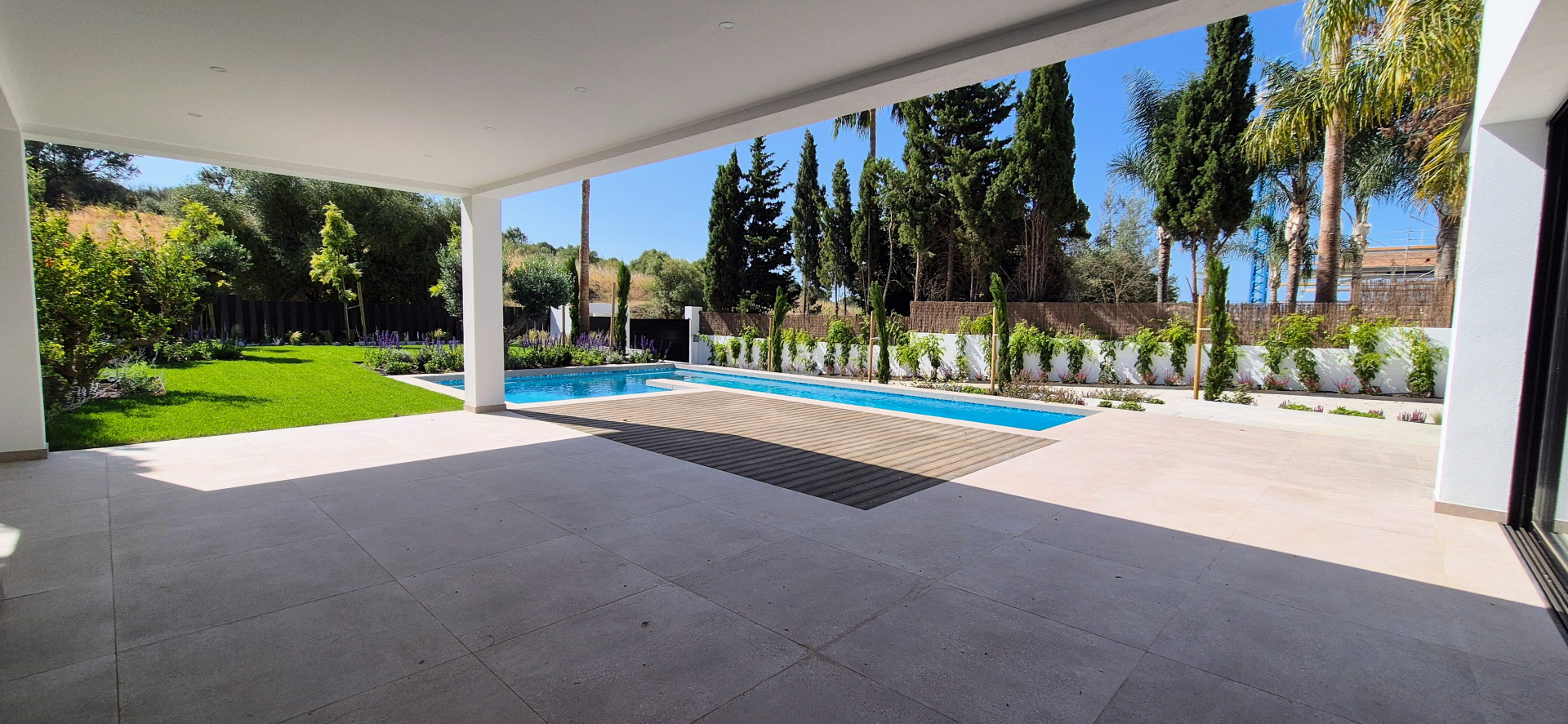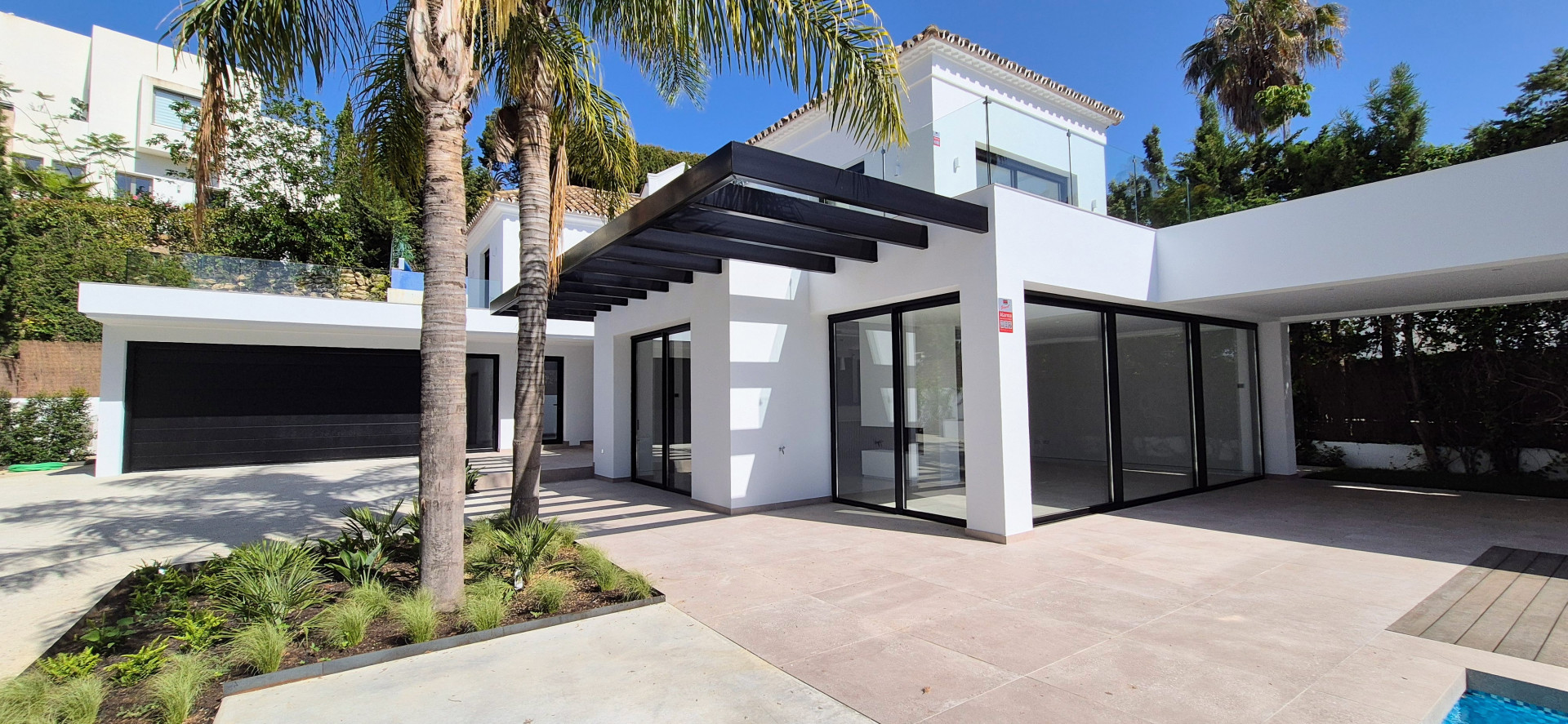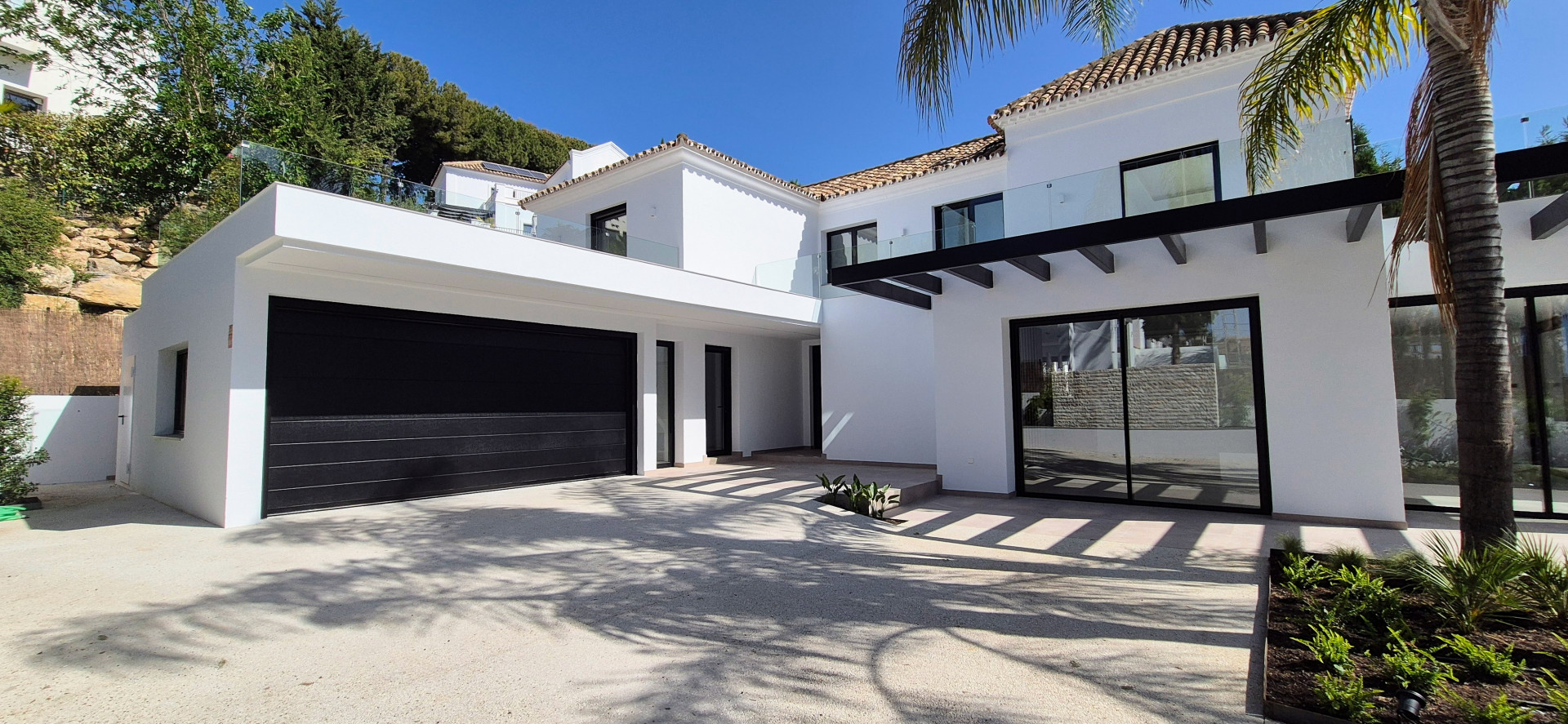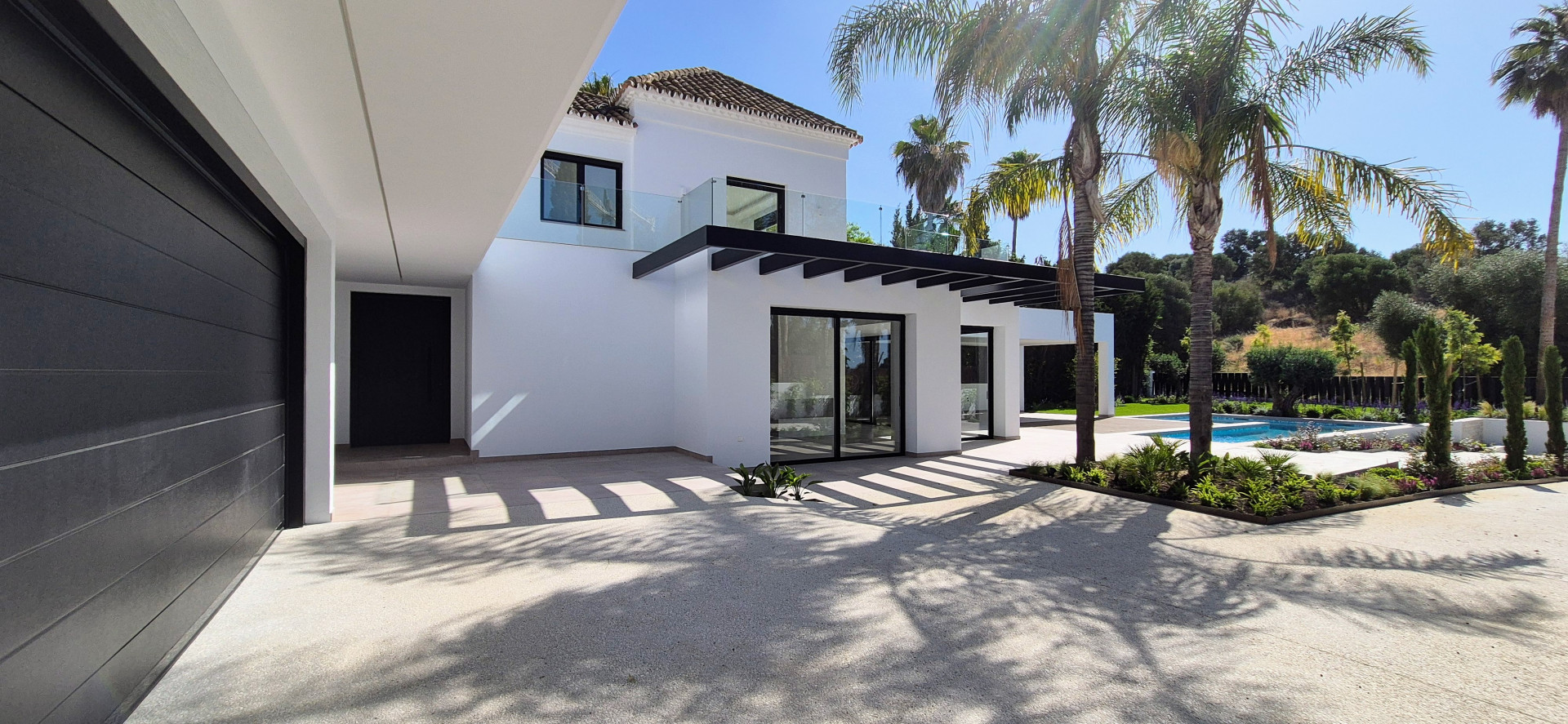 Beautiful five bedroom, south facing, newly built property located in a privileged area surrounded by the best golf courses on the Costa del Sol, El Paraiso, between the municipalities of Estepona and Benahavis. With a distribution designed to maximize comfort and elegance, on a plot of 1.065 m2, it has five bedrooms, each one designed to offer privacy and a cosy atmosphere. The five modern bathrooms are equipped with the best materials and advanced technology, providing an incomparable space for relaxation and well-being. Villa Camelia redefines luxury and comfort with its excellent quality finishes. Its private swimming pool is perfect for soaking up the sun and relaxing in a tranquil and exclusive setting. The beautiful garden, carefully designed, becomes a green oasis that offers a perfect space for relaxation and tranquillity, ideal to enjoy with family and friends. The spacious terraces are another attraction of this property, providing open spaces ideal for al fresco dining, social gatherings or simply relaxing in the tranquillity of the surroundings. The garage has capacity for two cars, guaranteeing security and comfort with easy access from the main entrance. The villa is equipped with an advanced aerothermal system, an efficient and sustainable air conditioning solution that ensures maximum comfort in all seasons of the year, also contributing to respect for the environment. Every detail of this villa has been carefully thought out to provide an atmosphere of luxury, modernity and comfort. From the selection of materials to the architectural design, everything has been conceived to offer an unparalleled living experience. This villa is not just a house, it is a home designed to offer an incomparable living experience, where every day will be a celebration of good taste and comfort.