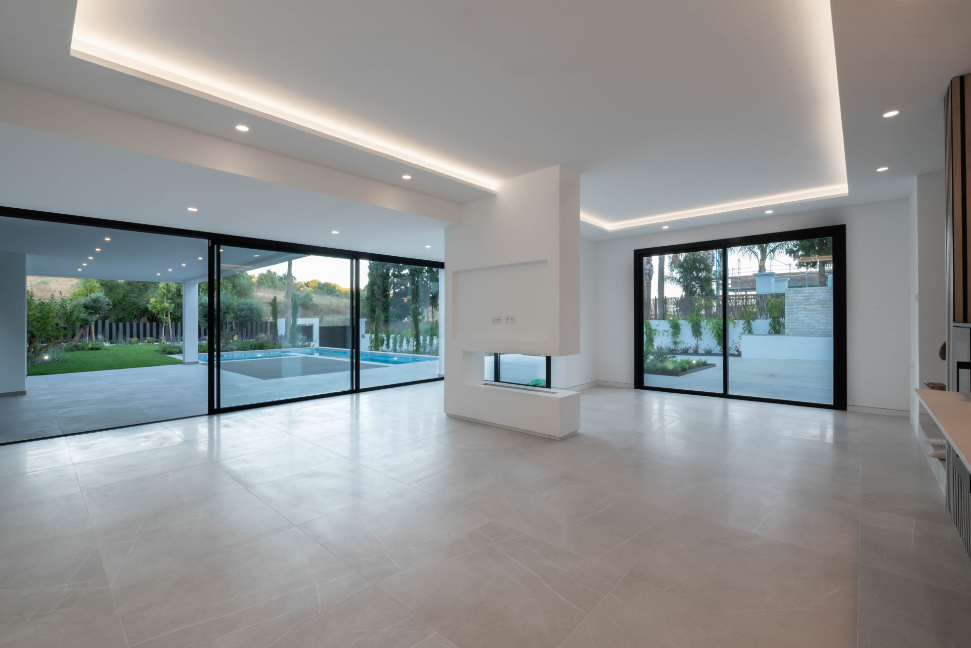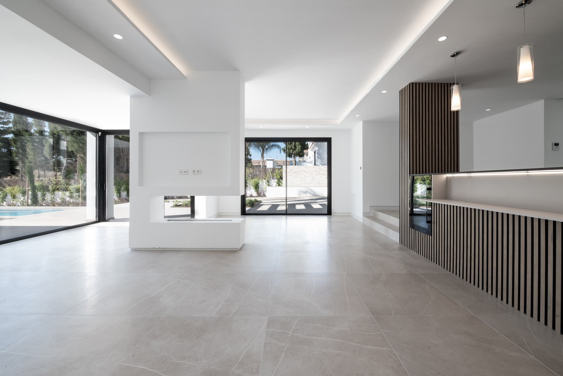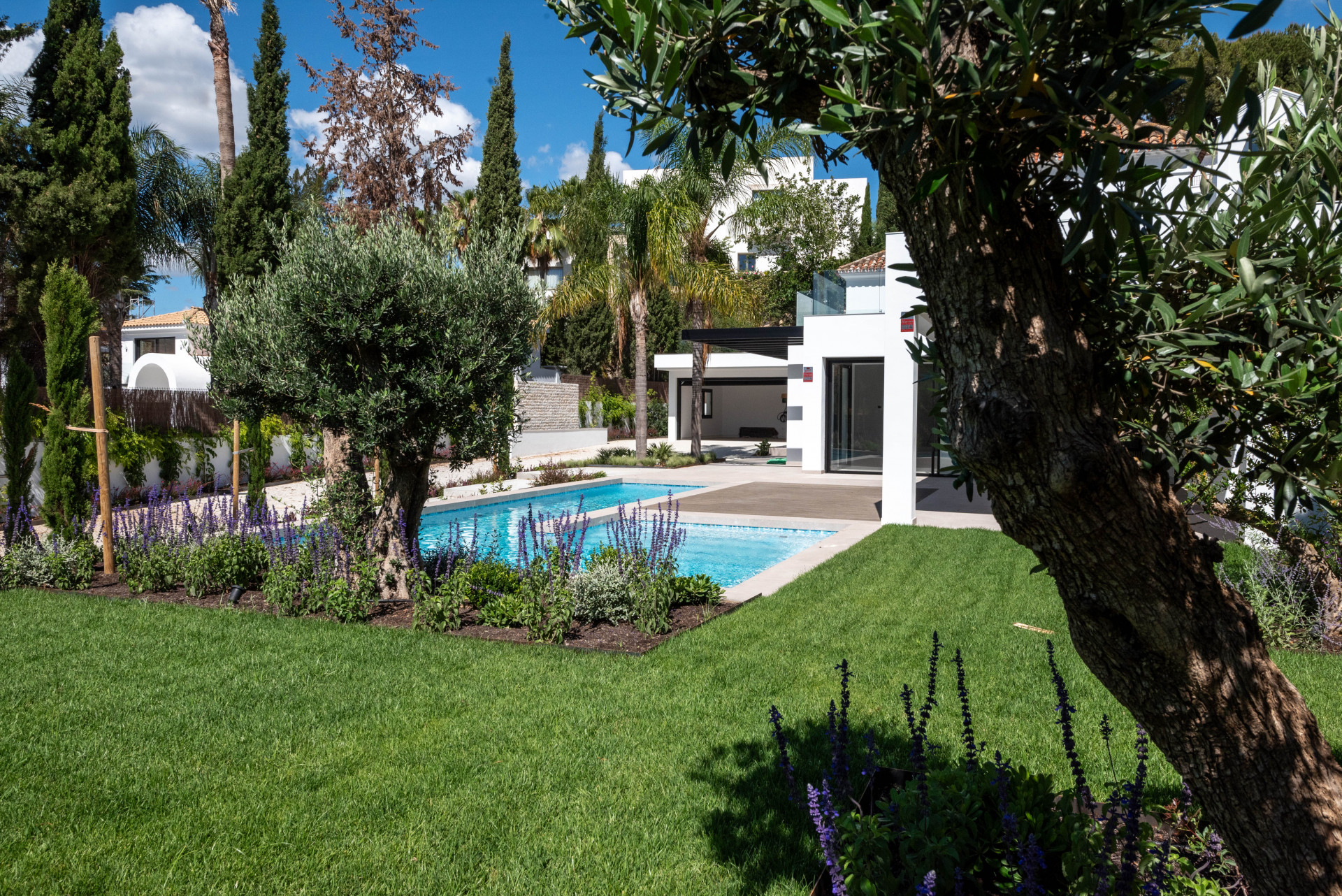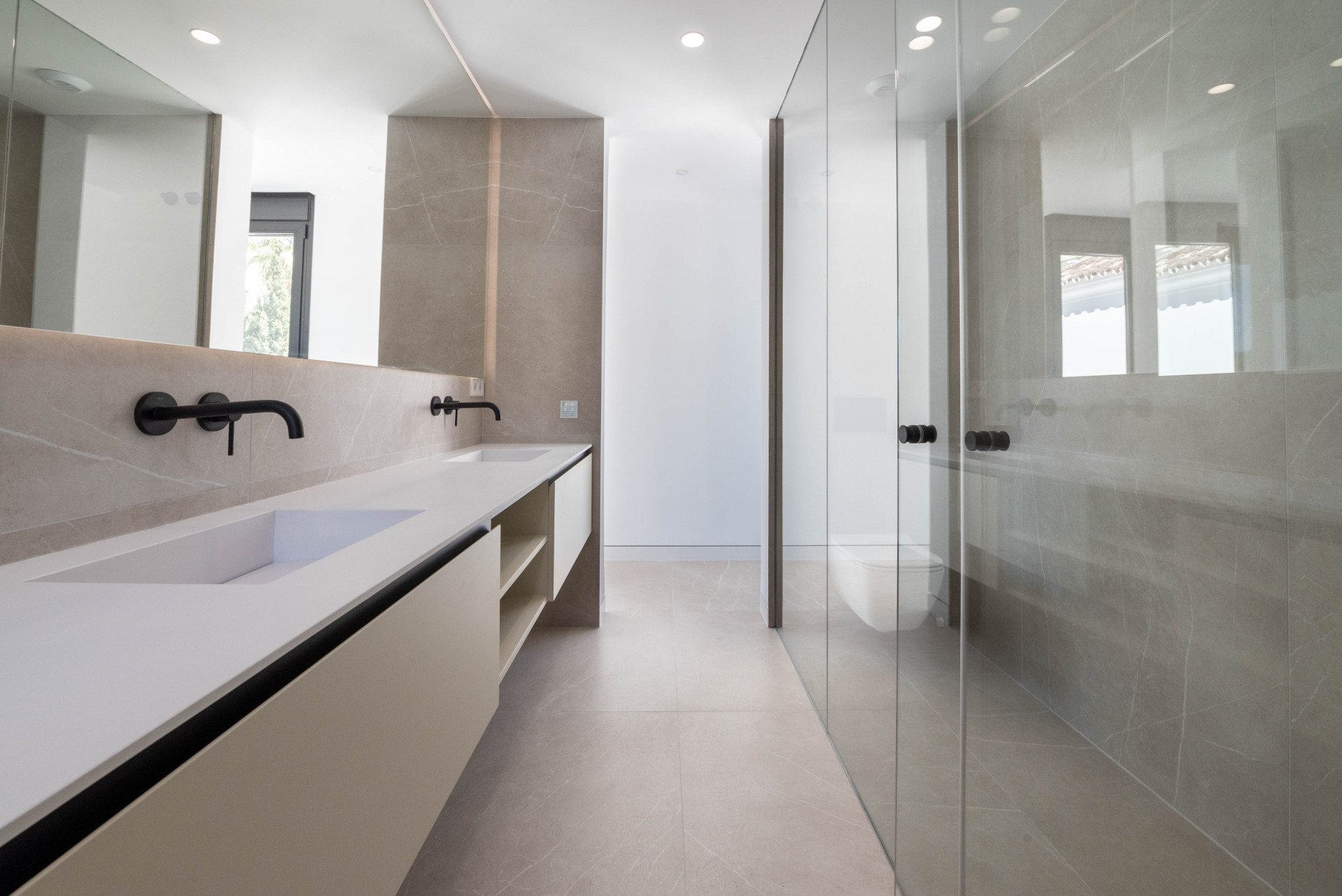 Beautiful five bedroom, south facing, newly built property located in a privileged area surrounded by the best golf courses on the Costa del Sol, El Paraiso, between the municipalities of Estepona and Benahavis. With a distribution designed to maximize comfort and elegance, on a plot of 1.065 m2, it has five bedrooms, each one designed to offer privacy and a cosy atmosphere. The five modern bathrooms are equipped with the best materials and advanced technology, providing an incomparable space for relaxation and well-being. Villa Camelia redefines luxury and comfort with its excellent quality finishes. Its private swimming pool is perfect for soaking up the sun and relaxing in a tranquil and exclusive setting. The beautiful garden, carefully designed, becomes a green oasis that offers a perfect space for relaxation and tranquillity, ideal to enjoy with family and friends. The spacious terraces are another attraction of this property, providing open spaces ideal for al fresco dining, social gatherings or simply relaxing in the tranquillity of the surroundings. The garage has capacity for two cars, guaranteeing security and comfort with easy access from the main entrance. The villa is equipped with an advanced aerothermal system, an efficient and sustainable air conditioning solution that ensures maximum comfort in all seasons of the year, also contributing to respect for the environment. Every detail of this villa has been carefully thought out to provide an atmosphere of luxury, modernity and comfort. From the selection of materials to the architectural design, everything has been conceived to offer an unparalleled living experience. This villa is not just a house, it is a home designed to offer an incomparable living experience, where every day will be a celebration of good taste and comfort.