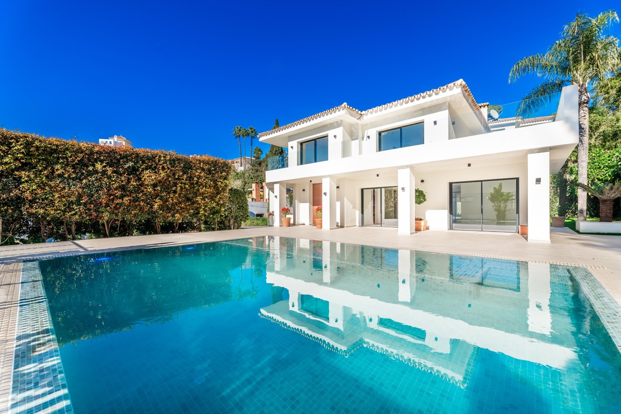 Exceptional modern villa, perfectly situated in the heart of Elviria, Marbella. Meticulously renovated, this residence effortlessly blends cutting-edge design with refined comfort, offering a truly elevated lifestyle on the Costa del Sol. As you step inside, you’re welcomed by a bright and expansive open-plan living area where indoor and outdoor living merge seamlessly. Floor-to-ceiling windows bathe the space in natural light, accentuating the elegant finishes and premium materials throughout. The spacious living room flows into a stylish dining area and a state-of-the-art kitchen—ideal for both entertaining and everyday living. This stunning villa features five generously sized bedrooms, four of which include en-suite bathrooms, ensuring privacy and ease for family and guests. The luxurious master suite offers a private terrace with breathtaking views of the Mediterranean Sea—your personal sanctuary for unwinding at the end of the day. The lower level presents a large, versatile space that can be tailored to your lifestyle—perfect for a home cinema, gym, or games room. A dedicated bathroom adds to its practicality. Step outside to discover a beautifully landscaped garden with a private swimming pool, creating a peaceful haven for rest and recreation. The outdoor dining area and lounge provide the perfect setting for alfresco meals and year-round enjoyment of Marbella’s idyllic climate. Ideally located in the sought-after neighbourhood of Elviria, this villa offers close proximity to renowned schools, championship golf courses, and some of the region’s most beautiful beaches. With Marbella’s vibrant town center just a short drive away, you’ll enjoy the perfect balance of tranquility and urban convenience.