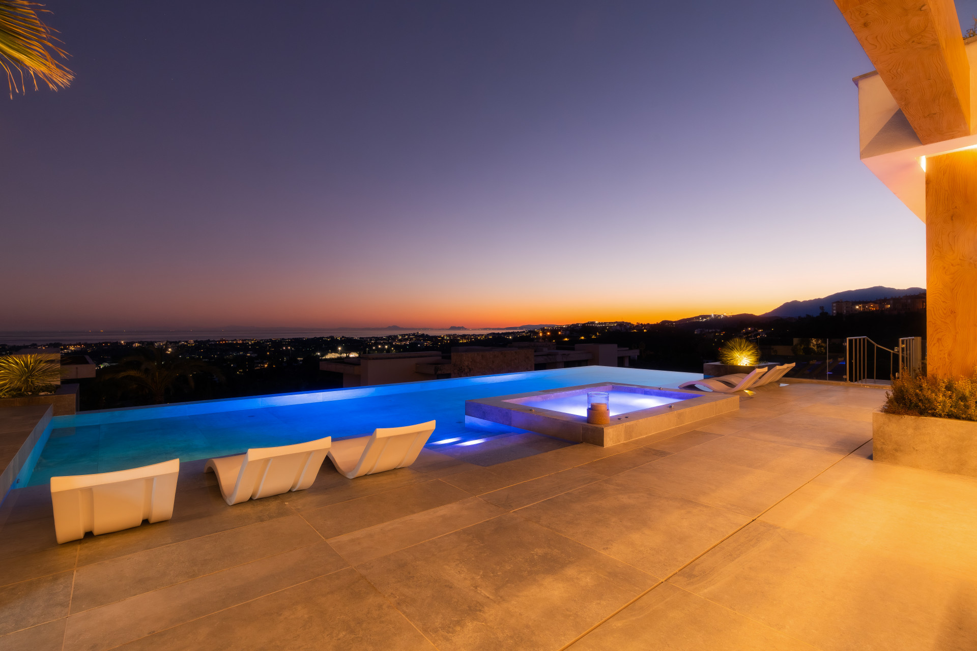 Stunning architectural masterpiece on the hills of La Quinta, within the exclusive gated community of The Hills and comes with six bedrooms and seven bathrooms. The villa has panoramic views towards the sea all the way to the African coast. This state-of-the-art villa features large modern open spaces, a stunning infinity pool facing the outdoor cinema with outdoor kitchen and dining areas. The basement consists of a luxurious spa complete with indoor pool, steam, sauna and massage rooms, indoor gym and entertainment room, wine cellar, laundry room and two bedrooms with ensuites bathrooms. The ground floor consists of the open plan living room and kitchen. The master bedroom has a private terrace with magnificent sea views, and a custom-designed walk-in closet leading into the luxurious bathroom.
